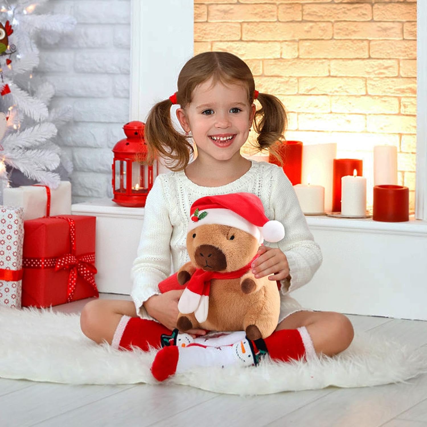 Affascinante compagno di vacanza: il peluche Capybara si distingue per la sua bella lavorazione cucita a mano e accessori accuratamente progettati come sciarpe e cappelli natalizi. Offre ai bambini un'incantevole combinazione di longevità e bellezza che ispira gioia festiva o fornisce un accompagnamento confortante tutto l'anno. Questo giocattolo versatile supporta il pensiero creativo e garantisce momenti indimenticabili durante le celebrazioni o nella vita quotidiana. Calore e relax: questo peluche Capybara realizzato in tessuto di peluche di alta qualità con una consistenza liscia e delicata che offre un comfort eccellente. È la scelta ideale per promuovere il relax nei pomeriggi accoglienti o nelle calde serate al chiuso. La superficie morbida è piacevole al tatto e supporta momenti rilassanti di riposo e comfort, perfetto per le ore di coccole sul divano o come compagno di relax. Compagno di peluche di facile manutenzione: questo peluche Capybara è realizzato in materiale peluche di alta qualità che resiste alla deformazione e mantiene la sua forma per un lungo periodo di utilizzo. La facile pulizia con un panno umido o a mano lo rende perfetto per le fasi di gioco e per scopi decorativi in diversi ambienti. Il tessuto morbido ma stabile garantisce comfort e gioia durature, mentre la natura di facile manutenzione richiede sforzo. Non importa se nella cameretta dei bambini, come Versatile e carino: questo morbido peluche Capybara combina praticità e carineria accattivante, ideale come cuscino morbido per momenti di relax o elegante elemento decorativo per abbellire la tua casa. Diffonde intimità e fascino individuale in ogni stanza, sia in soggiorno, camera da letto o ufficio domestico, e crea un'atmosfera accogliente grazie alla sua versatilità e al suo aspetto accogliente. Il peluche è adatto Graziosa decorazione festiva: questo adorabile peluche Capybara è una perfetta decorazione natalizia o come scelta regalo ideale per le feste. Aumenta l'atmosfera festosa grazie al suo design carino e al forte fascino festivo, diffonde gioia e calore in ogni casa durante il periodo natalizio e completa le tue celebrazioni in modo ottimale.