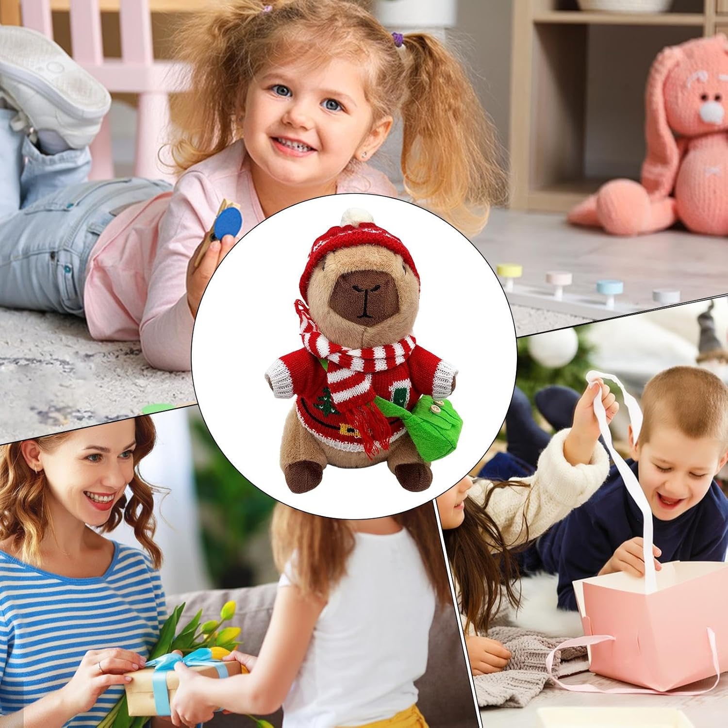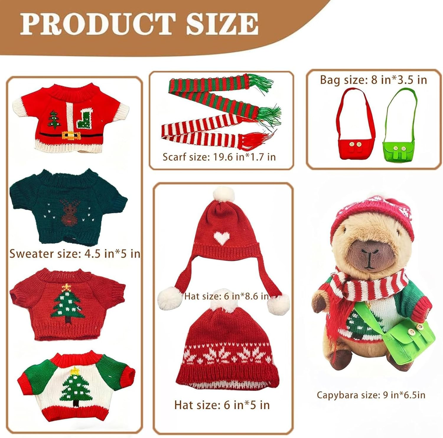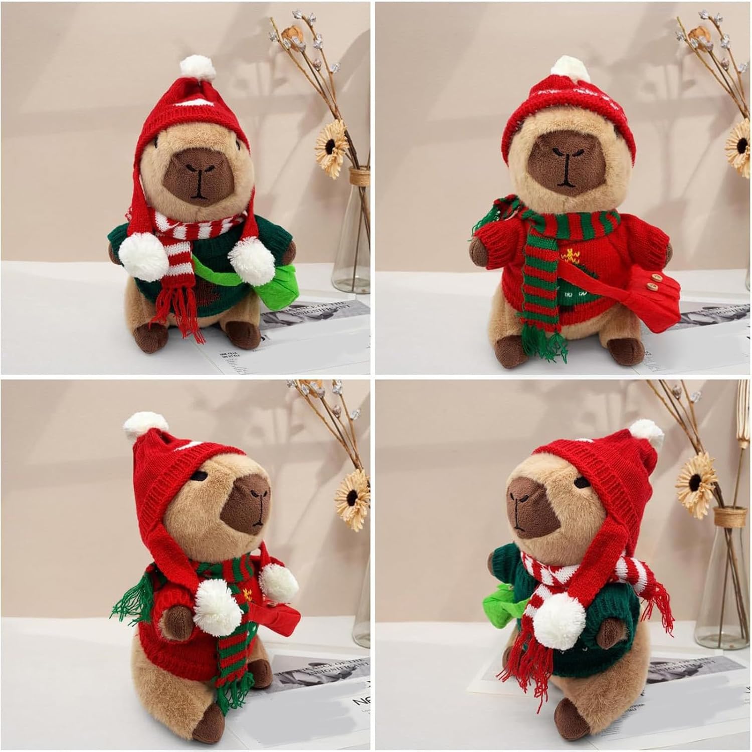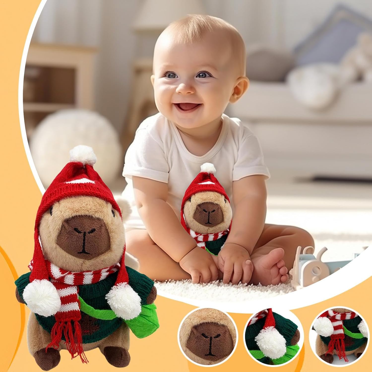 Resistente alla forma: questo peluche Capybara è stato progettato con una solida imbottitura in cotone PP che garantisce una consistenza sempre morbida e affidabile mantenimento della forma anche durante ore di gioco interattivo. Serve come compagno affidabile per attività di gioco creative o come affascinante decorazione in salotti. L'imbottitura in cotone PP offre una morbidezza duratura e stabilità dimensionale, che rimane inalterata anche con un uso intensivo e quindi a lungo Texture delicata e comfort: questo peluche Capybara con vestiti combina una consistenza calda e confortante con materiali adatti ai bambini per favorire il relax durante gli allenamenti storytime o nap. Resiste all'usura grazie alle mani di interazione resistenti in vari ambienti, pur mantenendo il suo carattere confortevole. La texture delicata invita a coccolarsi e aiuta la calma, rendendola ideale per momenti di relax. Combinazioni di outfit fantasiosi: con 11 diversi accessori, il peluche Capybara con vestiti promuove possibilità creative di styling e permette ai bambini di sperimentare abiti misti e abbinati, aumentando la loro creatività artigianale durante i momenti di gioco di ruolo interattivi e li aiuta a creare i propri stili per emozionanti giochi di travestimento da soli o con gli amici in ambienti interni ed esterni. Supporto emotivo per tutti: con la sua capacità di fornire supporto emotivo, questo peluche Capybara è perfetto per momenti di coccole durante il sonno, per rilassarsi in viaggio o come decorazione elegante. Diventa così il compagno rilassante preferito per bambini e adulti, che in numerose situazioni quotidiane trasmette conforto e sicurezza e rappresenta una fonte affidabile di rassicurazione. Promozione giocosa delle competenze attraverso il travestimento: questo capybara di peluche con abbigliamento motiva i bambini a giocare di travestimento migliorando le capacità motorie, promuovendo la consapevolezza estetica. Il tempo di gioco diventa più significativo e arricchente nelle attività creative a casa o nelle istituzioni educative, poiché il giocattolo supporta lo sviluppo di abilità importanti e aumenta il piacere dell'apprendimento attraverso il gioco interattivo. È un giocattolo educativo ideale per d
