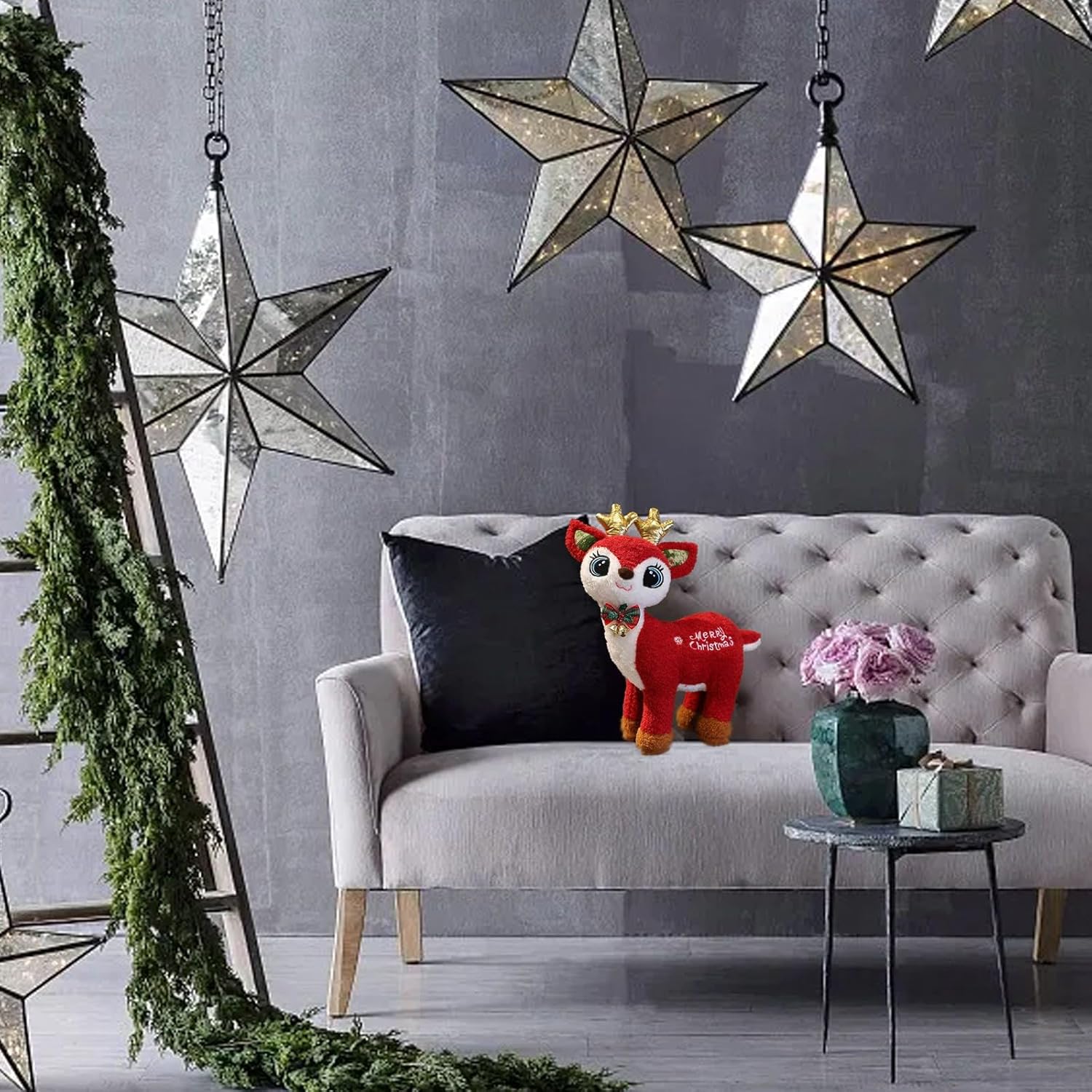 1. Materiale di alta qualità: questo giocattolo natalizio con renna è realizzato in tessuto morbido e resistente, perfetto per coccolarsi e progettato per durare nel tempo. 2. Decorazione festiva: porta l'atmosfera natalizia nella tua casa con questo incantevole giocattolo di renna natalizia, adatto per esporre o come parte delle tue decorazioni natalizie. 3. Scelta perfetta: sorprendi i tuoi cari con questo giocattolo natalizio a forma di renna, ideale per bambini e adulti. È perfetto per compleanni, Natale o qualsiasi altra occasione. 4. Design adatto ai bambini: il nostro giocattolo natalizio con renna è stato progettato appositamente per i bambini. Soddisfa tutti gli standard e non contiene nessuno che potrebbe rappresentare un pericolo. 5. Versatile: questa renna di Natale è un adorabile giocattolo e può essere utilizzata anche come cuscino o compagno di confortante per i bambini prima di andare a letto.