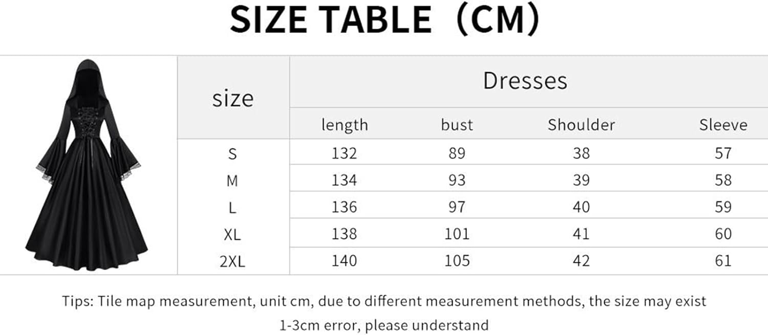 Descrizione prodotto L'outfit da strega di Halloween cattura un'estetica gotica con allacciatura anteriore e design del cappuccio ed è ideale per creare un look ispirato agli orrori. Questo versatile è adatto per feste, eventi o feste a tema. La sua gonna fluida conferisce un tocco elegante ma misterioso adatto a varie attività come gite in casa spaventosa, sfide di escape room, spettacoli teatrali o eventi cosplay. Che tu stia facendo acquisti per tua figlia, fidanzata, compagni di classe, amici, sorelle o madre, questo vestito da strega offre comfort e stile. Progettato per soddisfare le diverse esigenze, lascia un'impressione duratura ad ogni riunione ed è ottimizzato per ricerche come abbigliamento da strega di Halloween, costume, gotico e horror. Specifiche: Materiale: spandex. Dimensioni del S: lunghezza centrale della schiena: circa 132 cm. M: lunghezza del dorso centrale: circa 134 cm. L: lunghezza centrale posteriore: circa 136 cm. XL: lunghezza del centro della schiena: circa 140 cm. 2 x L: lunghezza centrale della schiena: circa 142 cm. Contenuto della confezione: 1 costume da strega di Halloween. Nota: Il colore dell'articolo potrebbe essere leggermente diverso da quello mostrato nell'immagine a causa delle differenze di illuminazione e dello schermo. Si prega di considerare un margine di errore di 1-2 cm a causa della misurazione manuale. Avviso di sicurezza Inapplicabile