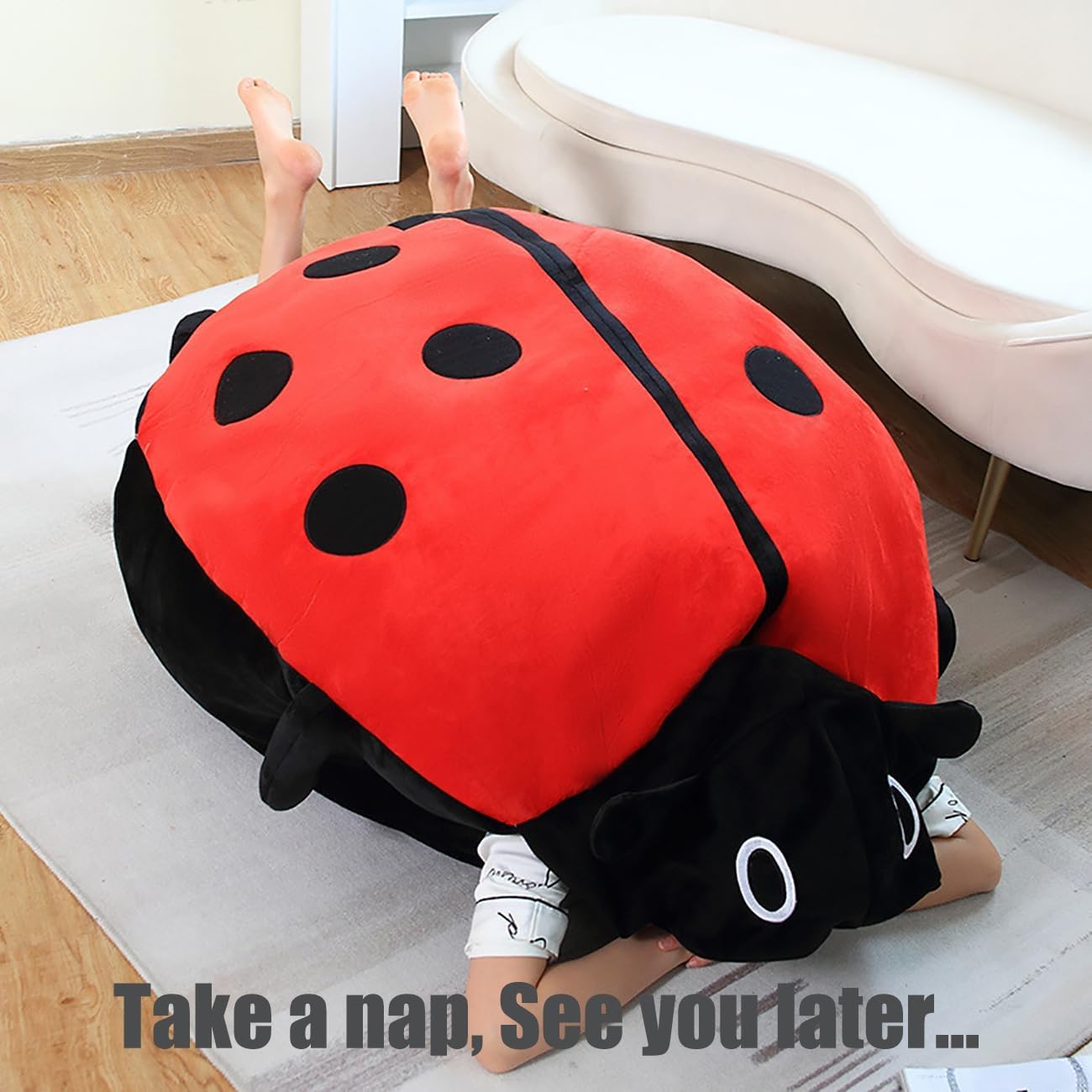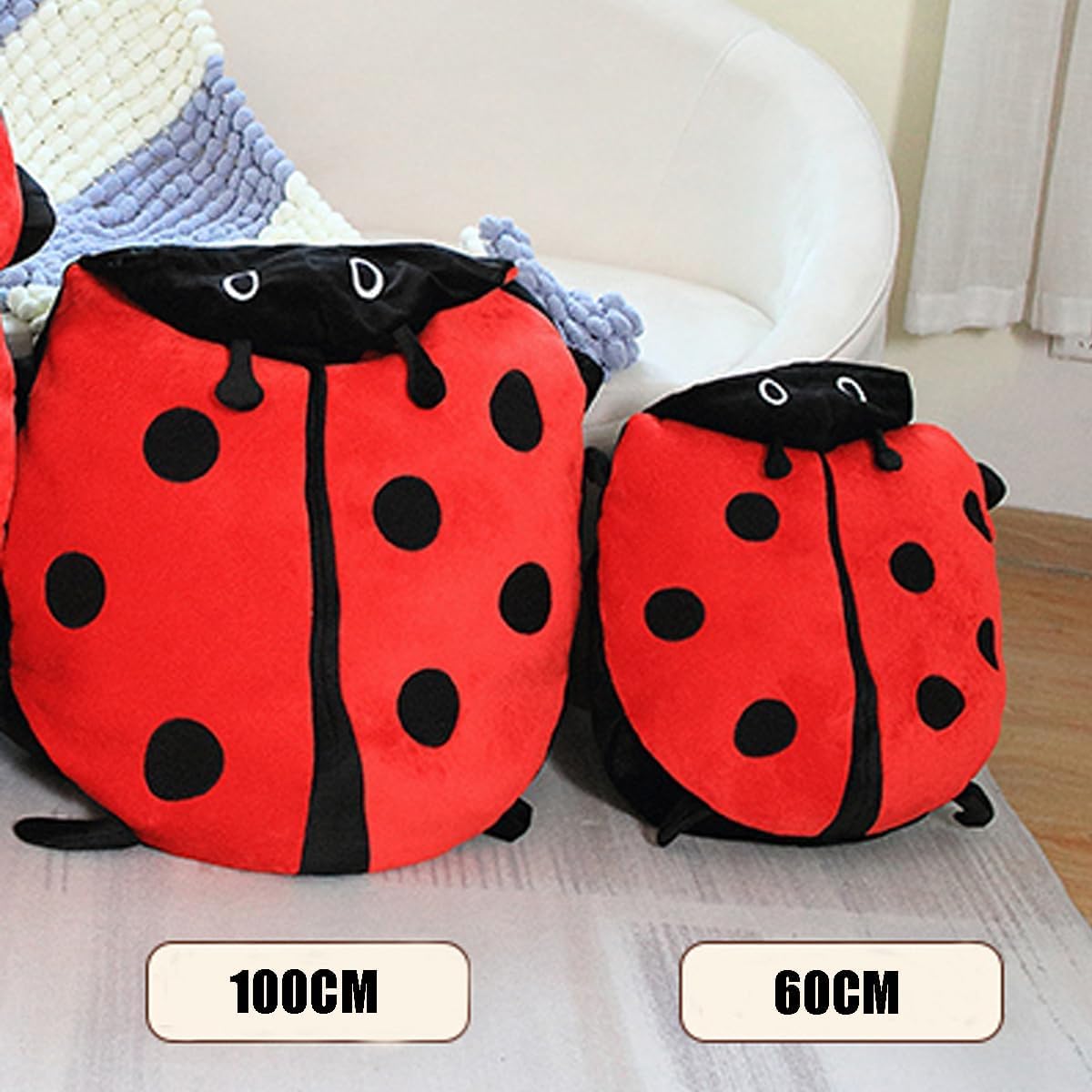 Dimensioni: 60 cm, circa 0,6 kg. Si consiglia di indossare circa 1,2 metri. 100 cm, circa 1,5 kg. Si consiglia di indossare circa 1,6 metri. Playful & Comforting Ladybug Design: presenta una adorabile forma a conchiglia da donna con un'apertura centrale, permette agli utenti di snuggle all'interno e si estende come un vero bug. Super morbido e antistress. Materiale: filled with high quality PP cotton that's lightweight, elastic and irresistibly squeezable—perfect for hugging and calming nerves. Multifunzione: funziona come cuscino, backrest, o cuddle companion nella camera da letto, in ufficio, in salotto o in viaggio. Perfetto regalo di comfort e di vita: un caldo e unico presente, ideale per compleanni, vacanze, o occasioni speciali, diffondendo smiles e coziness.