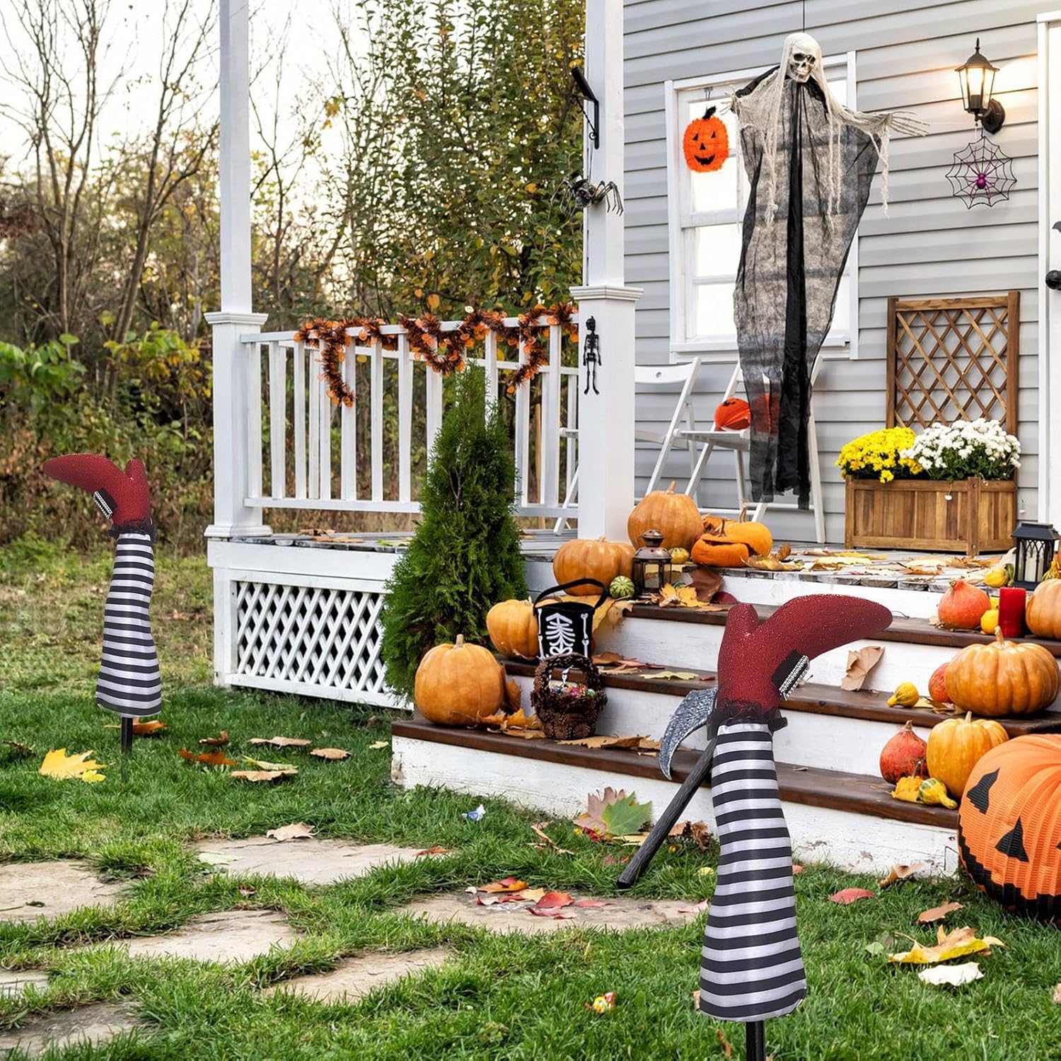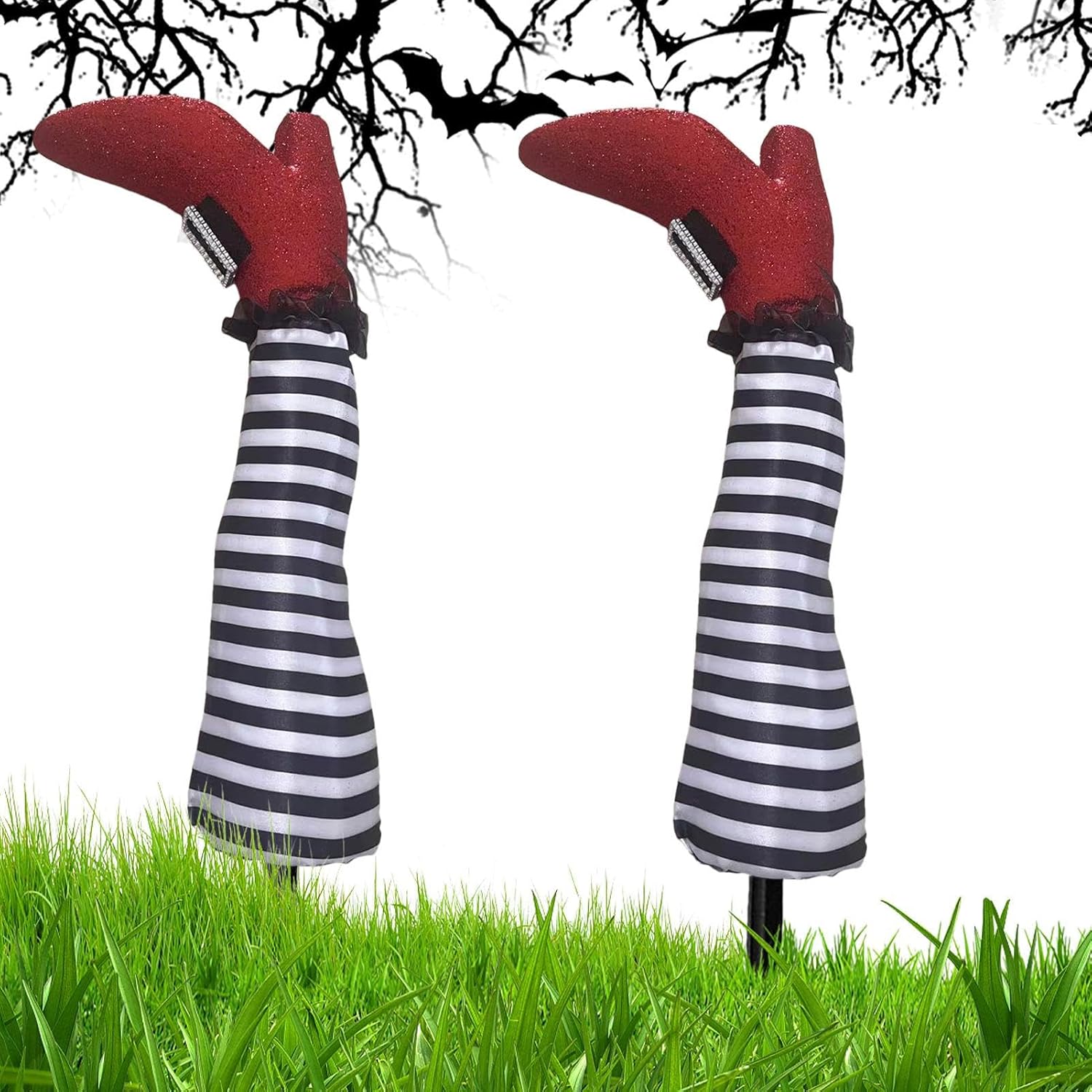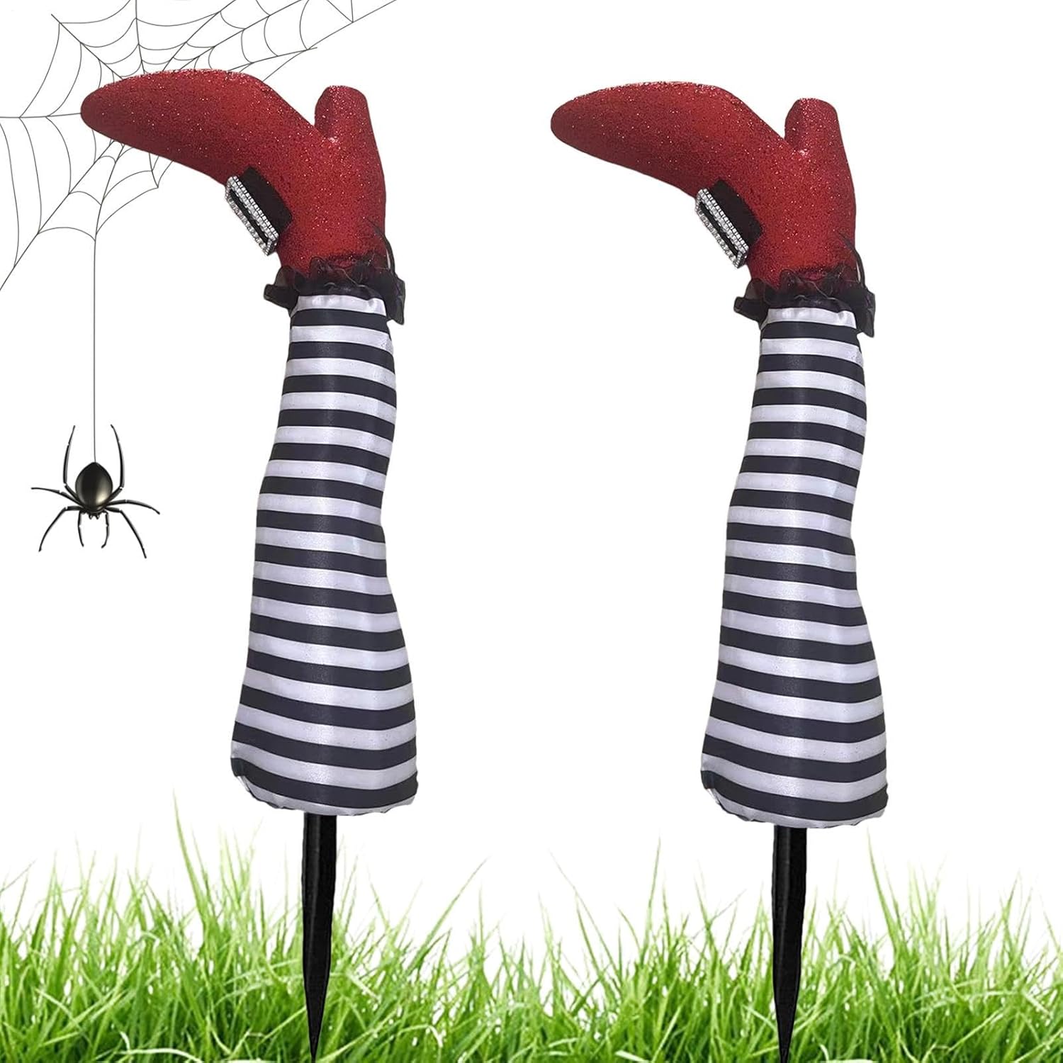 Illusione giocosa: i dilatatori per le gambe della strega, apparentemente reali, offrono texture dettagliate per sorprese decorative divertenti che stupiscono gli ospiti. Creatore di scenari di Halloween: crea un paesaggio spaventoso e spaventoso con un fascino festivo da strega con queste gambe decorative da strega, che portano l'atmosfera spaventosa e tipica di Halloween nella decorazione del tuo giardino per produzioni stagionali. Installazione semplice: può essere utilizzato immediatamente senza attrezzi né elettricità, offre una portabilità leggera per un facile posizionamento e protegge il prato Uso decorativo dinamico: perfetti per la decorazione del giardino e un uso versatile per interni ed esterni, questi bastoncini con il loro design speciale aggiungono un tocco giocoso a feste, celebrazioni e occasioni di ogni tipo Regalo ideale per le vacanze: un regalo divertente e creativo, nonché uno speciale oggetto da collezione. Queste gambe da strega delizieranno e delizieranno ogni destinatario come una sorpresa grata e originale durante le festività natalizie.