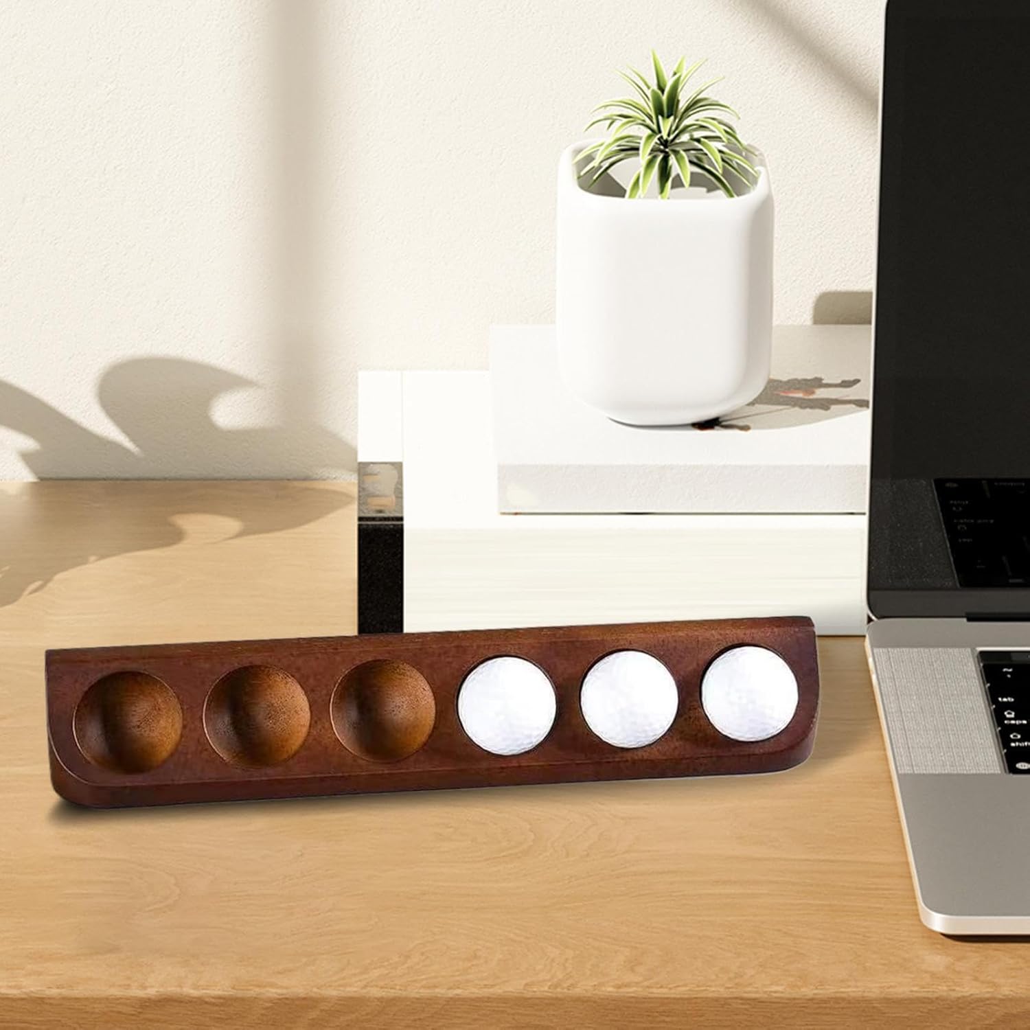 Decorazione di ispirazione sportiva: ideale per gli appassionati, questa vetrina combina elementi da collezione con un arredamento moderno, dona carattere a qualsiasi stanza e riconosce il fascino senza tempo della cultura del golf Fantastico: un'opzione regalo significativa per gli amanti del golf, che offre un mix perfetto di apprezzamento per vacanze, compleanni o ricordi personali Regalo ideale per il golf: funzionalità e stile uniti per i golfisti appassionati: presentate sei preziose palline da allenamento come centro estetico in vetrine, scaffali o sulla scrivania. Pratica integrazione dello spazio: il design ben proporzionato e compatto garantisce un maggiore impatto visivo e consente una presentazione efficiente delle collezioni di palline da golf in qualsiasi ambiente grazie all'uso intelligente dello spazio Legno di qualità durevole: l'unità espositiva convince per la raffinata lavorazione della superficie ed è realizzata con legni di prima classe, che garantisce stabilità duratura ed eleganza senza tempo per valorizzare al meglio le vostre palline da golf