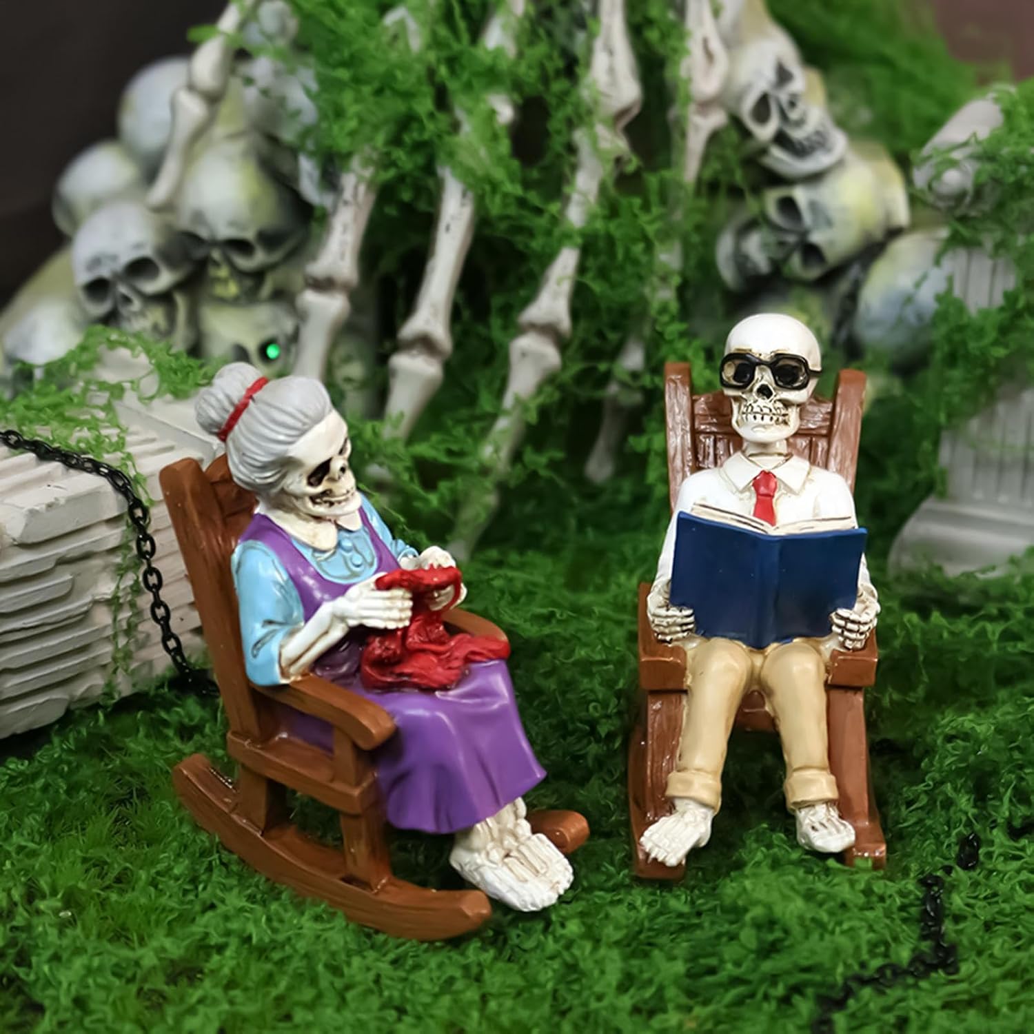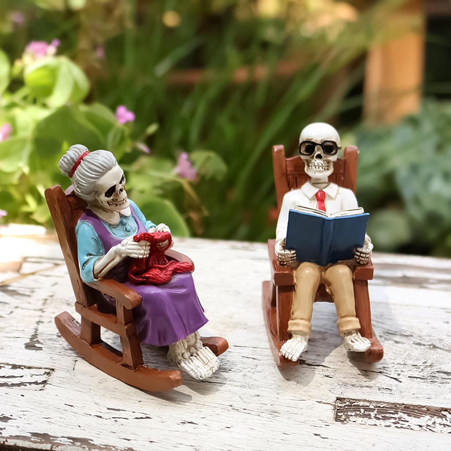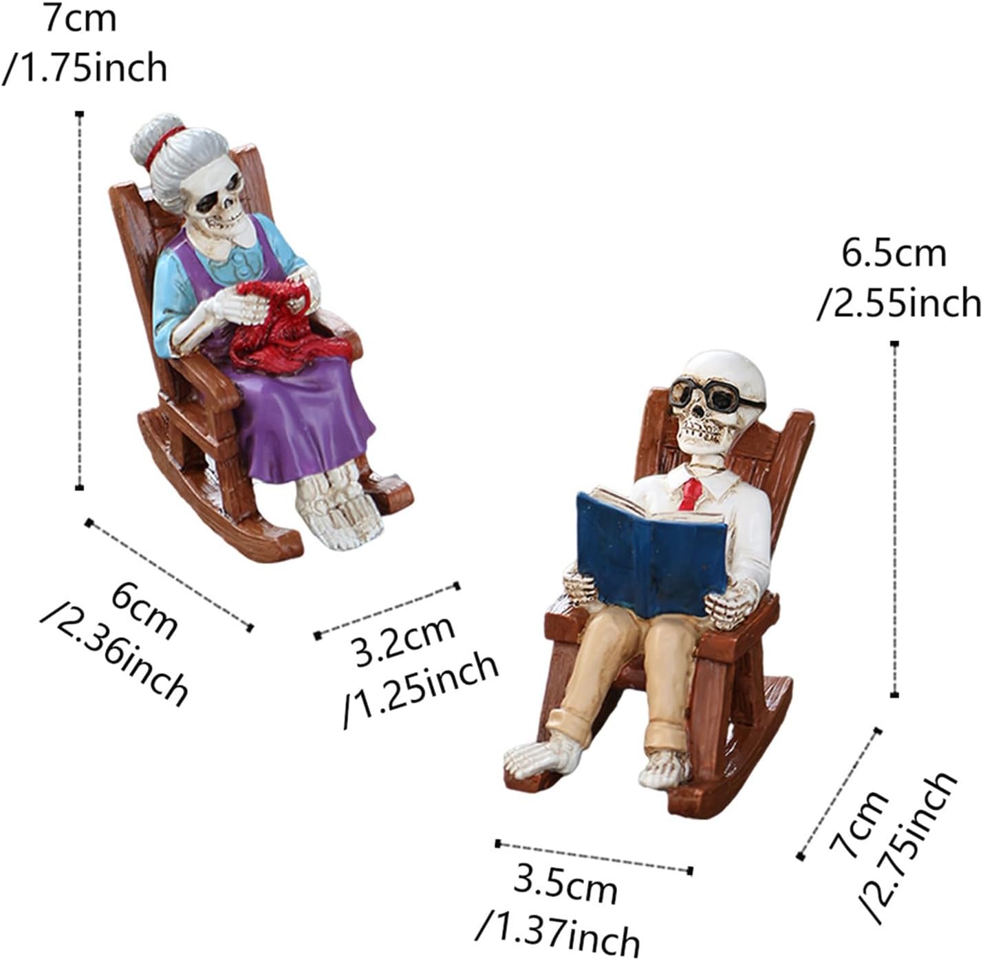 Gioia duratura: robuste figure scheletriche con una selezione sicura di materiali offrono una longevità resistente all'usura per un divertimento decorativo duraturo Funzionamento intuitivo: gestione ottimizzata grazie al design leggero della base - ideale per rapidi cambi di posizione e configurazioni di visualizzazione personalizzabili Dispositivi stilistici flessibili: perfetta decorazione della vetrina e design dell'ingresso con figure scheletriche. Crea senza sforzo un'atmosfera festosa per le feste e rendi ogni celebrazione indimenticabile. Scultura artistica: con motivi di teschi e design di sedia a dondolo, questo oggetto decorativo consente una progettazione della stanza specifica per tema che definisce un lavoro di precisione estetica: la figura ricostruisce l'immagine dello scheletro storico attraverso una modellatura realistica. Realizzato a mano con cura precisa per un pezzo da esposizione visivamente accattivante dal fascino senza tempo