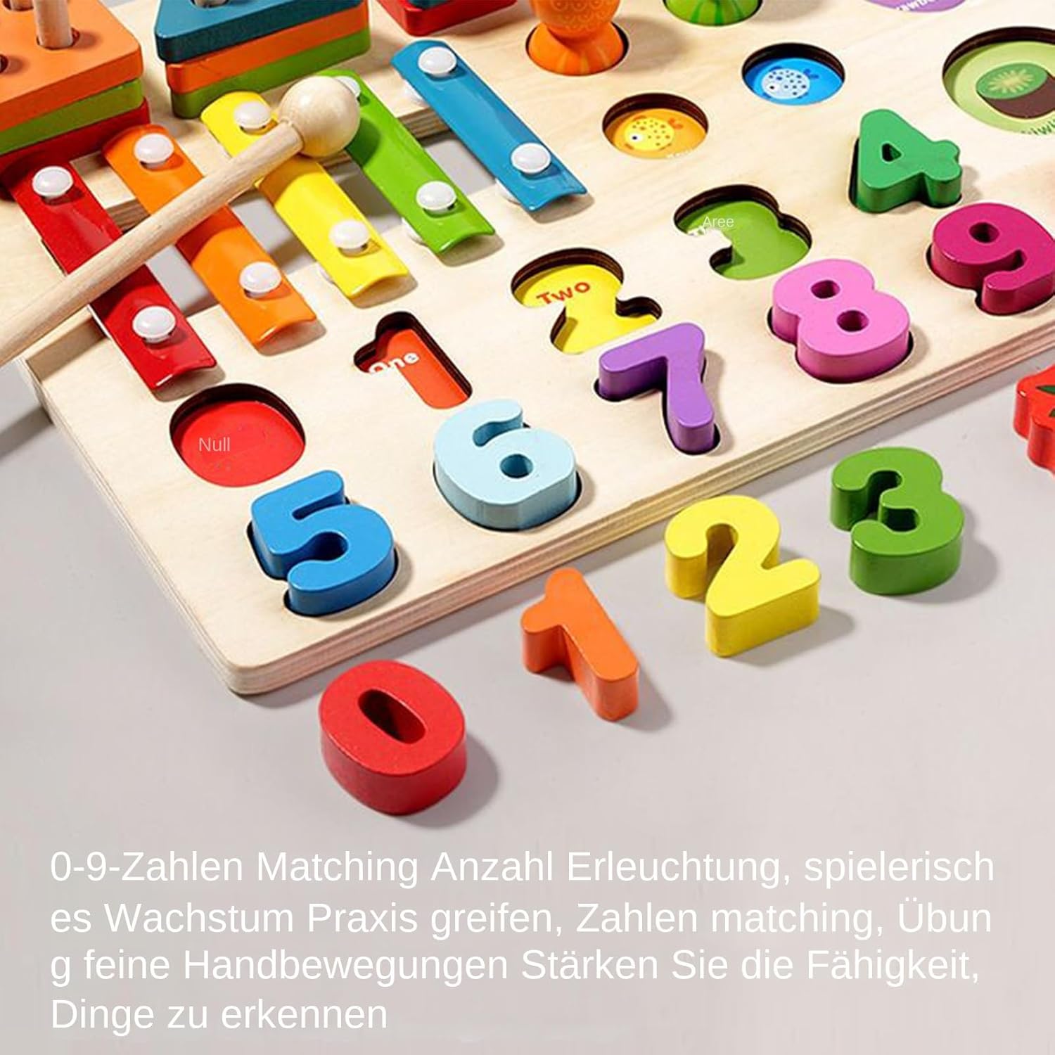 Sostenere lo sviluppo: attività di gioco combinate: ordina forme, apprendimento dei numeri, riconoscimento dei frutti, rafforza in modo sostenibile la concentrazione, migliora le capacità di coordinazione e incoraggia i bambini a esplorare. Apprendimento giocoso: sviluppa creatività e immaginazione durante il gioco. I bambini sperimentano il divertimento di esplorare le forme: un modo ideale per mostrare ai bambini piccoli un regalo prezioso. Uso intuitivo: l'interazione con diversi moduli allena il pensiero logico e le competenze di base per l'apprendimento precoce, migliora i movimenti precisi e aumenta la voglia di esplorare il gioco. Lavorazione accurata: il legno rinforzato e infrangibile con superfici lisce e lucide garantisce nessuna sbavatura o rischio di lesioni durante il gioco prolungato, per garantire sicurezza e comfort a misura di bambino. Uso a lungo termine: il legno naturale combinato con vernice a base d'acqua nutre la pelle sensibile del bambino e offre ai genitori un'esperienza di gioco senza preoccupazioni grazie ai materiali durevoli