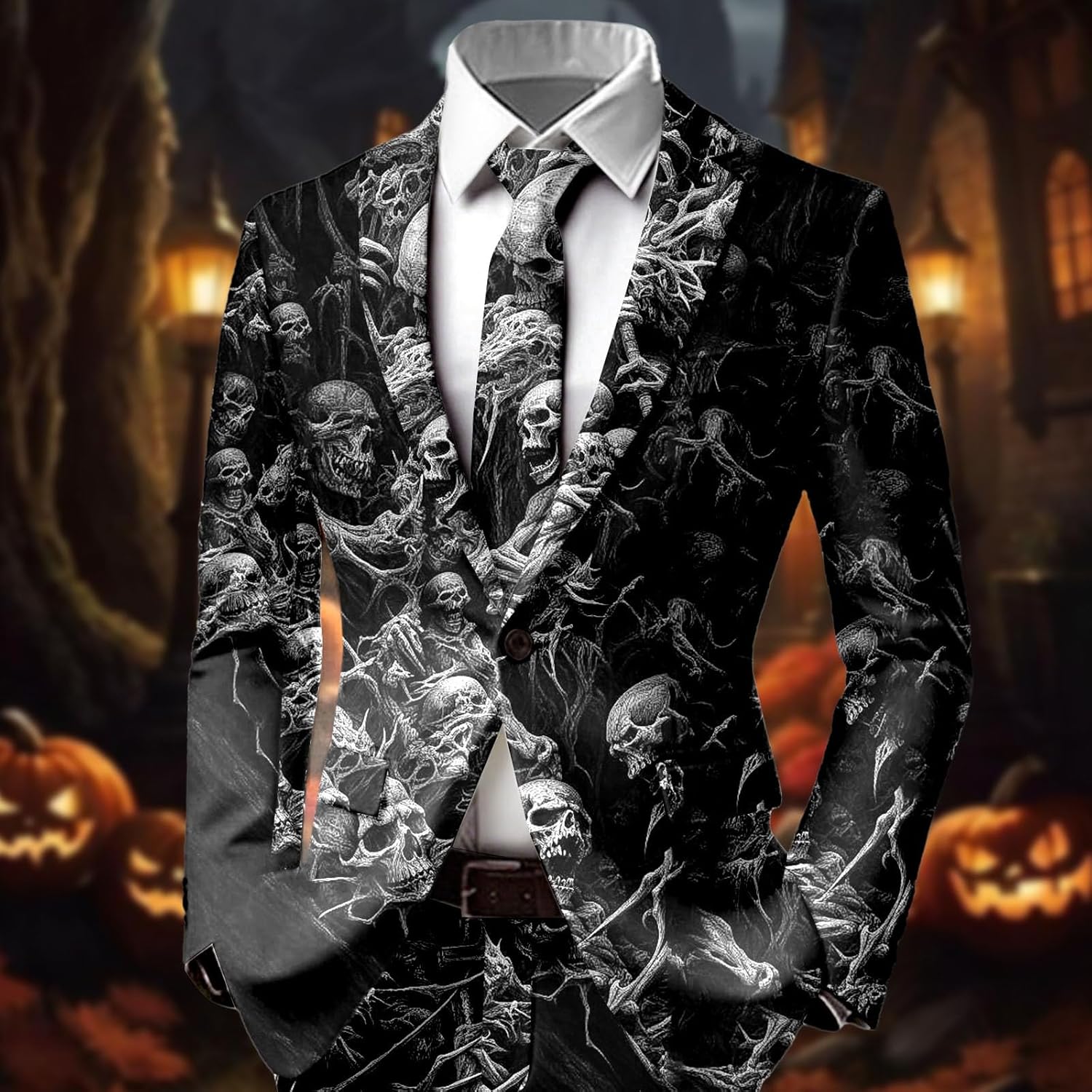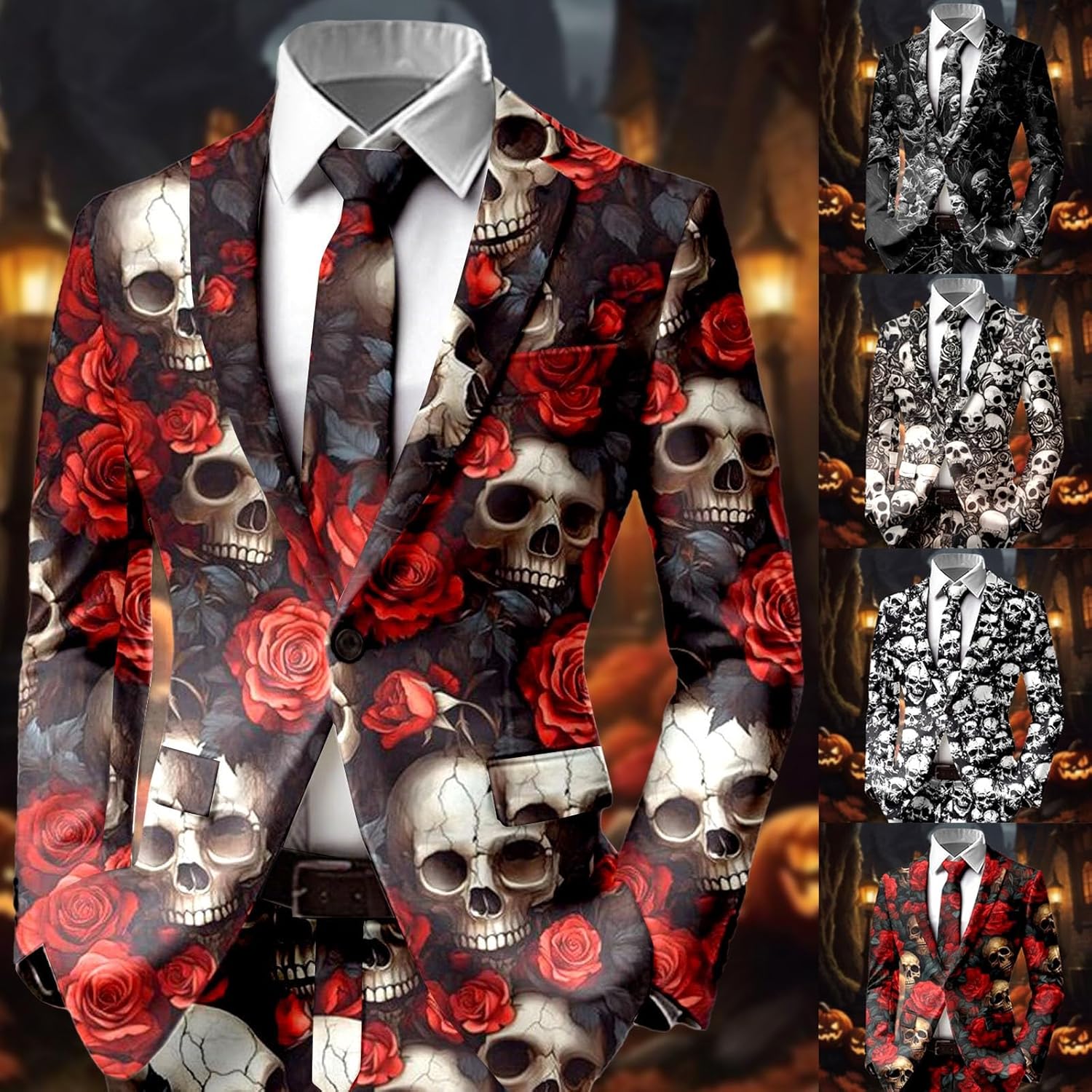 Generisch Giacca da uomo per Halloween, cosplay con stampa teschio, giacca per il tempo libero, giacca vintage, vestibilità normale, per attività all'aperto, festival, blazer, cappotto, felpa per