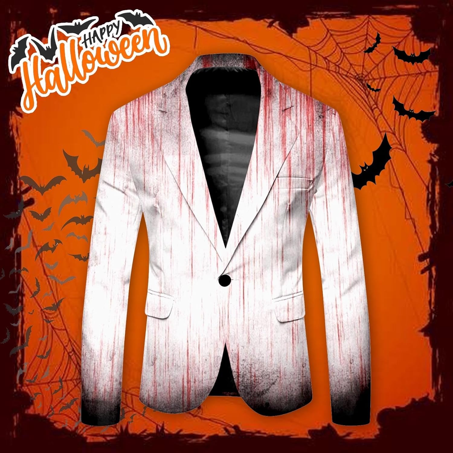 Generisch Giacche da uomo per Halloween, blazer sanguinoso, spaventoso, giacca da abito, giacca horror blazer con stampa sanguinosa, costume per cosplay, festival