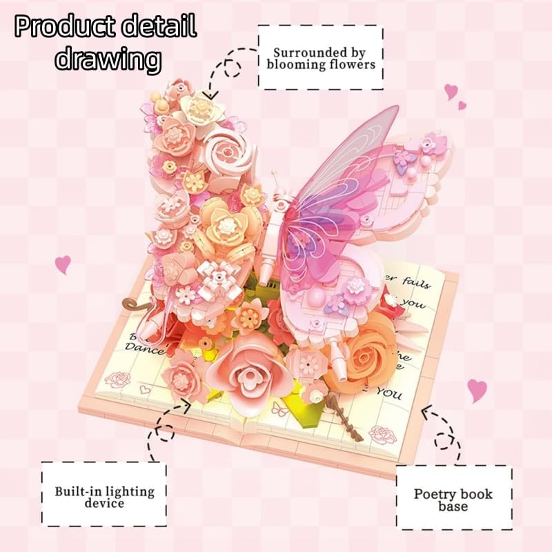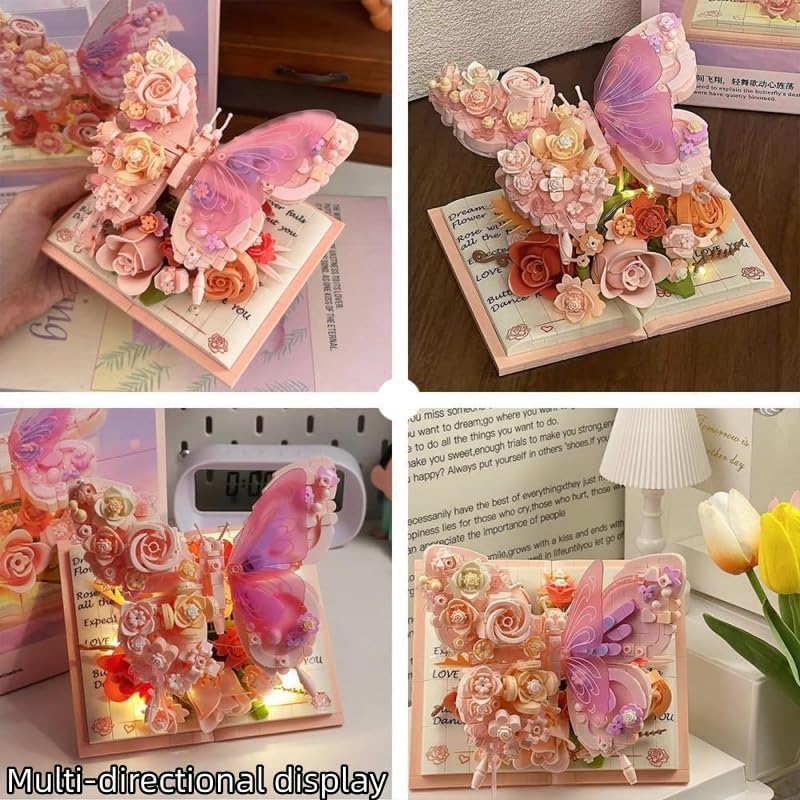 Design unico:Costruito in un affascinante display 3D a forma di libro con un giardino di farfalle nascosto e un bouquet di fiori: apri il "libro" per rivelare dettagli botanici realistici, il design creativo trasforma i mattoncini in un centrotavola decorativo, non solo un giocattolo Costruzione fai-da-te divertente e rilassante:Viene fornito con blocchi di plastica di alta qualità, sufficienti per creare dettagli intricati, adatto per adulti o per farlo con la tua famiglia, impegnativo ma non frustrante, con istruzioni passo passo per un assemblaggio regolare Ambiente romantico:Giardino di farfalle 3D blocchi, include una mini stringa LED che illumina il giardino delle farfalle e i fiori, la luce calda aggiunge un'atmosfera accogliente e romantica alle camere da letto, alle scrivanie o agli scaffali Uso tutto l'anno: a differenza dei fiori veri, il bouquet 3D non appassisce mai, esponilo come elemento decorativo permanente in camere da letto, soggiorni o uffici, i blocchi durevoli resistono allo sbiadimento e all'usura, quindi rimane vibrante per anni Idea regalo unica: i blocchi 3D del giardino delle farfalle sono un regalo ideale per compleanni, San Valentino, matrimoni o le lauree, che simboleggiano la crescita, l'amore e la trasformazione, sono un ricordo premuroso per gli amanti della natura e gli appassionati del fai-da-te