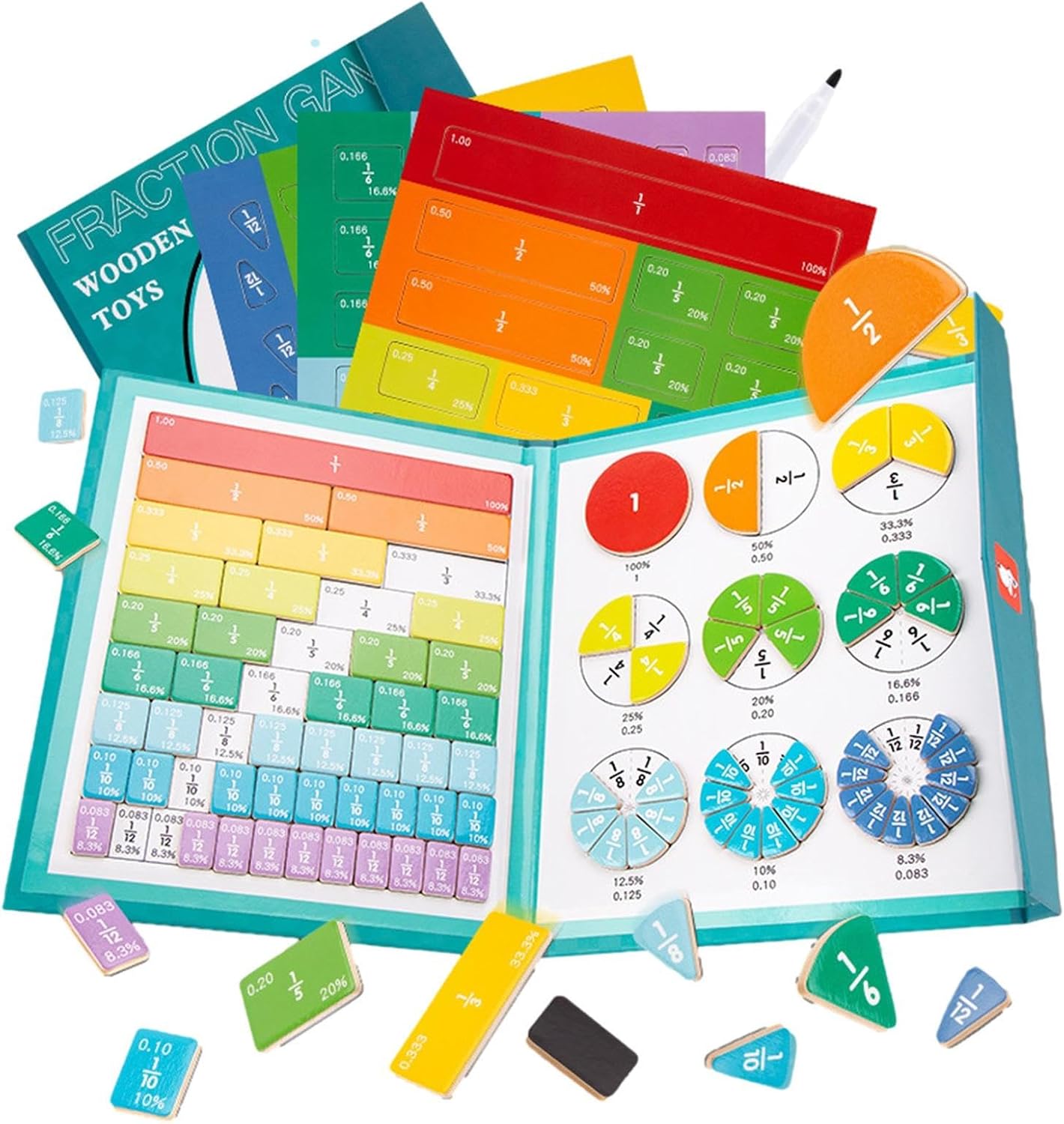 [Strumento didattico speciale] Math Manipulative Magnetic offre la migliore esperienza di apprendimento ed è progettato dagli insegnanti per piastrelle e cerchi magnetici con colori vivaci e numeri contrastanti che facilitano l'apprendimento dei punteggi e migliorano la cinestetica e la visione. [Varie funzioni] I manipolatori matematici del contatore magnetico allenano la capacità di cooperazione e migliorano l'abilità pratica, migliorano la capacità di distinguere forme e cose, promuovono la coordinazione occhio-mano e stimolano lo sviluppo sensoriale. [Apprendimento migliorato] Con una custodia robusta e spaziosa per riporla facilmente, le tessere magnetiche delle frazioni ispirano i bambini ad apprendere il concetto di frazioni, un pratico e-book con punteggi, molto adatto per l'istruzione a casa. [Design artistico] Può facilmente attirare l'attenzione degli studenti, Fraction Manipulatives 3rd Grade con una base magnetica spessa e un design dai colori vivaci, una semplice dimostrazione educativa su una lavagna o una lavagna magnetica. [Bel regalo] I manipolatori matematici in legno sono un regalo perfetto per aiutare gli studenti a padroneggiare facilmente i punteggi, ottimi regali educativi per bambini, genitori, insegnanti ed educatori e ideali per l'apprendimento a scuola o a casa.
