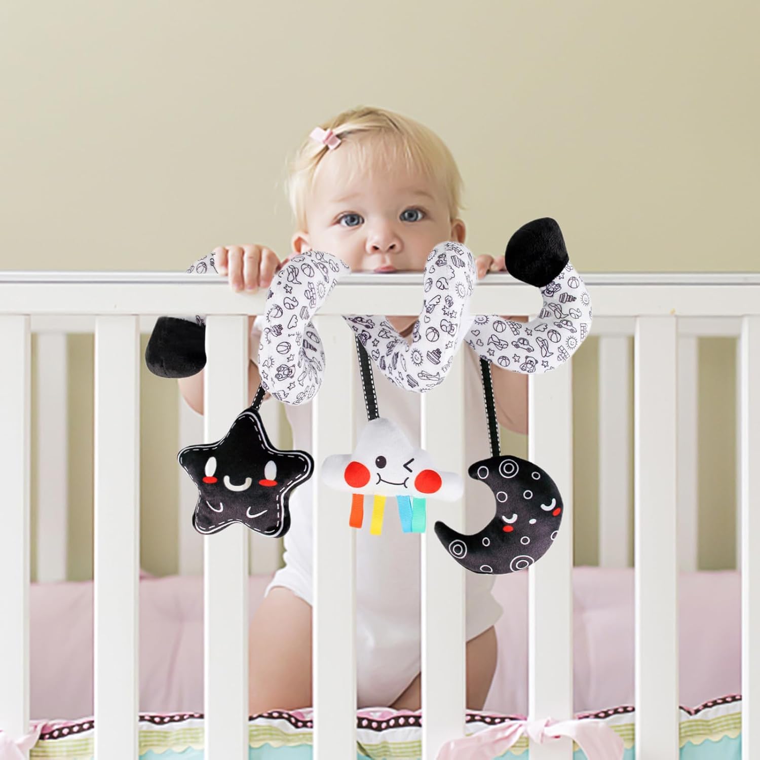 Perfetto per le vacanze: giocattolo dal design intelligente come regalo di compleanno significativo e pratico da usare. Il design universale dell'attacco si adatta alla maggior parte dei tipi di passeggini per un maggiore comfort Promozione della percezione del colore: modelli sfumati ad alto contrasto stimolano l'interesse nella discriminazione dei colori e nell'esplorazione dei modelli durante il gioco - supporta lo sviluppo delle capacità di percezione visiva Melodie rilassanti per il bambino: lo speciale sistema sonoro del campanello emette melodie delicate che allenano il senso dell'udito e creano un'atmosfera tranquilla in macchina attraverso strutture sonore armoniose Gioco di apprendimento tattile: sviluppa il senso del tatto con componenti sospesi interattivi, i loro movimenti dipendenti dalla rotazione allenano le capacità motorie di presa e promuovono la coordinazione occhio-mano nella prima infanzia attraverso il gioco effetti. Design orientato alla sicurezza: struttura robusta con opzioni di regolazione flessibili per una facile installazione sui passeggini, consente sequenze di movimento fluide e favorisce un gioco senza stress e senza restrizioni