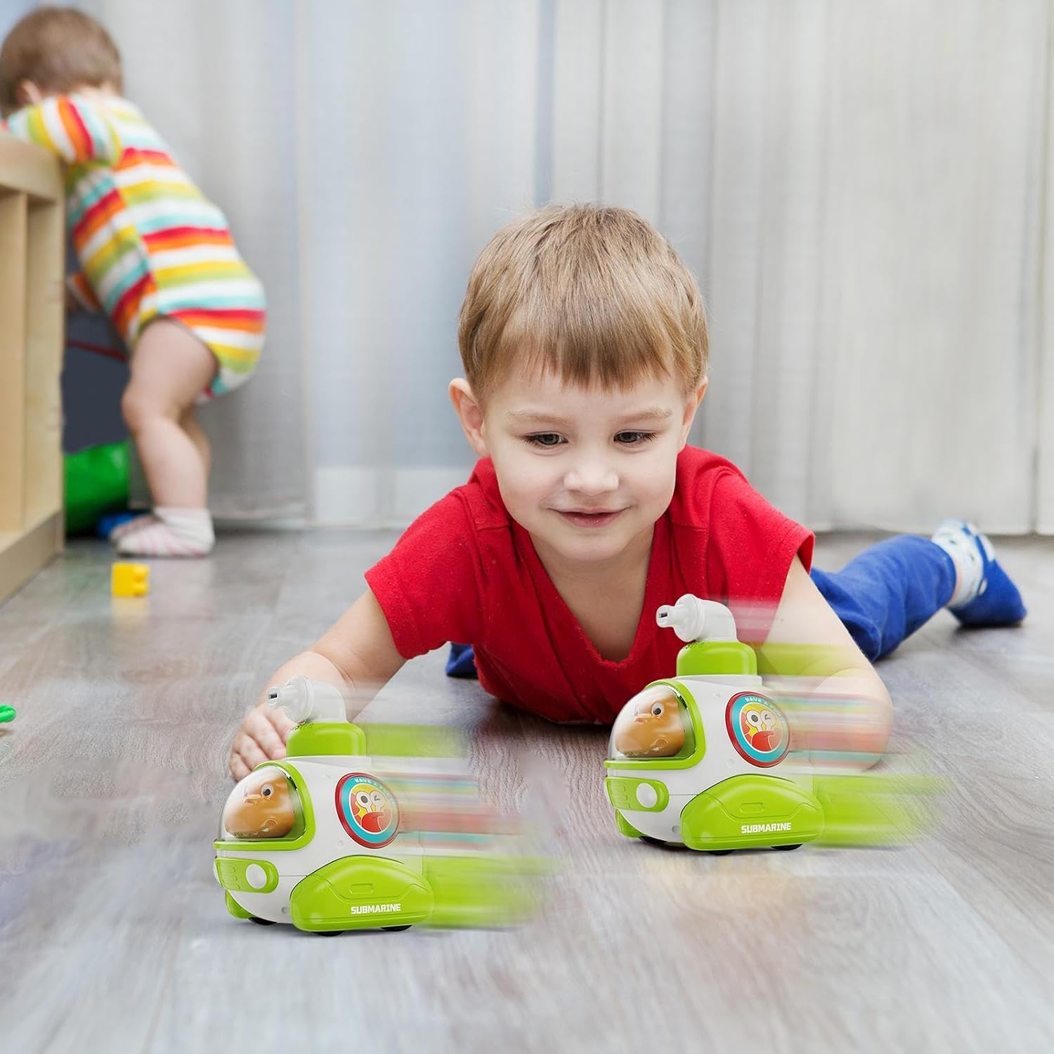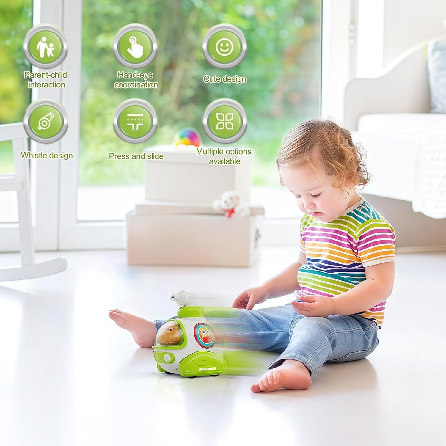 Simpatico design da sottomarino a forma di cartone animato: con il loro simpatico aspetto sottomarino a forma di animale da cartone animato, queste macchinine a spinta e rilascio aumentano l'interesse visivo e funzionano perfettamente come accessori per giochi di ruolo o oggetti decorativi sulle scrivanie per stimolare avventure fantasiose. Sviluppo delle capacità motorie: con il gioco interattivo, questa macchinina a inerzia di dinosauro aiuta i bambini a migliorare i riflessi e la coordinazione e crea un ambiente arricchente per l'apprendimento e la crescita attraverso l'esplorazione pratica. Giocattolo di stimolazione uditiva: le macchinine a spinta e rilascio hanno un fischio incorporato che si attiva con una semplice pressione e crea divertenti effetti sonori per coinvolgere i bambini mentre giocano e promuovere lo sviluppo sensoriale in ambienti di apprendimento interattivi attraverso la stimolazione uditiva Apprendimento interattivo: la macchinina basata sulla fisica consente ai bambini di immagazzinare energia premendo e convertirla in movimento. Supporta il gioco di sviluppo senza alimentazione a batteria, rafforza la destrezza manuale e l'interesse scientifico se utilizzato in vari ambienti. Gioco cooperativo: l'Inertia Animal Car consente connessioni emotive tra generazioni attraverso un addestramento al gioco collaborativo che fornisce emozionanti interazioni basate sul gioco per una maggiore vicinanza e cooperazione familiare