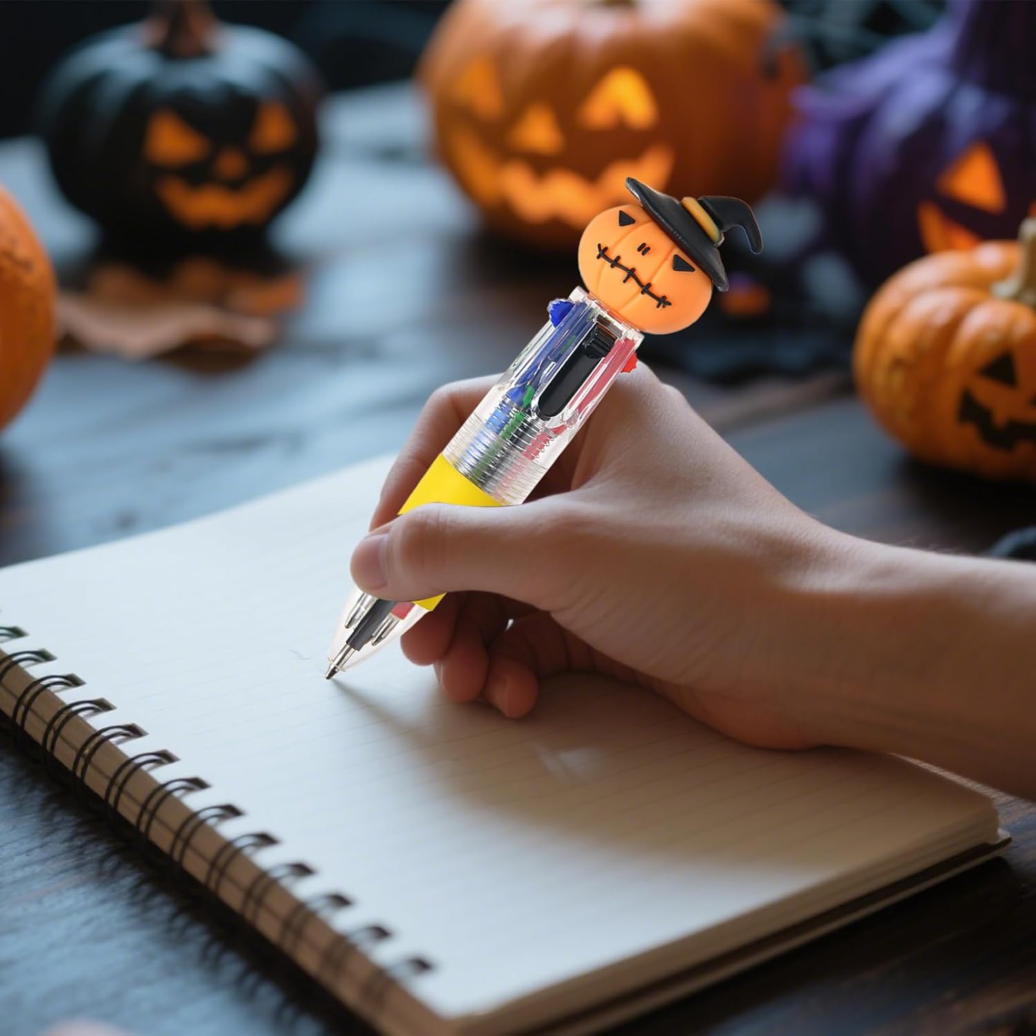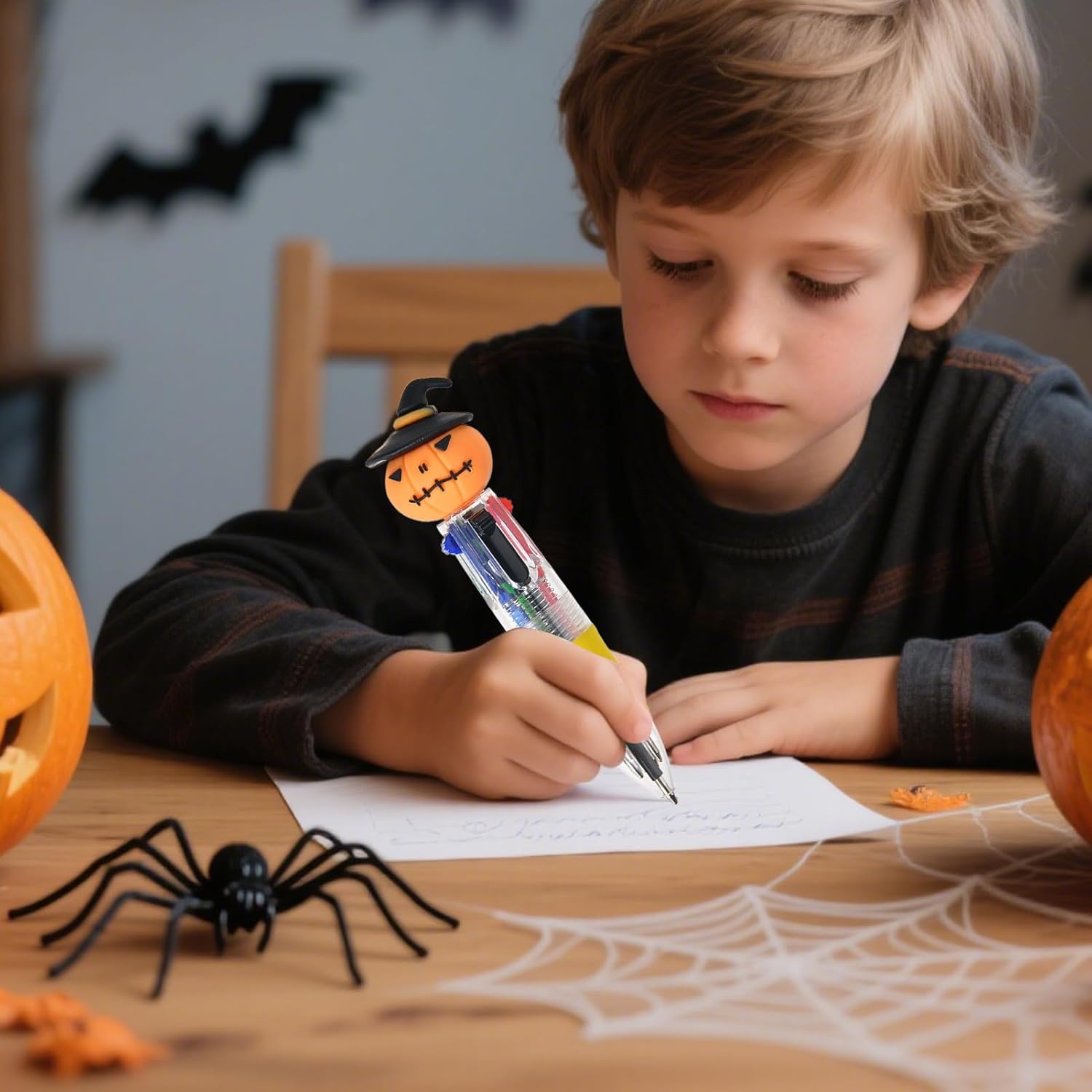 Prestazioni costanti: mini penne per bambini, design resistente agli urti e alla pressione con alloggiamento rinforzato consente transizioni di colore fluide e resiste a un uso frequente a lungo termine. Regalo elegante: mini penne per bambini, con un design pronto per il regalo, questa penna convince come un regalo caloroso e significativo. Particolarmente adatto per traguardi studenteschi, compleanni e ricordi duraturi. Penna da colorare efficiente: mini penne per bambini, ottimizzata per attività di scrittura e disegno, il design 4 in 1 consente rapidi cambi di colore per aumentare l'efficienza del lavoro come strumento multifunzionale versatile. Penna creativa per Halloween: mini penne per bambini, con motivi di zucca e zucca in colori vivaci e vivaci, questa penna multifunzionale cattura lo spirito festivo delle vacanze: un regalo perfetto per i bambini che amano la cancelleria creativa. Presa comoda: mini penne per bambini, favorisce una presa corretta grazie al coperchio antiscivolo della penna, la distribuzione equilibrata del peso e la forma ergonomica riducono efficacemente l'affaticamento della scrittura