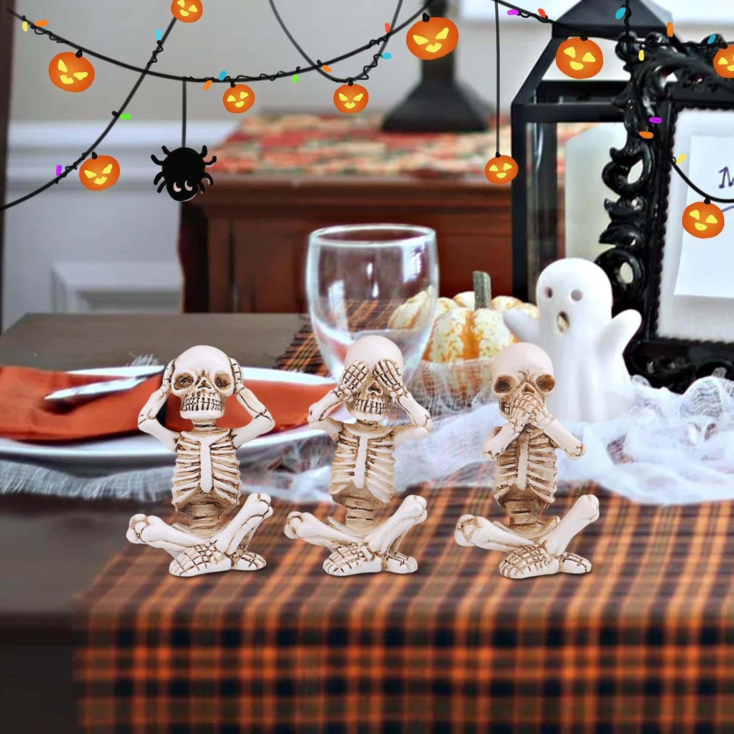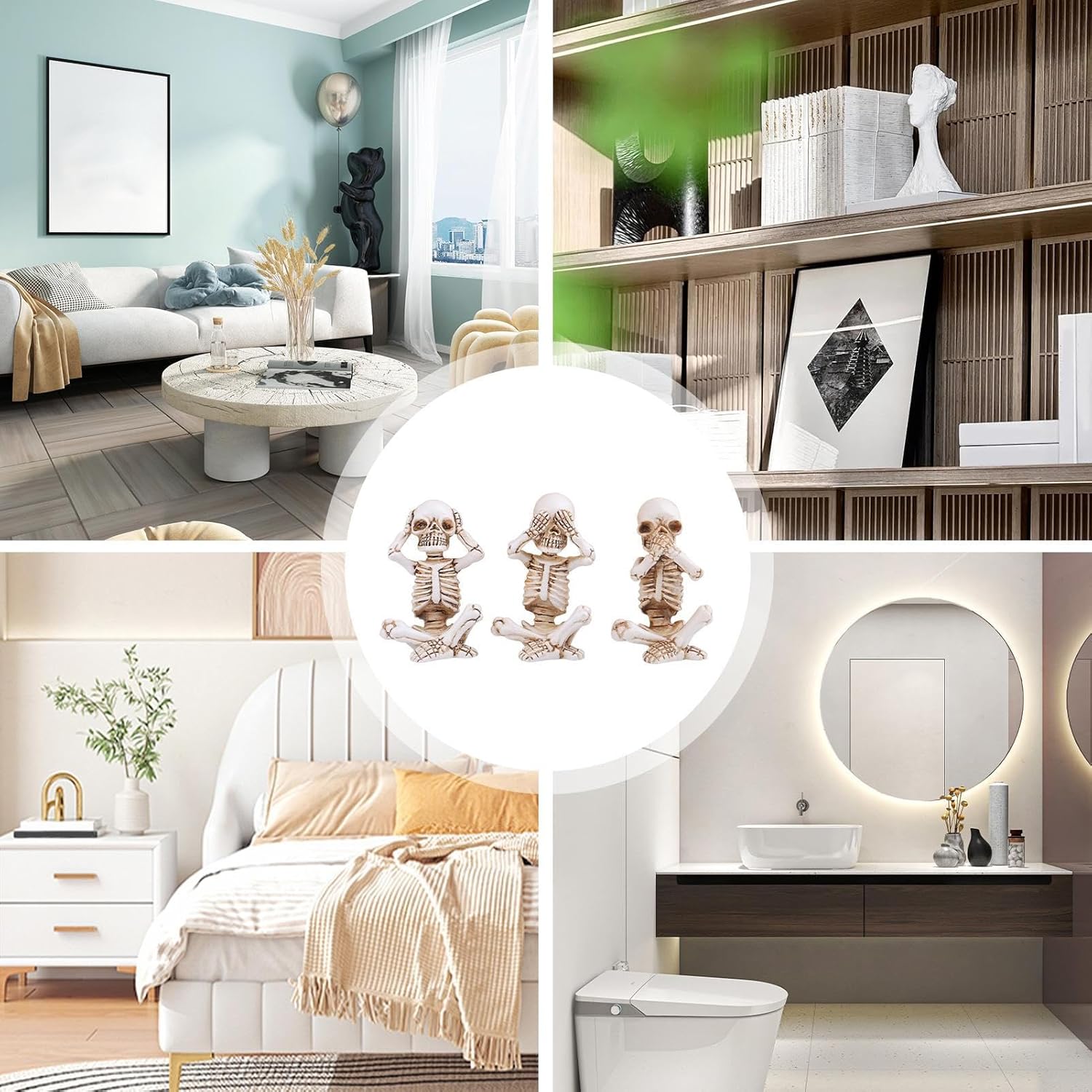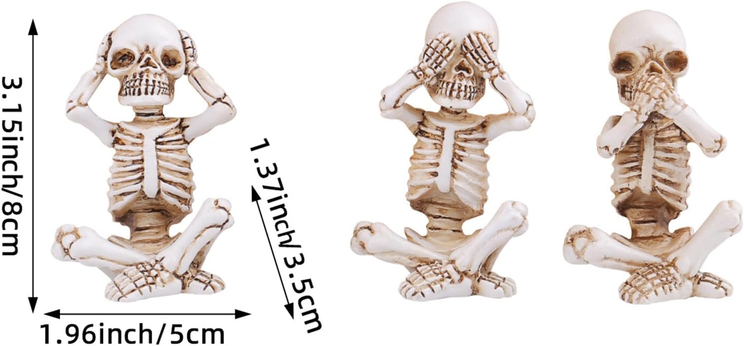 Atmosfera vacanziera: con il tema "Non ascoltare, non guardare, non dire", combina abilmente il mistero e il divertimento del festival e migliora l'atmosfera festosa della casa o della sala delle feste. Ottima fattura: le nostre figurine scheletro hanno espressioni e pose vivide, grazie alle magistrali tecniche di intaglio e lucidatura utilizzate durante la produzione, che mostrano una squisita attenzione ai dettagli. Materiale robusto: realizzate in resina di alta qualità, queste figurine scheletro sono costruite per durare a lungo e sono durevoli nella loro robustezza e la costruzione resistente all'ovest può essere interrotta. Non preoccuparti che sbiadiscano o si rompano, resisteranno a qualsiasi cosa. Facile da pulire: con una buona resistenza alle macchie, queste figure scheletriche sono facili da pulire. Basta pulire delicatamente con un panno umido e assicurarsi che rimangano intatti e attraenti. Molti usi: queste statuette scheletriche sono un must per aggiungere un tocco spaventoso a qualsiasi stanza. Nei tavoli da pranzo, nelle camere da letto, nei ristoranti, sui caminetti e sui davanzali delle finestre, l'eleganza inquietante viene evocata e migliora il tuo spettralità come mai prima d'ora