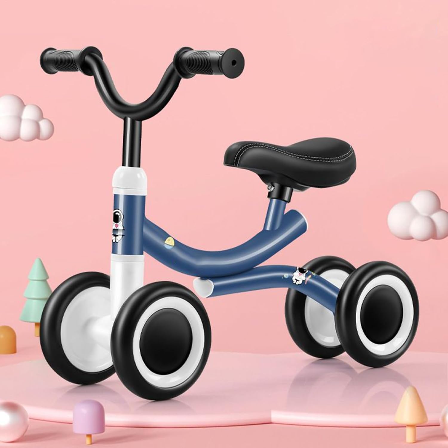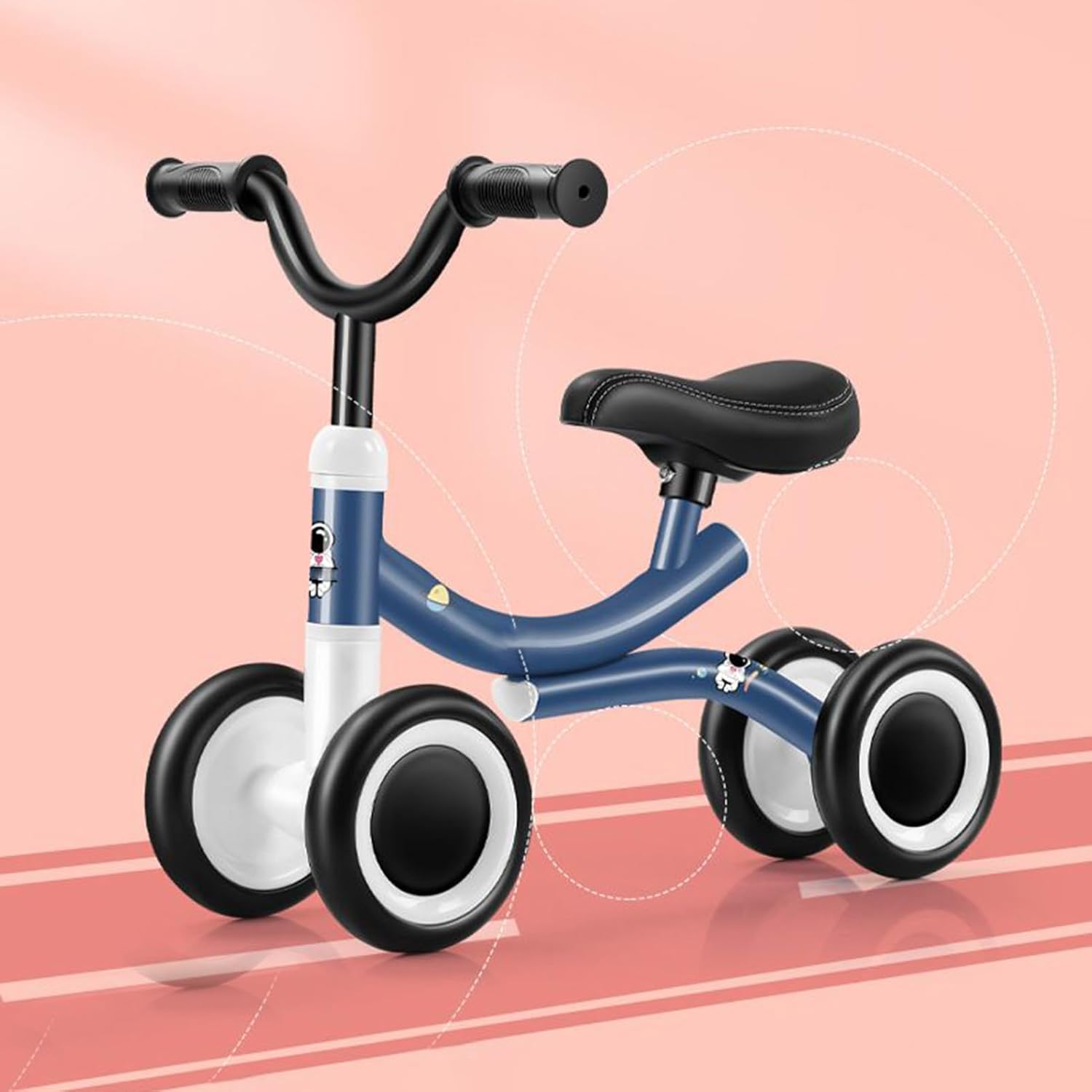 {Sedile ergonomico per una guida confortevole} La sella morbida e delicata sulla pelle supporta la postura corretta: consente ai bambini di partecipare a sessioni di gioco più lunghe e all'esercizio quotidiano. {Base stabile a 4 ruote per i principianti} La disposizione delle ruote extra larga offre un equilibrio superiore e impedisce la digitazione: ideale per i bambini che imparano a camminare e andare in bicicletta in ambienti chiusi. {Leggero e facile da trasportare} Telaio compatto realizzato con materiali durevoli e sicuri per i bambini: i genitori possono trasportarlo facilmente tra stanze, parchi o destinazioni di viaggio. {Manubrio antiscivolo con sterzata limitata} L'angolo di sterzata di 135° previene curve strette e cadute laterali, aiuta a creare sicurezza e a ridurre al minimo il rischio di lesioni. {Silenzioso per uso interno} I pneumatici morbidi e antitraccia scivolano dolcemente sui pavimenti: ideali per case, sale giochi e ambienti silenziosi.