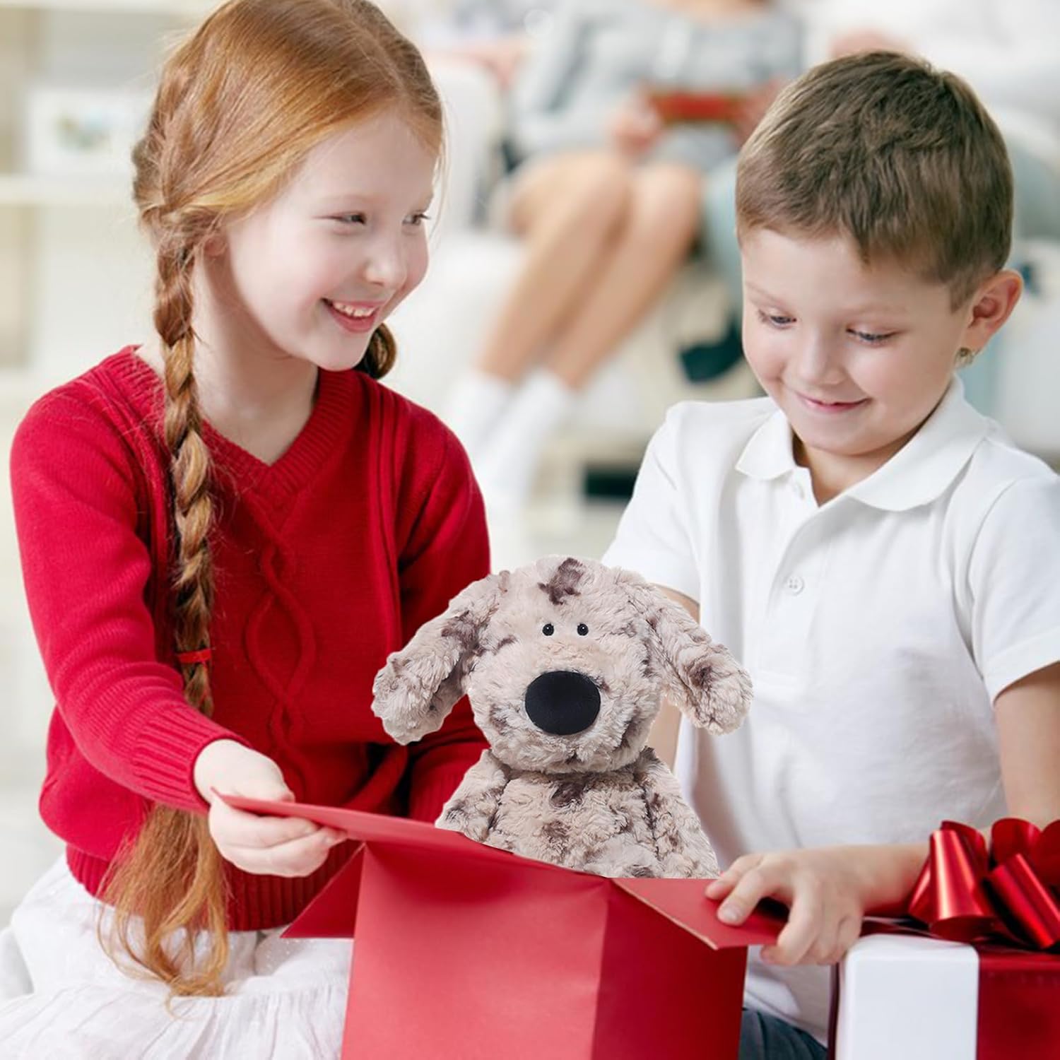 Aspetto giocoso con punti di colore: grazie al design con punti vividi distribuiti uniformemente, il cane di peluche dona un tocco carino a qualsiasi ambiente. Garantisce ore di intrattenimento e un'atmosfera allegra nelle sale giochi o durante riunioni di famiglia con animali domestici. Questo peluche è un compagno popolare per gli amanti degli animali. Materiale morbido: realizzato in tessuto di peluche ultra morbido e imbottitura in cotone PP, questo peluche per cani offre un'esperienza tattile rilassante. È perfetto per creare momenti allegri durante il gioco o il relax a casa. La superficie morbida e l'imbottitura flessibile garantiscono una piacevole sensazione di presa, che porta relax e gioia a tutta la famiglia ed è ideale per attività morbide. Materiali sicuri per i bambini: realizzato con materiali delicati e anallergici che raramente causano allergie, questo peluche offre un'opzione sicura per i bambini di tutte le età. Promuove un divertimento infinito durante le riunioni con gli amici o dona una vicinanza rilassante di notte, senza che minacci l'irritazione della pelle, rendendolo un compagno affidabile per le avventure quotidiane. Regalo incantevole: questo morbido cane di peluche incanta i bambini con il suo fascino e porta gioia durante il gioco. È il regalo perfetto per Halloween, compleanni o feste di Natale e arricchisce naturalmente i momenti festivi con i propri cari, donando occhi luminosi e ricordi calorosi. Applicazioni versatili: questo morbido giocattolo per cani è progettato per essere un compagno di giochi e un amico rilassante. Aiuta i bambini a rilassarsi dopo una giornata attiva, favorisce un rilassamento più veloce e un sonno ristoratore più profondo. Grazie alla sua presenza confortante nella vita di tutti i giorni, crea un senso di sicurezza e sicurezza. Questo giocattolo versatile supporta lo sviluppo emotivo ed è un compagno ideale per i momenti quotidiani, come peluche e aiuto rilassante