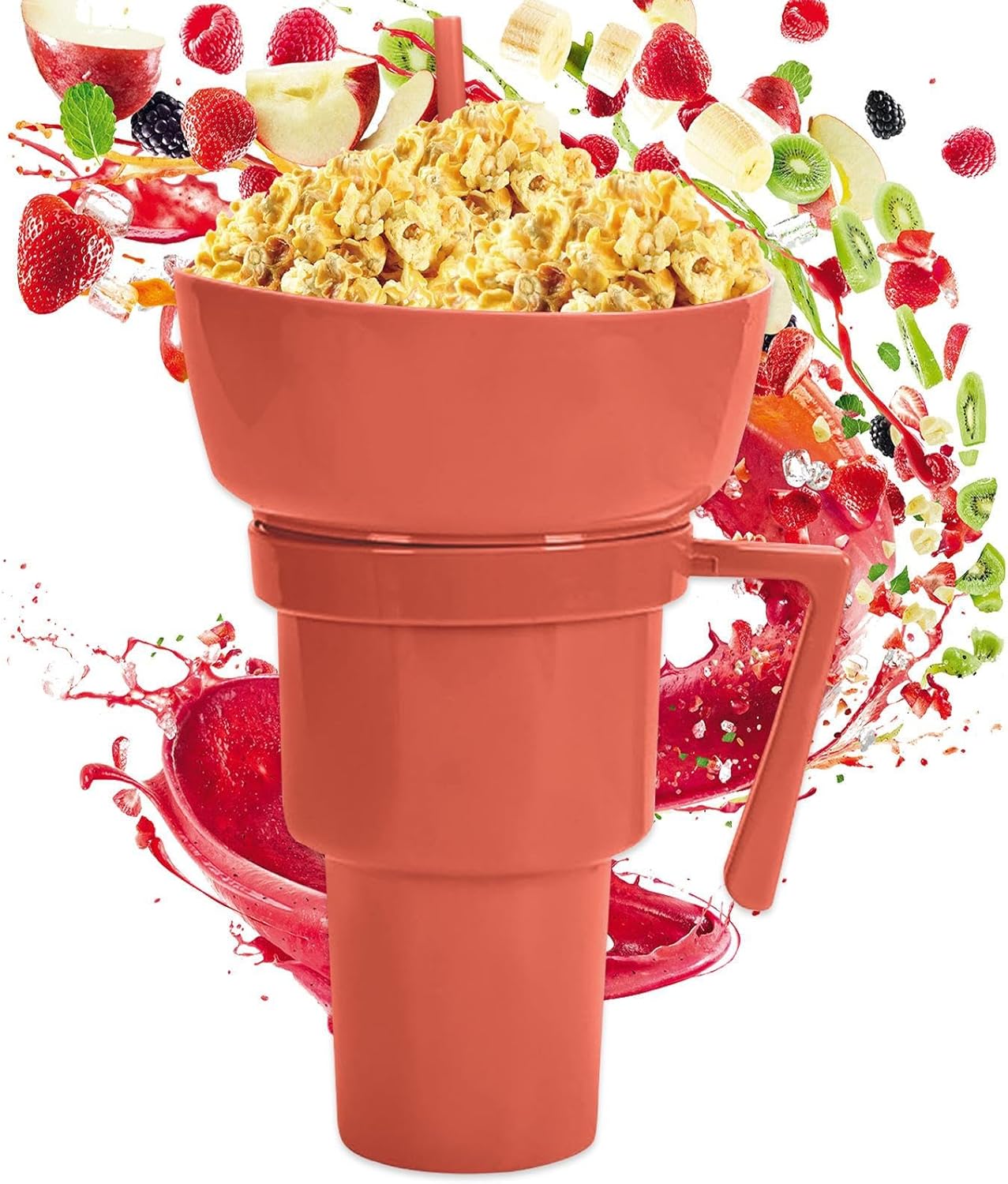 Distribuzione ottimale dello spazio: con un design ben studiato per snack e bevande, compagno perfetto per eventi come festival o viaggi in auto senza dover riempire il cibo Pratica conservazione: soluzione integrata per snack come popcorn, noci e . Versatile per feste, riunioni o serate al cinema per una facile maneggevolezza. Innovativo concetto di cibo: speciale bicchiere per snack con scomparto integrato per bevande per il consumo simultaneo, impedisce il trasferimento del gusto per un'esperienza unica di snack Harmoniegarant: set di bevande per snack personale per una migliore esperienza visiva, previene i conflitti ed è un regalo premuroso per le persone care nelle serate accoglienti Design di facile manutenzione: la superficie liscia e la guarnizione in silicone rimovibile consentono una facile pulizia. Compatto e leggero per gite spontanee con snack per bambini.