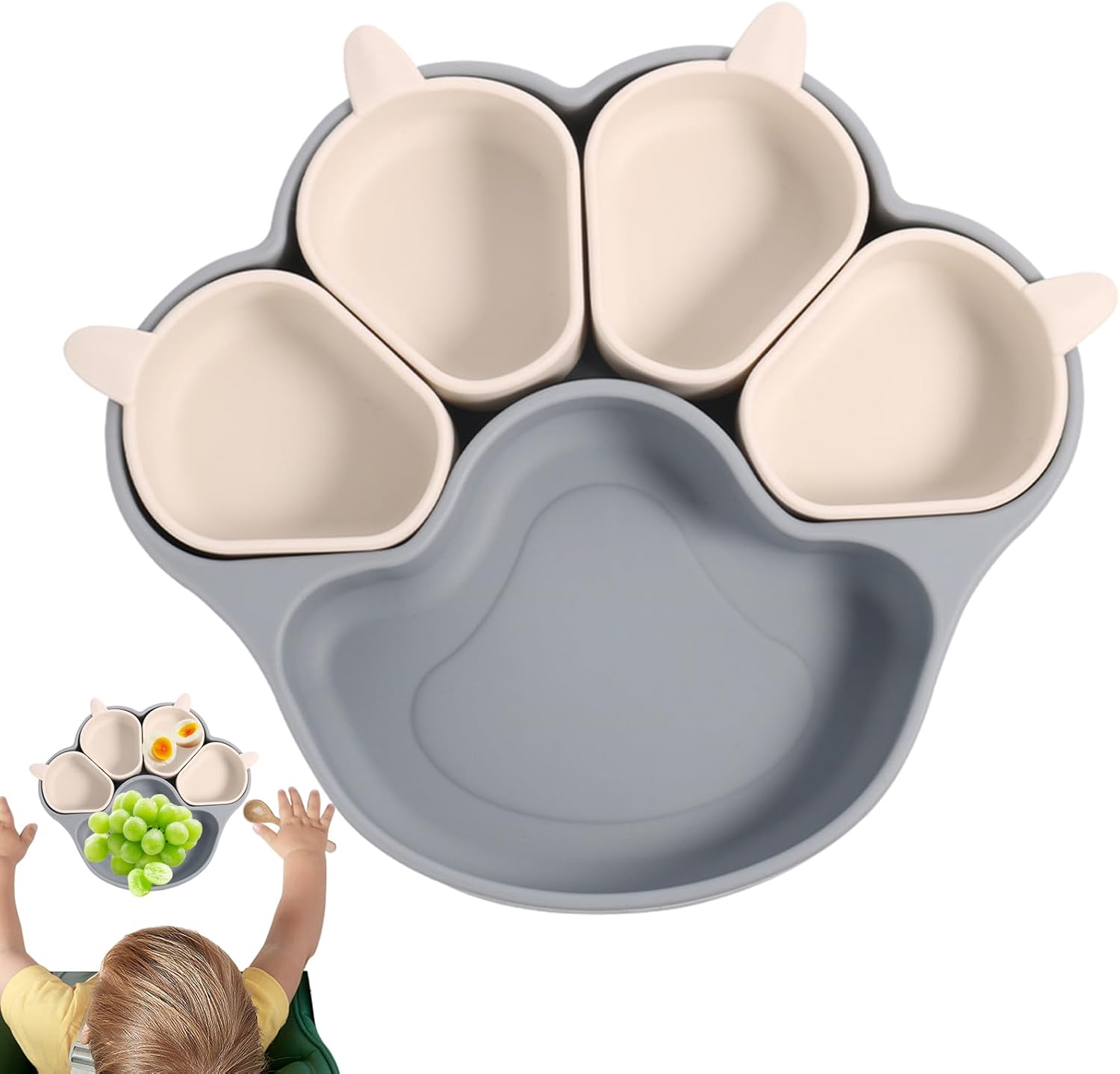 Materiali durevoli: grazie alla selezione di materiali di alta qualità, questa piastra a ventosa è realizzata in silicone alimentare, che è sicuro e resistente alle alte temperature e offre una qualità eccellente che garantisce un uso a lungo termine per la sicurezza della tua famiglia. Forma innovativa: la piastra a ventosa con la sua attraente forma ad artiglio di gatto rende questa attività giocosa per i bambini. Il suo design carino aggiunge un tocco divertente al tavolo da pranzo e assicura che i bambini possano godersi il pasto con più entusiasmo, con il risultato di abitudini alimentari più sane. Usi multipli: il nostro piatto a ventosa è ideale per una varietà di eventi come riunioni di famiglia, picnic all'aperto e asili nido. È progettato per offrire a tutti un'esperienza culinaria igienica e senza problemi e per soddisfare facilmente le diverse esigenze culinarie. Con forte ventosa. L'ampio design a ventosa del nostro piatto a ventosa consente di fissarlo saldamente ai tavoli da pranzo, fissando il piatto e impedendo ai bambini di spingerlo o rovesciarlo durante lo sviluppo di gustose abitudini: il nostro piatto a ventosa ha scomparti indipendenti per diversi alimenti, promuovendo abitudini alimentari più sane e sviluppando preferenze di gusto nei bambini piccoli