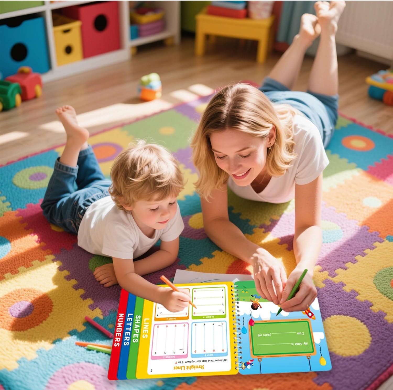 Set di apprendimento semplice e portatile: progettato per i bambini in età prescolare, questo libro educativo per la scrittura delle lettere offre una soluzione completa con pennarelli cancellabili a secco facili da usare, riposti in una borsa compatta. Questo lo rende facile da trasportare e ideale per l'uso all'aperto o a casa, sottolineando la sua versatilità e praticità Pratica pratica di base: le attività di tracciamento interattivo rafforzano le basi della scrittura promuovendo la coordinazione occhio-mano e la memoria motoria. Ciò garantisce un miglioramento continuo nelle prime fasi dello sviluppo della grafia. Il libro offre un mix ideale di apprendimento e divertimento per motivare i giovani studenti a praticare e consolidare le loro abilità. È uno strumento prezioso per i primi passi nella sch Sostenere l'apprendimento pratico: progettato per migliorare le capacità motorie e il controllo della penna, questo libro di tracciamento offre strumenti riutilizzabili come pennarelli e robuste pagine di cartone che consentono l'apprendimento orientato all'azione Resistenza e robustezza: questo quaderno per esercizi dell'alfabeto è dotato di un design resistente all'abrasione e al materiale resistente agli strappi, che lo rendono ideale per un uso frequente e per la condivisione tra studenti. La robusta struttura assicura che il quaderno duri a lungo anche in caso di uso intensivo ed è adatto per l'apprendimento insieme. Perfetto per i bambini che fanno i primi passi nel tracciamento dell'alfabeto. Strumento di apprendimento interattivo: perfetto come regalo, questo libro da disegno promuove lo sviluppo cognitivo e l'interesse per l'apprendimento. Offre accattivanti opportunità di pratica che aiutano i bambini a costruire fiducia e autosufficienza nel proprio mentre scoprono l"alfabeto.