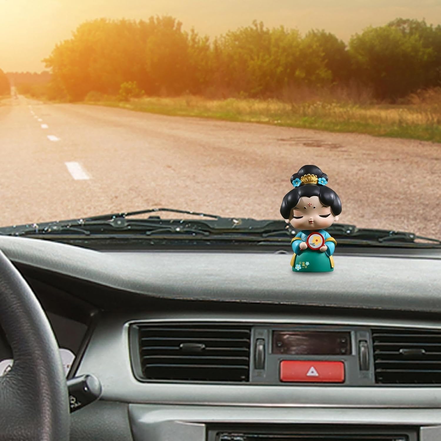 Crea un'atmosfera calda: l'espressione allegra delle nostre figurine aiuta a creare un'atmosfera tranquilla nella tua auto. Poiché ogni ornamento ha un aspetto unico e delicato, aggiunge un tocco di calma alla tua esperienza di guida. Buona fattura: questa statuetta mostra dettagli squisiti e una lavorazione impressionante, scolpita a mano da abili artigiani con materiali in resina di alta qualità. Il suo valore artistico non ha eguali con le sue linee belle ed eleganti. Adorabili giocattoli: ravviva l'atmosfera della tua auto con le nostre figurine. Il design a molla integrato consente un'oscillazione naturale ad ogni corsa, portando gioia e aggiungendo un fattore giocoso ai tuoi viaggi. Goditi più divertimento e interattività con questo ornamento unico Modelli multipli: i nostri bobblehead hanno quattro stili tra cui scegliere, inclusi modelli con uno specchio, un ventaglio, uno singolo o con maniche graziose per soddisfare le diverse esigenze dei diversi utenti. Ampia applicazione: sono sia pratici che belli, di dimensioni moderate, non occupano troppo spazio e sono perfetti da posizionare in auto, a casa o in studio. Queste figure sono spesso utilizzate come decorazioni eleganti e rappresentano una soluzione salvaspazio per piccole aree