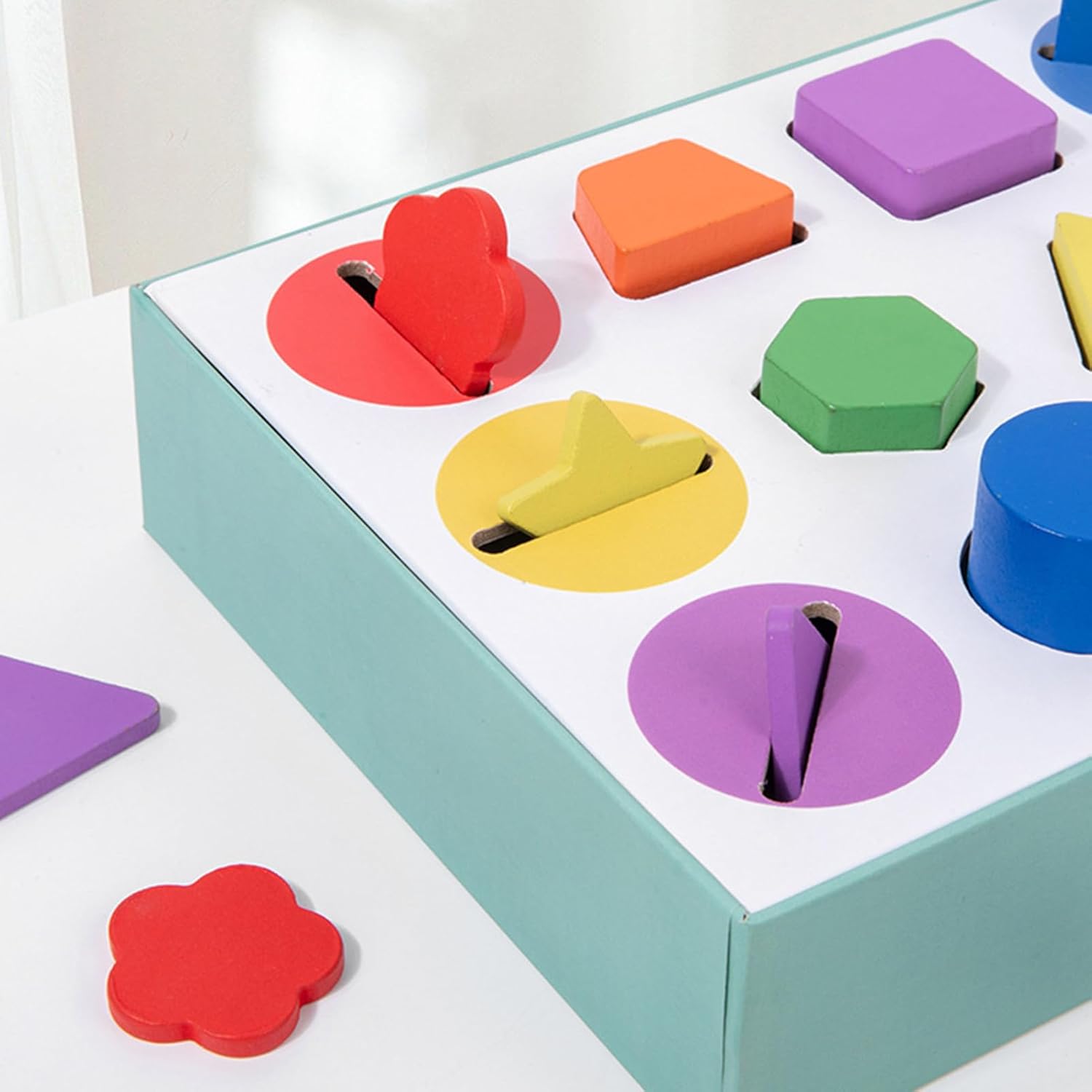 Pratica soluzione regalo: il classico gioco di classificazione delle forme in legno è un regalo fantastico per ogni occasione, che si tratti di Pasqua, Festa dei bambini, Capodanno o Natale. Supporta lo sviluppo cognitivo. Giocattolo per lo sviluppo: Supporta il naturale miglioramento del riconoscimento della forma, delle capacità motorie, della logica deduttiva, della precisa coordinazione dei movimenti e dell'analisi sistematica dei problemi attraverso l'apprendimento adatto all'età Promozione della percezione del colore: È stato dimostrato che il gioco di classificazione in legno migliora la discriminazione dei colori attraverso il design dei colori ad alto contrasto e supporta lo sviluppo visivo Promuove la partecipazione: Giocare con il selezionatore di forme in legno incoraggia l'interazione e lo scambio tra genitori e figli. Offre un modo divertente e gratificante per rafforzare le relazioni familiari e rafforzare i legami. Sicuro per i bambini: realizzato in buon legno, questo giocattolo di smistamento dalla forma robusta garantisce un divertimento senza fine senza spigoli vivi o rischio di lesioni alle mani dei più piccoli