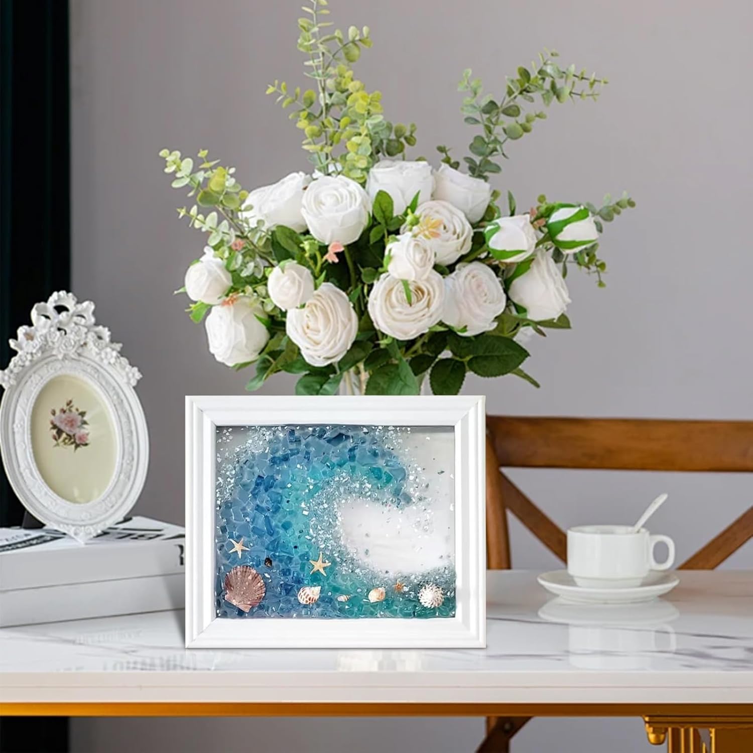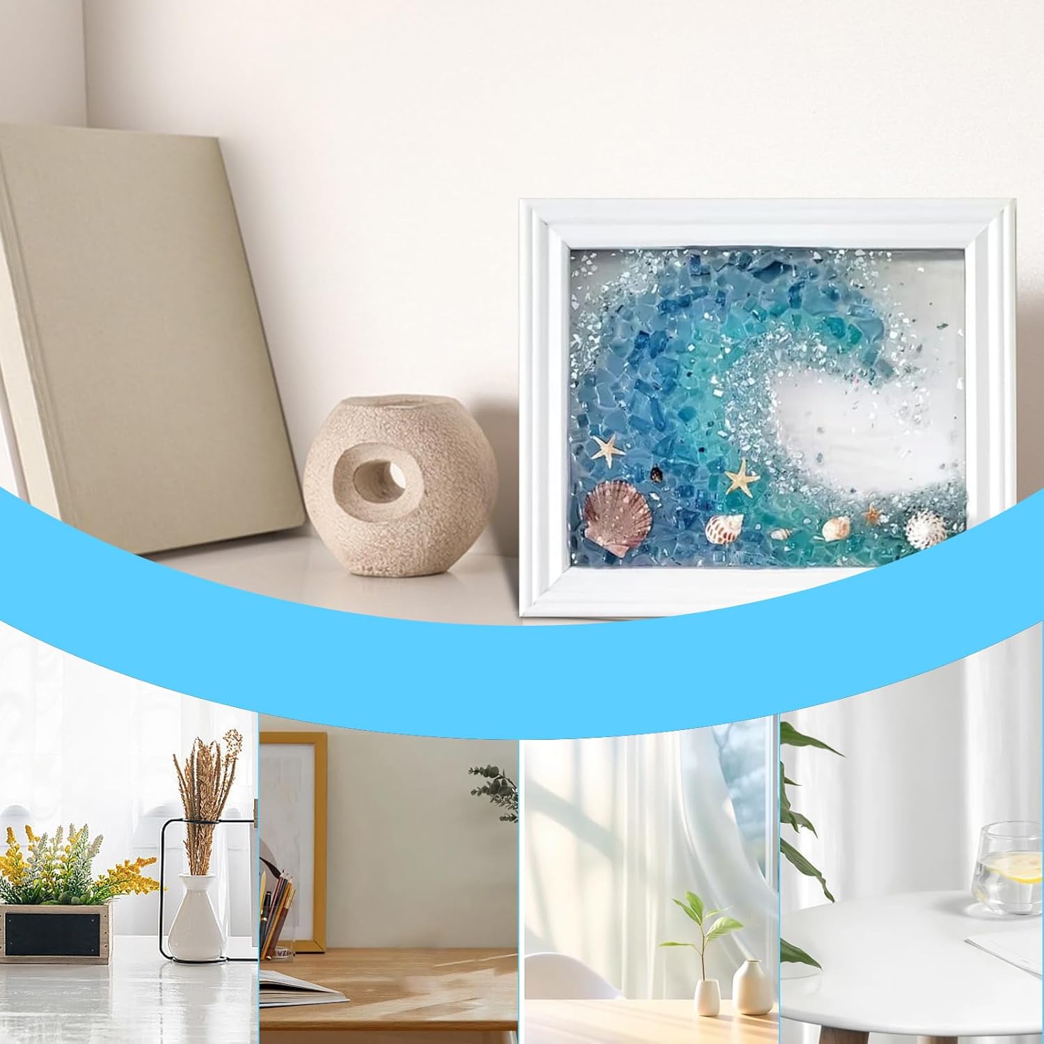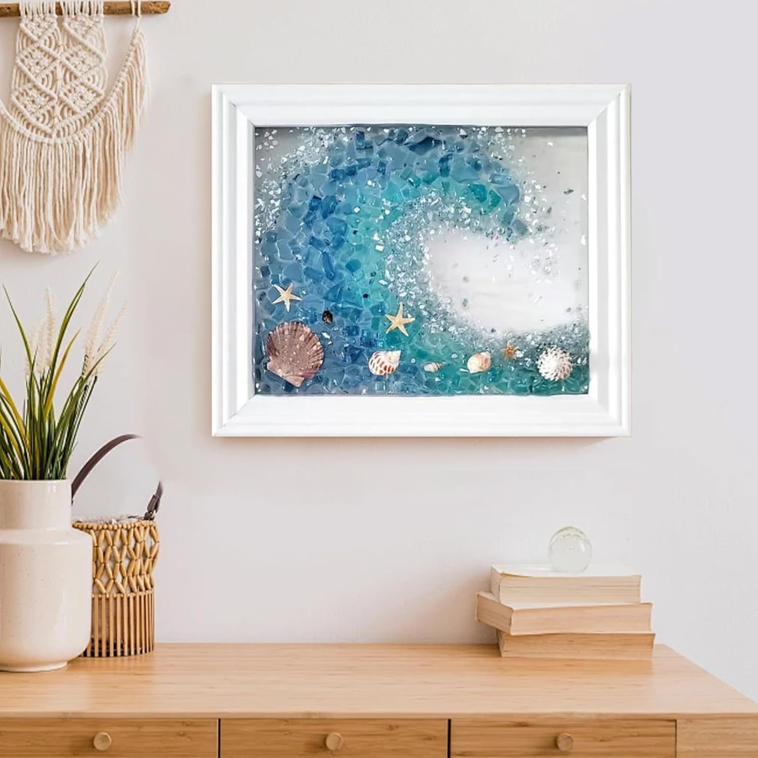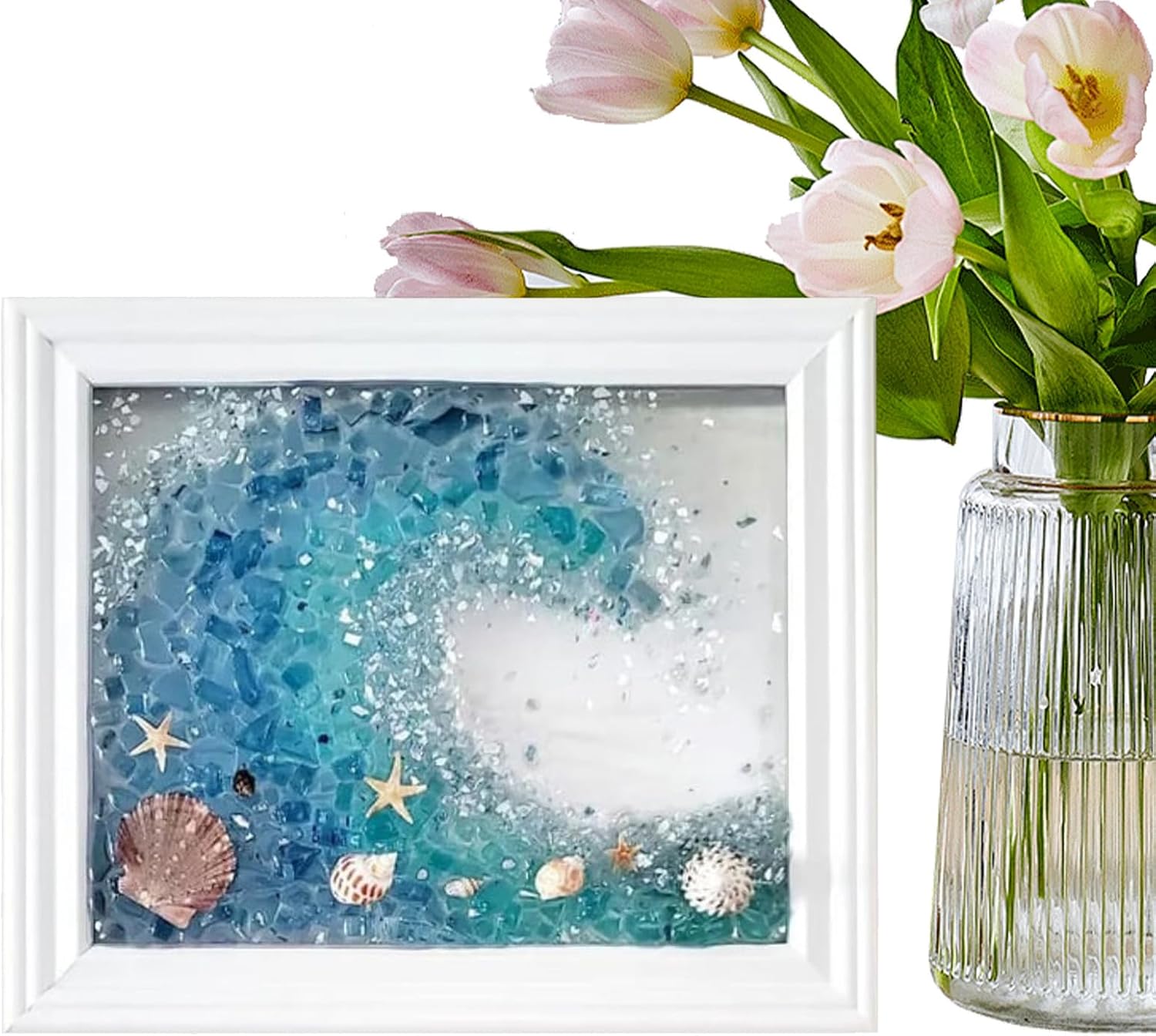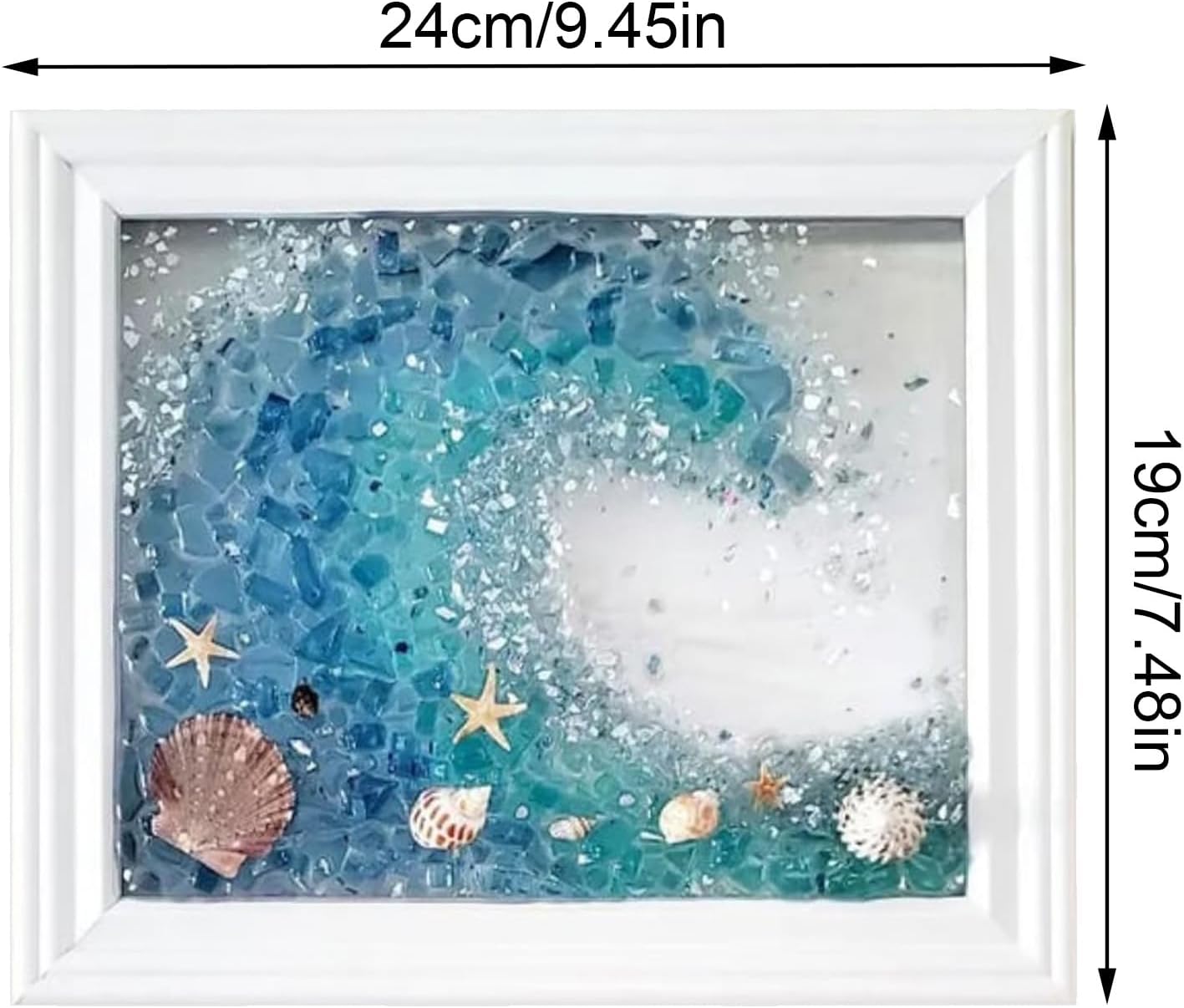 Artigianato meticoloso: la più bella combinazione di vetro di mare e la lavorazione meticolosa dell'artista offre un'atmosfera artistica tridimensionale e crea un'esperienza coinvolgente. Accessori artigianali perfetti: questo set di arte da parete in vetro marino è lo strumento perfetto per coloro che sono nuovi nell'artigianato o vogliono espandere le proprie abilità. Con istruzioni passo passo e video di istruzioni esperti, chiunque può assemblare questo bellissimo pezzo. Contenuto della confezione: immergiti nel mondo dell'arte murale in vetro di mare con questo kit completo, che include un manuale di istruzioni, un agitatore, un bicchiere, guanti, resina, indurente, conchiglie, vetro di mare, frammenti di vetro e una cornice bianca con dimensioni di circa 24 x 19 cm. 9,45 x 7,48 pollici Decorazione da parete creativa: mostra i tuoi ricordi più belli con questa cornice per foto dell'amicizia in vetro marino. Ogni pezzo di vetro marino ha la sua storia e ricordi distintivi, creando una presentazione unica e unica per la tua casa. Ottima scelta per gli amici: delizia tua madre, partner o sorella con questa splendida arte murale in vetro marino. Un ottimo regalo di compleanno o di Natale che aggiungerà felicità e gioia a qualsiasi arredamento.