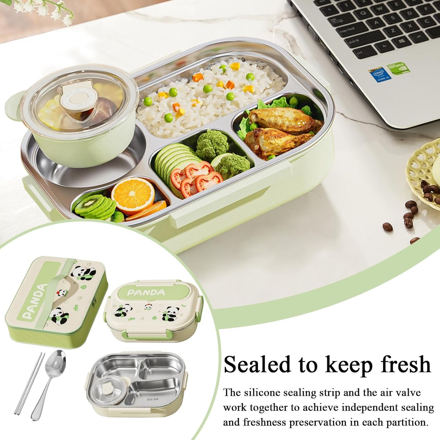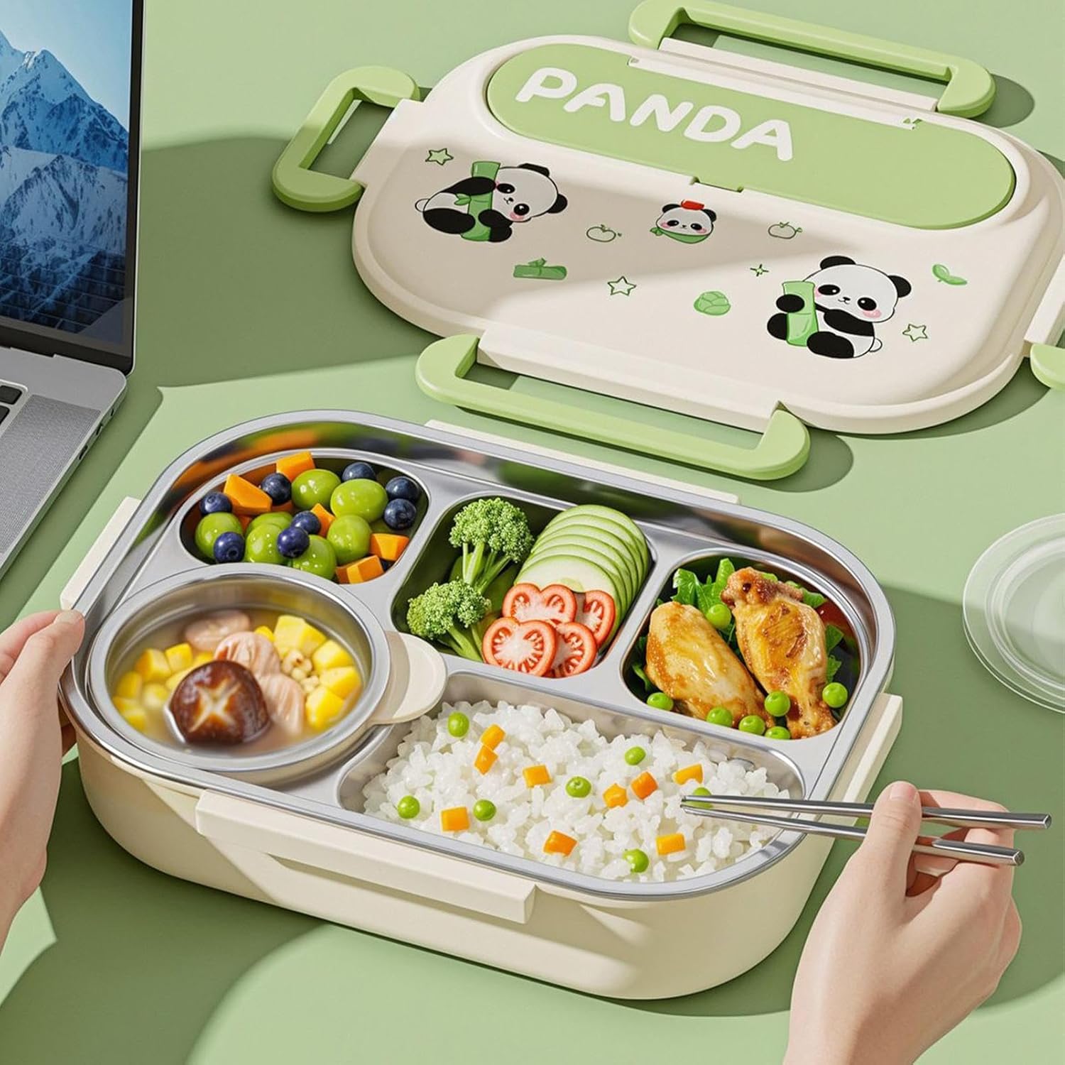 Gestione efficiente del cibo: progettato per famiglie, studenti e professionisti, il contenitore per il pranzo in quattro parti consente una conservazione equilibrata, evita la miscelazione di aromi e integra una ciotola separata per una preparazione senza sforzo A prova di perdite e ermetica: grazie all'innovativa tecnologia di conservazione della freschezza con guarnizioni in silicone e struttura ermetica, questo cibo protegge in modo affidabile da perdite o perdite di qualità durante i viaggi pendolari o all'aperto grazie a soluzioni di conservazione antiossidanti A tenuta stagna e facile da usare: con meccanismo di apertura a pressione leggero e chiusura a scatto sicura, garantisce una facile apertura/chiusura a mano e tenuta a tenuta stagna nell'uso quotidiano per tutte le età con prestazioni affidabili Accessori per il cibo da viaggio: l'innovativo set dispone di un sistema di archiviazione integrato per posate con cucchiai e bacchette, ideale per pendolari o viaggi senza bisogno di cercare utensili Pratica preparazione del cibo: il contenitore portatile in acciaio inox consente una preparazione efficiente del pranzo con un design rimovibile per un riscaldamento rapido. Realizzato con materiali di qualità alimentare, mantiene la freschezza e la sicurezza dei vostri pasti durante il trasporto e la conservazione