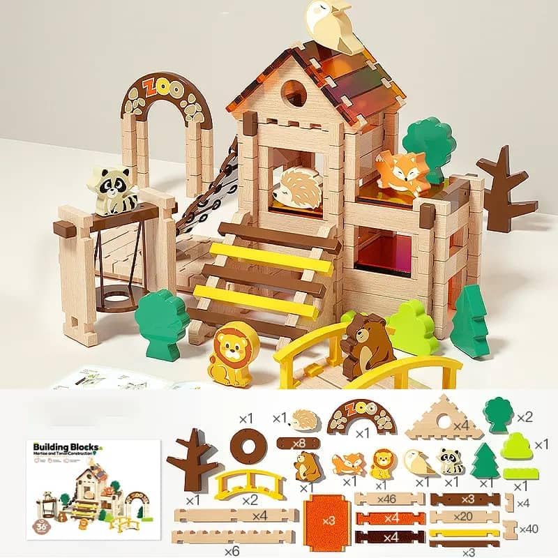 Set di gioco: set di mattoncini da costruzione in legno di alta qualità con tema zoo, ideale per giocare e imparare creativamente PROMUOVE LO SVILUPPO: promuove le capacità motorie, il pensiero spaziale e la capacità creativa nei bambini Materiale: realizzato in legno di alta qualità, robusto e durevole per anni di divertimento Versatilità: diversi blocchi di costruzione consentono diversi scenari e costruzioni dello zoo Età consigliata: adatto per bambini dai 3 anni in su, perfetto per giocare e scoprire insieme