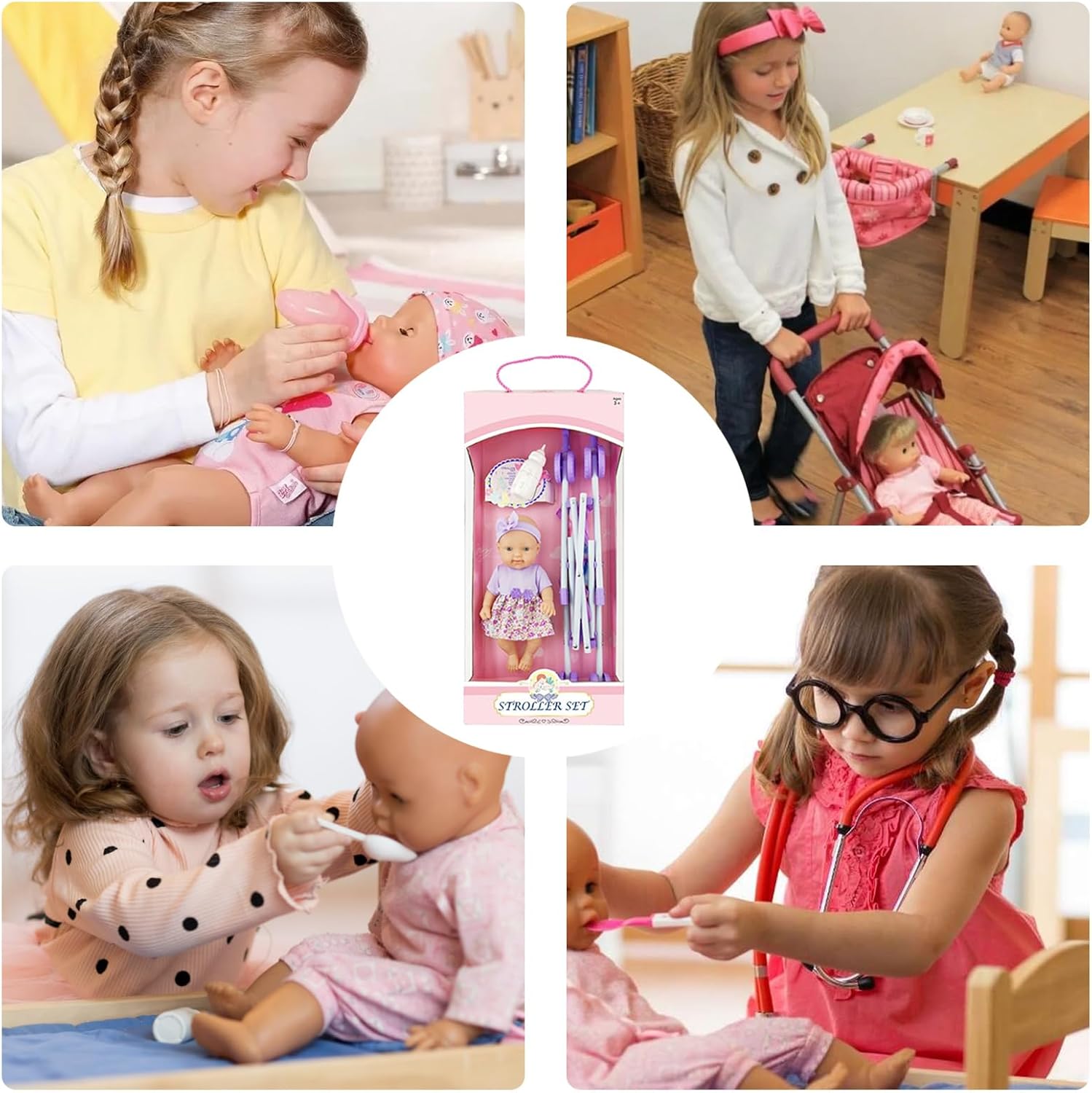 Sicurezza per i bambini: il design della cintura di sicurezza del nostro giocattolo per carrozzina offre ai bambini la massima sicurezza, mentre il design unico impedisce lo slittamento, il che porta a un'esperienza di gioco senza preoccupazioni e piacevole per i tuoi bambini Promuovere la cura: il set completo del nostro giocattolo per carrozzina include una bambola vivida, una bottiglia e accessori per passeggini per stimolare l'immaginazione dei bambini e sviluppare le loro capacità di cura Facile da piegare: questo giocattolo per passeggino è progettato per il comfort e può essere portato all'aperto o in luoghi con spazio limitato. Si piega facilmente e riduce lo spazio di archiviazione Scorrimento sicuro: concedete al vostro bambino un comodo e sicuro spingere il nostro giocattolo per carrozzina delle bambole. Il manico morbido del giocattolo garantisce una sensazione confortevole, mentre il design ergonomico garantisce una manovra facile e senza sforzo, ideale per i bambini fantasiosi Scelta regalo premurosa: sorprendi il tuo bambino con il nostro giocattolo per passeggino, la scelta eccellente per regali di compleanno, festa o festival. Questo adorabile e interattivo giocattolo è adatto per ragazze e bambini dai 3 anni in su