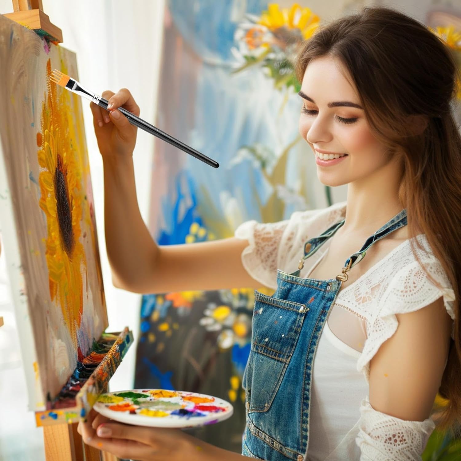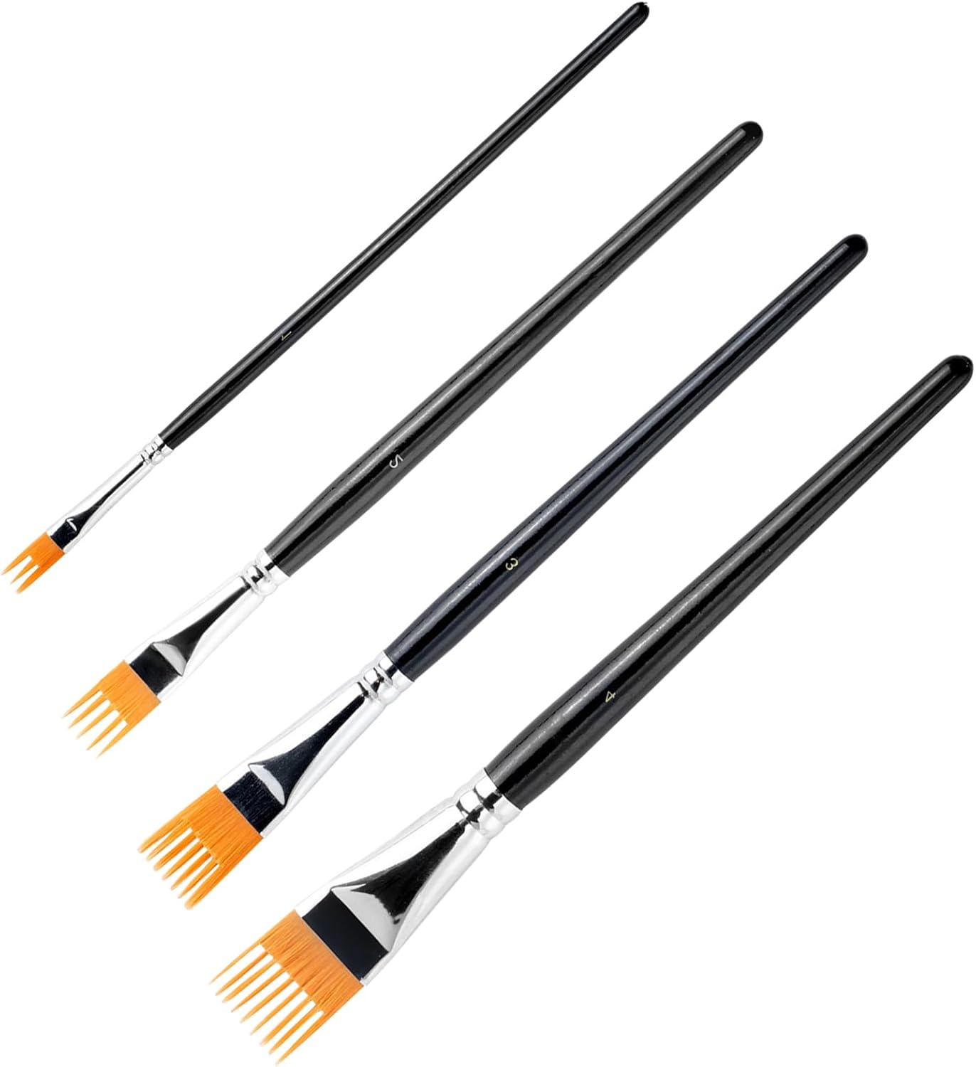 Multiuso: con quattro larghezze distinte di pennello, questi pennelli consentono di sperimentare gradienti e texture con un utilizzo versatile del disegno. Ideale per opere d'arte dettagliate o per aggiungere profondità in composizioni più grandi. Impugnatura che riduce la fatica: l'impugnatura ergonomica del pennello con la sua forma curva e il rivestimento antiscivolo riduce sensibilmente l'affaticamento della mano durante lunghe sessioni di pittura. Ciò garantisce maggiore comfort e controllo durante la creazione di opere d'arte o la pratica di tecniche di pittura. Opere d'arte di precisione: questi pennelli consentono una distribuzione uniforme del colore e coprono le superfici in modo omogeneo, realizzando anche i dettagli più fini e la struttura accurata del pettine. Ideale per progetti artistici esigenti che richiedono una finitura professionale. Performance di lunga durata: questi pennelli artistici sono realizzati con un composto solido, che favorisce un'asciugatura rapida e funzioni di pulizia facili. Ciò consente di massimizzare i benefici riutilizzabili a lungo termine in progetti creativi estesi. Le prestazioni affidabili anche in caso di uso intensivo rendono i pennelli ideali per lunghe sessioni di pittura. La costruzione durevole garantisce risultati duraturi. Struttura stabile: le fibre sintetiche flessibili consentono una facile assorbimento del colore e una maggiore stabilità della forma, consentendo una pittura senza cuciture e dettagli precisi senza perdita di forma anche in caso di uso prolungato.