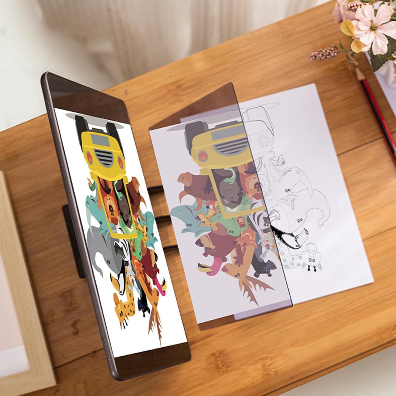 Ampia gamma di applicazioni: supporta l'apprendimento creativo grazie alla compatibilità universale con i dispositivi di disegno, ideale per giovani studenti così come esperti nella realizzazione di progetti Disegnare ovunque: utilizza la luce naturale per la proiezione ottica portatile. Garantisce un utilizzo facile e adattabile ovunque l'ispirazione colpisca e si sviluppano idee spontanee. Mobilità senza sforzo: il tavolo da disegno compatto è progettato per piccole tasche. Offre una soluzione leggera e portatile che aumenta il comfort durante i viaggi e le attività all'aperto. Facilità di disegno: la tecnologia avanzata di proiezione della luce con sistema riflettente multistrato consente di disegnare senza problemi e promuove le abilità creative per gli utenti di tutti i livelli Qualità durevole: appositamente progettato per l'uso quotidiano con materiali a prova di bambino e costruzione arrotondata per prestazioni durature