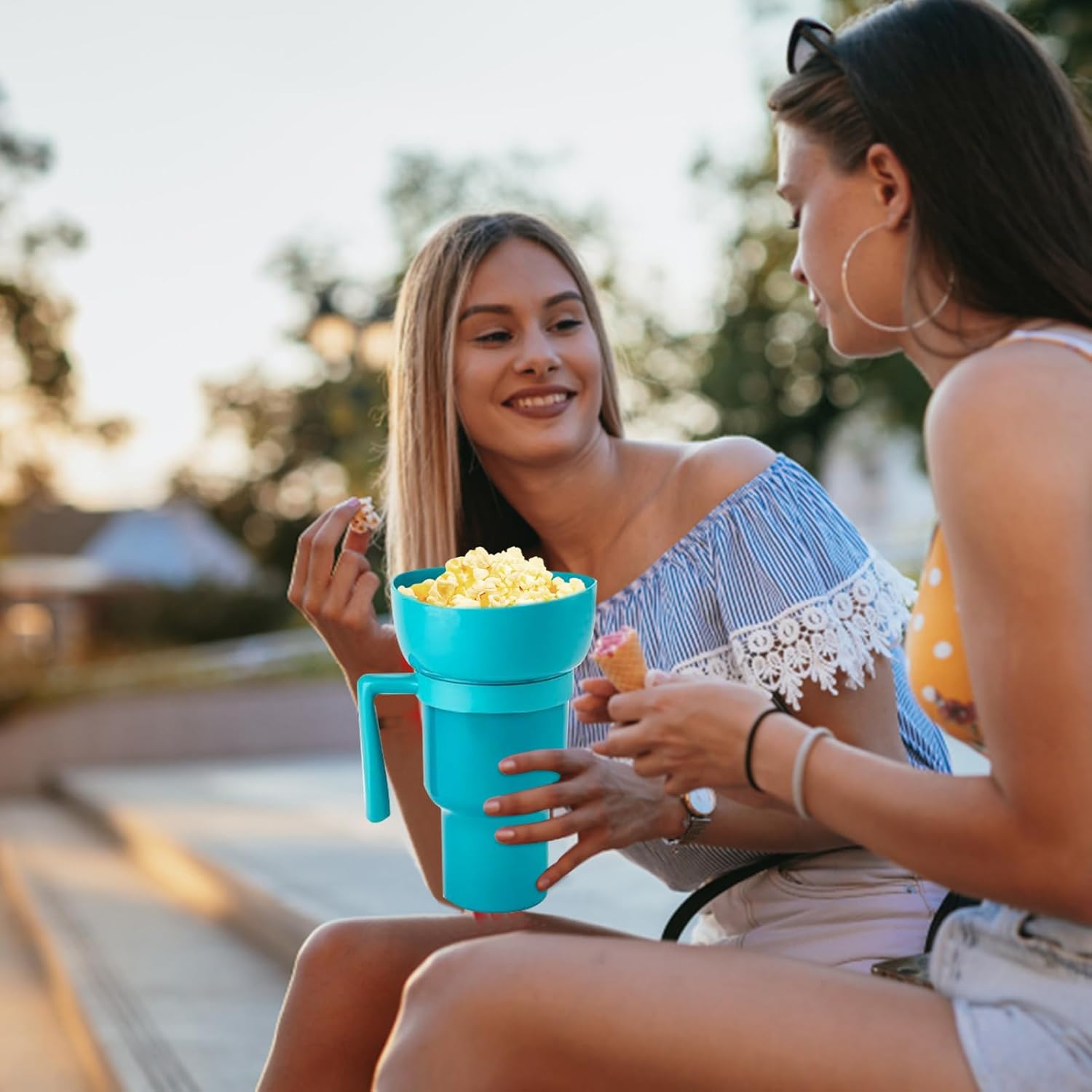 Bicchiere Smart Snack: questo design 2 in 1 è una soluzione creativa per le tue esigenze di snack e bevande. Puoi goderti i tuoi popcorn e la tua bevanda allo stesso tempo ed evitarti di portare due tazze o condividerle con altri. Sicuro e durevole: questa tazza è resistente ed ecologica. È resistente al calore e riutilizzabile, realizzato con materiali ABS di alta qualità. Puoi usare questa tazza per goderti i tuoi popcorn e le tue bevande senza deformazioni o danni. Facile da trasportare: questa tazza per snack da stadio è progettata per essere compatta e leggera in modo da poterla portare a qualsiasi evento. Mantiene i tuoi snack e bevande sicuri e gratuiti. VERSATILE E CONVENIENTE: con questo bicchiere da stadio puoi goderti i tuoi popcorn e uno spuntino in un home theater o portare con te il tuo trofeo in viaggio, al parco o al cinema. È un'ottima opzione per ogni occasione. Cellulare da usare: con questa tazza da stadio potrai bere la tua bevanda preferita sgranocchiando deliziosi popcorn. Puoi usare l'altra mano per utilizzare il tuo telefono cellulare o tifare per la tua squadra.