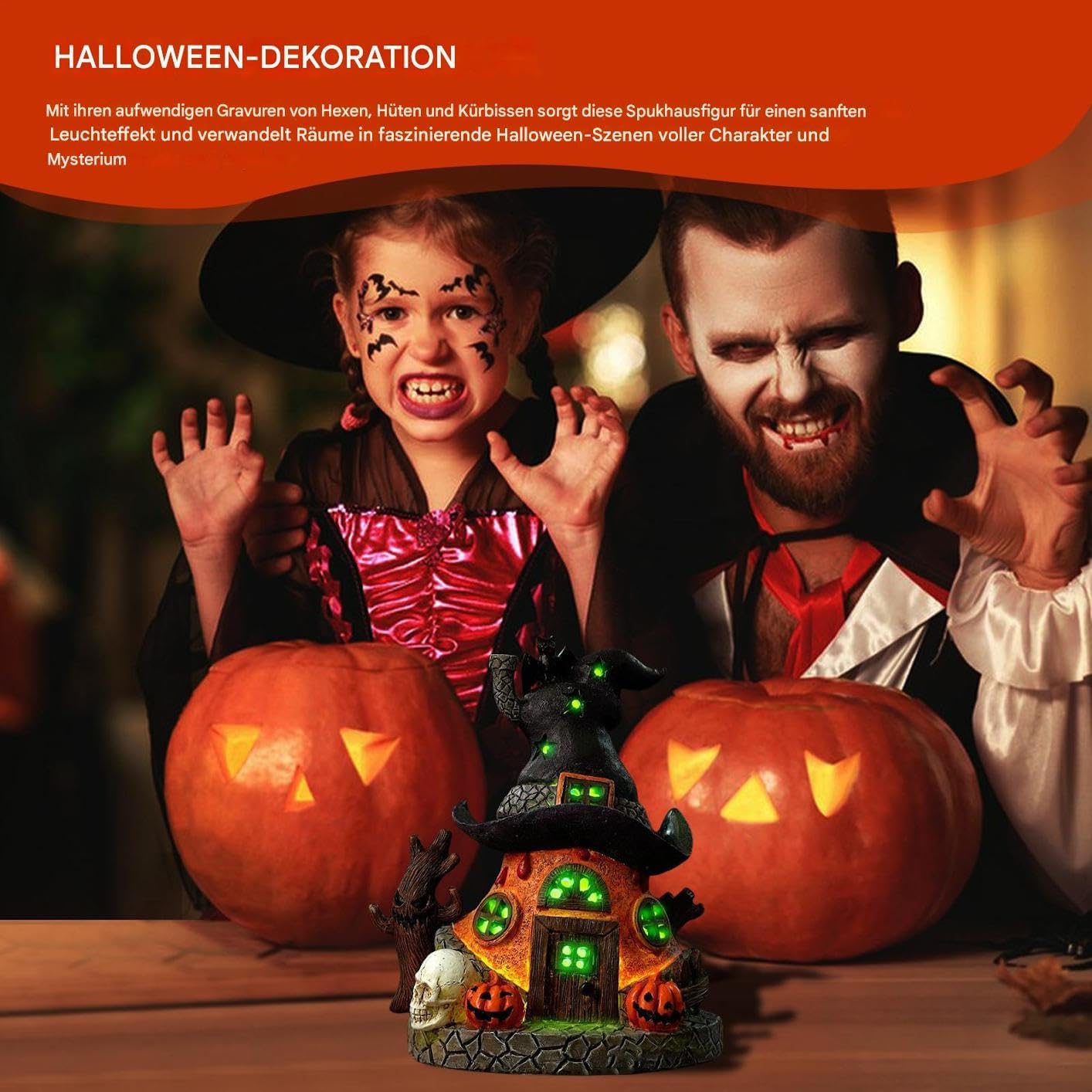 Comodo da utilizzare: pronto all'uso senza montaggio, vano batteria incluso per un maggiore comfort e facile da pulire con un solo panno umido per un piacere duraturo Ampia decorazione: questi personaggi della casa stregata possono essere appesi o appesi in modo flessibile e grazie alla loro combinazione sono ideali per l'ingresso, la decorazione della finestra o come decorazione per feste, per creare immediatamente una profondità visiva dinamica e accattivante in qualsiasi ambiente Materiale resistente: la robusta struttura in resina con base solida e proprietà resistenti alle intemperie garantisce un divertimento spaventoso in qualsiasi ambiente in qualsiasi condizione atmosferica Decorazione ambiente: goditi la luce delicata della zucca a LED, che può essere utilizzata come calda luce notturna all'interno e all'esterno e crea un'atmosfera festosa invitante con un aspetto elegante Atmosfera mistica di Halloween: questa statuetta della casa delle streghe con incisioni dettagliate di streghe, cappelli e zucche diffonde un bagliore delicato e trasforma qualsiasi stanza in un'accattivante scena di Halloween piena di misticismo e carattere unico, ideale per una decorazione horror di successo
