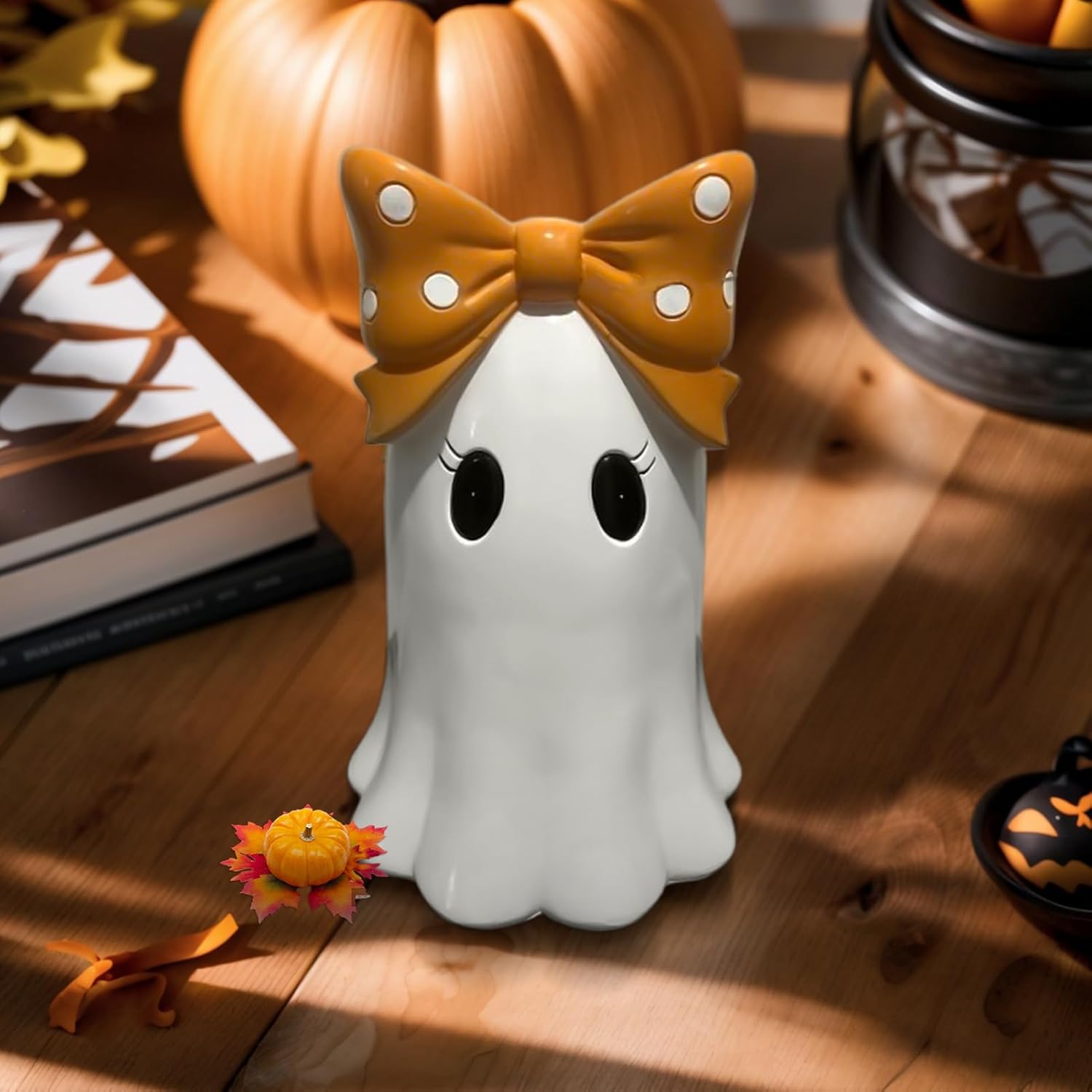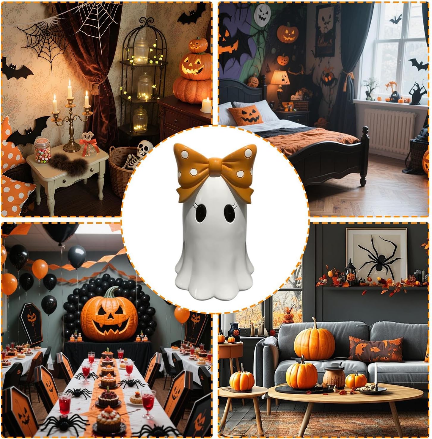 Qualità affidabile: realizzato in resina solida, questo design infrangibile e stabile garantisce un uso duraturo e allo stesso tempo resistenza all'usura per un uso ripetuto Atmosfera di Halloween: questa figura fantasma con una ragazza fantasma e fiocco a pois arancione incarna il tipico fascino di Halloween e dona alle composizioni stagionali un festivo Eleganza lavorata a mano: ogni personaggio fantasma offre una consistenza liscia come la seta grazie all'accurata lavorazione a mano, senza imperfezioni e presenta incisioni magistralmente realizzate. Struttura di base sicura: questa statuetta fantasma integra la stabilità di inclinazione grazie al suo fondo ponderato ben progettato, fornisce un supporto robusto per un posizionamento sicuro sulla scrivania e mantiene l'equilibrio in diversi ambienti Posizionamento adattabile: ideale per le aree della scrivania con integrazione armoniosa in diversi stili di arredamento, ideale per davanzali o vetrine, garantisce versatile compatibilità delle scene per esigenze di decorazione personalizzate