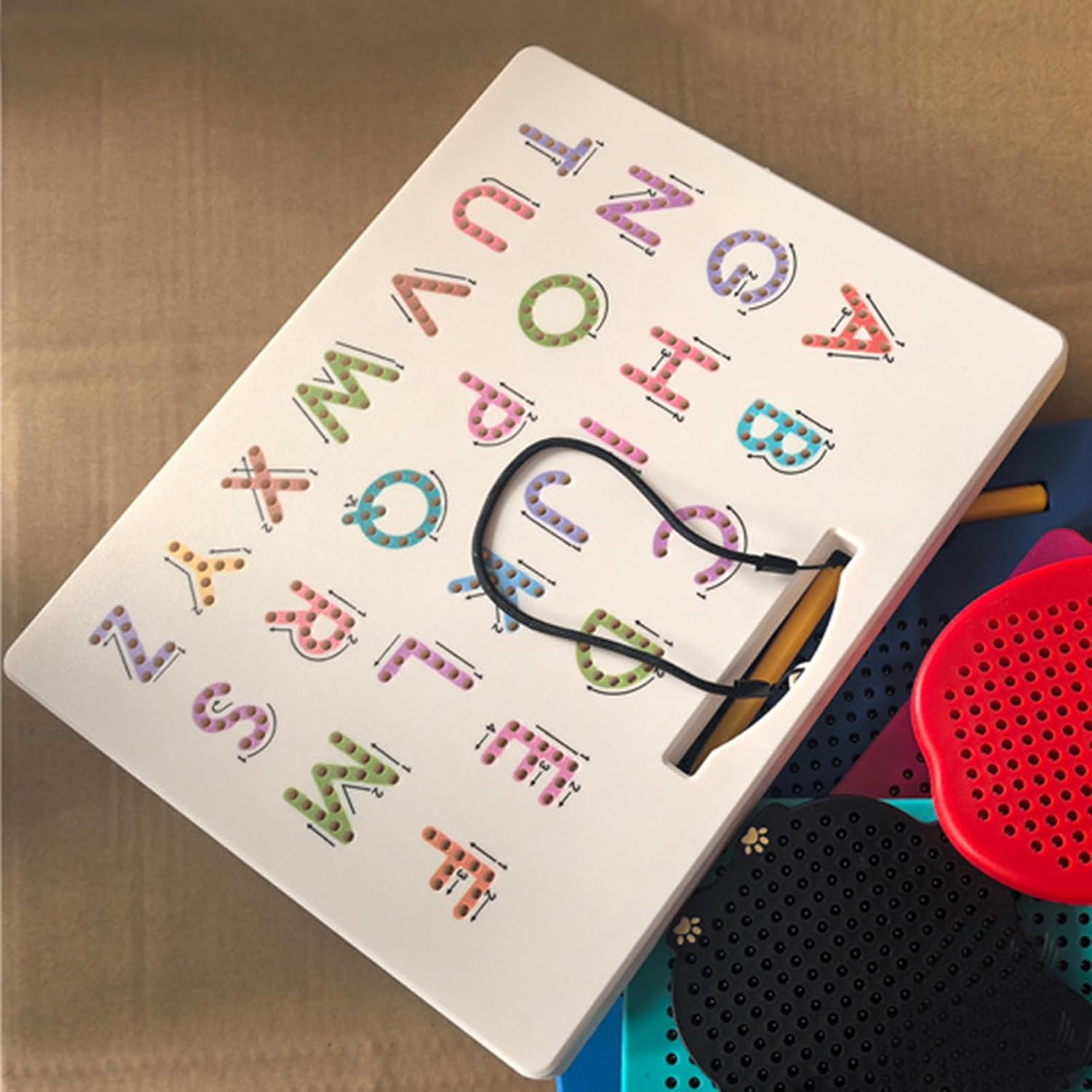 Migliorare le capacità di scrittura: con una lavagna a doppia faccia per una migliore scrittura e una guida per formare correttamente le lettere; la penna magnetica sviluppa giocosamente la memoria muscolare per un miglioramento uniforme. Giocattolo educativo ideale: promuove lo sviluppo cognitivo attraverso l'impiego pratico delle lettere e serve come regalo significativo per i bambini che fanno importanti progressi di apprendimento con questo giocattolo dell'alfabeto Materiali di alta qualità: speciale materiale durevole con superficie resistente all'abrasione e bordi a prova di bambino, mantiene la forma originale anche dopo un uso intensivo a lungo termine Esperienza di apprendimento giocosa: combina magneti con attività di tracciamento per un'esperienza di apprendimento divertente, incoraggia l'esplorazione attiva e trasforma l'istruzione in un gioco coinvolgente per giovani studenti. Design intelligente: la penna magnetica è fissata saldamente alla tavola, favorisce la pratica continua e garantisce una facile conservazione e accesso per un allenamento di apprendimento indisturbato.