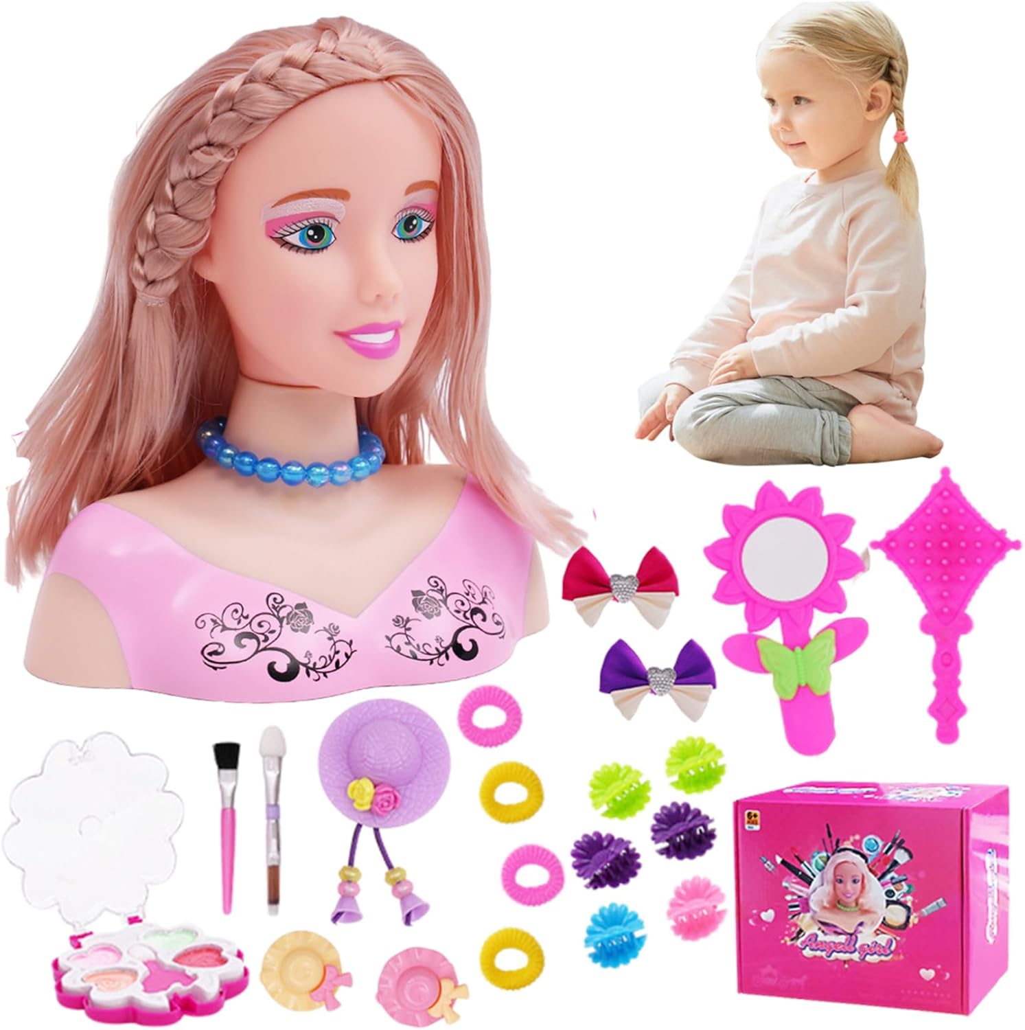 Avventura da salone: dà vita al mondo del parrucchiere con l'allenamento creativo delle acconciature e la scoperta giocosa per tutte le età Divertimento per lo styling dei bambini: la testa della bambola con capelli biondo dorato offre ore di divertimento attraverso pettinatura, intrecciatura e torsione. Le dimensioni compatte consentono molteplici possibilità di acconciatura e incoraggiano il gioco fantasioso con la bambola per lo styling dei bambini Set completo di styling: contiene 31 pezzi con asciugacapelli, ferro arricciacapelli e accessori per il gioco creativo e diverse idee di acconciatura, promuove possibilità di styling fantasiose Divertimento senza limitazioni: la robusta testa del giocattolo ABS inodore senza bordi taglienti garantisce un gioco sicuro e coinvolgente. Con realistici suoni di asciugacapelli e flusso d'aria per un divertimento creativo durante la pettinatura. Regalo raffinato: combina l'esercizio di cura dei capelli con l'intrattenimento. Stimola la creatività e la collaborazione sociale attraverso giochi di fantasia. Ideale come regalo per feste come compleanni o Natale.