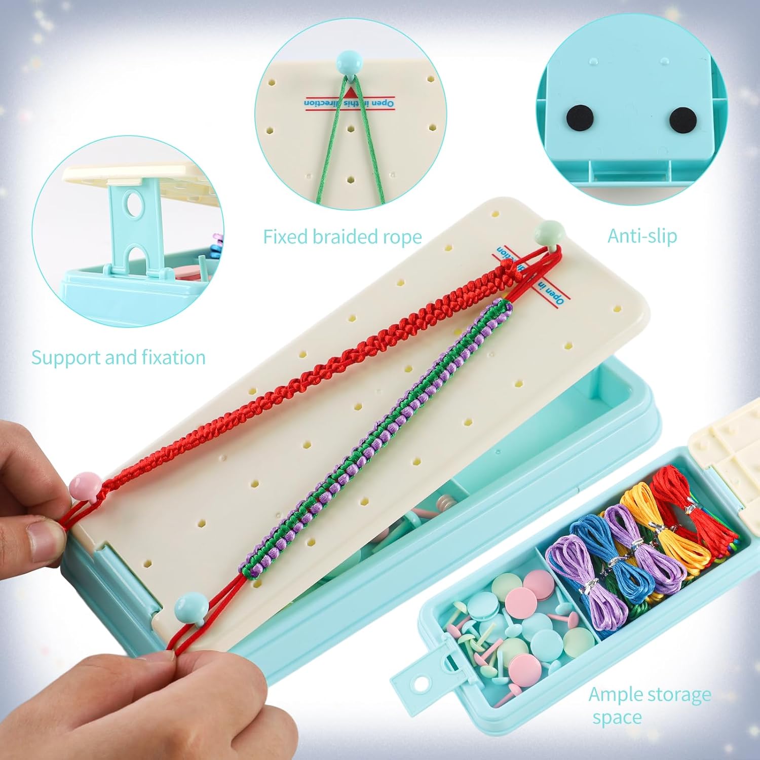 💗【FRIENDSHIP BRACELET KIT FAI DA TE 】Puoi Realizzare I Tuoi Braccialetti Usando Il Braccialetti Amicizia Bambini ,Divertiti A Essere Creativo Con I Tuoi Amici E A Progettare Fantastici Braccialetti Che Adorerai. 💗【LISTA IMBALLAGGIO】Forniremo 12 Linee, Un Adesivo,Insieme A Perline Con Lettere, Bottoni, Inoltre, è Fornito Con Una Guida Passo-Passo Che Combina Chiaramente Immagini E Testo Per Aiutarti A Iniziare Rapidamente. " 💗【FACILE DA FARE】Nessun Nastro, Spilli, O Mani Extra Required.Il Design Unico Tiene Fermamente I Fili Al Loro Posto. Il Produttore Di Braccialetti Nasconde Uno Scomparto Segreto Per Conservare Tutti I Tuoi Fili. 💗【MATERIALI DI ALTA QUALITÀ】The Braccialetti Amicizia Bambini Packaging Box Is Made Of High-Quality Abs Material And Contains All Accessories. It Is Beautiful And Easy To Store And Carry. 💗【REGALO IDEALE PER I BAMBINI】Kit Per La Realizzazione Di Braccialetti Dell'Amicizia è Un Grande Regalo Per Ragazze E Ragazzi Dai 6 Anni In Su, Anche Gli Adulti Possono Giocarci E Riportare Alla Mente I Ricordi Dell'Infanzia.
