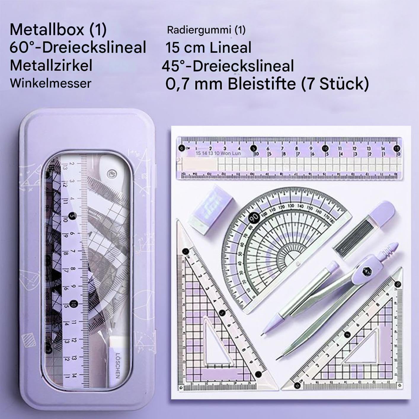 Design creativo per i giovani: il set di geometria presenta simpatici motivi geometrici insieme a un tema trasparente bicolore e crea un effetto di colore alla moda che risveglia l'interesse degli adolescenti e si adatta alle loro preferenze Design adatto agli occhi: questo set di geometria riduce efficacemente l'affaticamento degli occhi grazie a una superficie antiriflesso e una struttura ben studiata, consentendo di lavorare concentrandosi su compiti scolastici o progetti creativi senza fastidiosi riflessi di luce Compagno di matematica affidabile: gli strumenti con marcature precise soddisfano tutti i requisiti di base della geometria e aiutano gli studenti a svolgere esercizi di disegno durante le lezioni di matematica o l'apprendimento indipendente. Comodo stoccaggio: questo set di utensili per geometria offre una soluzione di archiviazione ben studiata con scomparti chiaramente suddivisi che trattiene saldamente un set di attrezzi da 8 pezzi e previene la perdita di utensili. Tutti gli utensili rimangono organizzati e a portata di mano, sia in tasca che nel cassetto. Ideale per studenti e hobbisti che hanno sempre bisogno dei loro strumenti di disegno ordinati e rapidamente accessibili, perfetti per progetti o insegnamenti. Regalo ideale per studenti: questo set di disegni geometrici offre una soluzione di cancelleria completa che supporta gli studenti delle classi 7-12 con strumenti precisi per il lavoro di geometria. Il design accattivante lo rende sia uno strumento funzionale che un accessorio elegante, ideale come regalo per l'inizio della scuola.