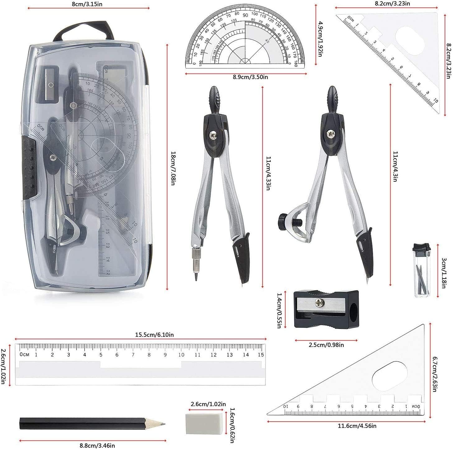 Gli Achievers sono una necessità per ogni studente da usare a scuola o all'università. 10 Piece Geometry Set: Include righelli Goniometro Compass Matita Ricarica piombo Matita, gomma e scatola di immagazzinaggio. Adatto per la maggior parte degli stadi di studenti, insegnanti, ingegneri, designer, artisti, ecc. Questo set di bussole scolastiche soddisferà le tue esigenze di disegno del cerchio e dell'angolo di misurazione. Facile da trasportare: tutti gli articoli nella tuta sono perfettamente caricati nella scatola infrangibile. Tutto nel nostro set è di qualità premium per resistere alla prova del tempo.