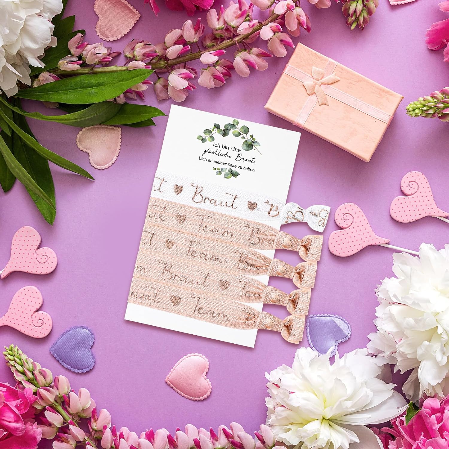 Caratteristiche: Indossare questo set di braccialetti per addio al nubilato del Team Braut non solo può aggiungere un'atmosfera romantica all'addio al nubilato e condividere momenti felici con gli amici, ma può anche essere usato come un piccolo regalo per parenti e amici. Con il suo design raffinato e materiali di alta qualità, questo set di accessori per addio al nubilato non solo può aggiungere un'atmosfera romantica all'addio al nubilato, ma anche ricordare alle persone i ricordi dei momenti felici con gli amici in futuro. Specifiche: Materiale: nylon, spandex Colore: come mostrato nell'immagine Dimensione: Lunghezza totale di ciascun braccialetto: 26 cm Scheda: 7,5 x 11 cm La confezione include: 1 braccialetto Braut 4 braccialetti Team Braut 1 scheda Suggerimenti: Si prega di consentire lievi errori di misurazione dovuti alla misurazione manuale. Il colore può variare leggermente a causa delle diverse visualizzazioni dello schermo.