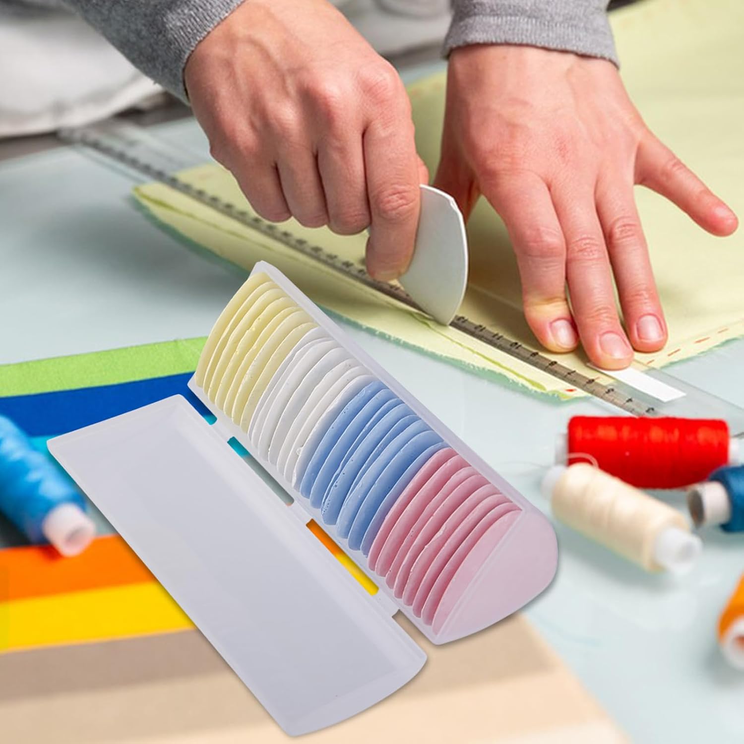 Marcatura di precisione senza sforzo: segna i tessuti con facilità e precisione senza preoccuparsi di rovinare il materiale. I nostri gessetti da sarto ti consentono di effettuare regolazioni, ricami o cuciture senza macchiare i tuoi capi Pratico e utile: sperimenta la precisione senza sforzo con il nostro gesso da sarto in quanto ti dà chiari segni di cucito sul tessuto, riducendo gli errori e portando molte comodità alle tue creazioni Tenuta migliorata: la forma triangolare e l'impugnatura ergonomica del nostro gesso da sarto consentono un disegno preciso, garantendo una cucitura accurata con una maggiore precisione Lavabile e affidabile: realizzato in gesso e calcare di alta qualità, il nostro gesso da sarto è lavabile, antiaderente alle mani e non si rompe facilmente. Goditi una marcatura precisa per cucito, trapuntatura e sartoria, con segni affidabili Ampiamente applicabile: il gesso da sarto è il compagno perfetto per gli appassionati di cucito e tessuti. Migliora la tua precisione durante trapuntatura, artigianato o sartoria con questo strumento versatile