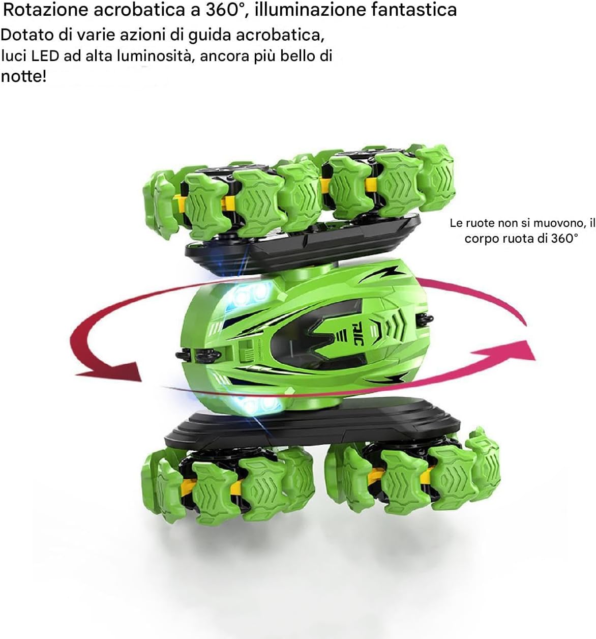 Sinimento dei gesti innovativi: l'auto RC di gesti non è come qualsiasi auto a telecomando che hai visto prima! Sperimenta il futuro con la sua tecnologia avanzata di rilevamento dei gesti che consente di controllare il veicolo con semplici gesti, fornendo un'esperienza di guida coinvolgente e innovativa Esecuzione acrobatica senza soluzione di continuità: dotata di capacità di rotazione e rotolo a 360 gradi, questa auto RC gesto accende l'immaginazione e la creatività, mentre esegue varie acrobazie per offrire un'esperienza elettrizzante di velocità e passione Performance eccellenti: dotato di trazione integrale e pneumatici ad alte prestazioni, questa auto RC gesto offre una manovrabilità senza pari, consentendo di eseguire acrobazie impressionanti su una varietà di terreni. Goditi un'esperienza stabile e flessibile usando come mai prima d'ora Uso di lunga durata: con il suo design robusto e resiliente, l'auto RC gesto è fatta per sopravvivere a normali e rotami di gioco, garantendo la longevità e la sicurezza del giocattolo per anni Divertimento senza sforzo per tutti: vantando un design semplice, questa auto RC gesto è l'ideale per i bambini di tutte le età, garantendo che sia gli appassionati di corse alle prime armi e esperti