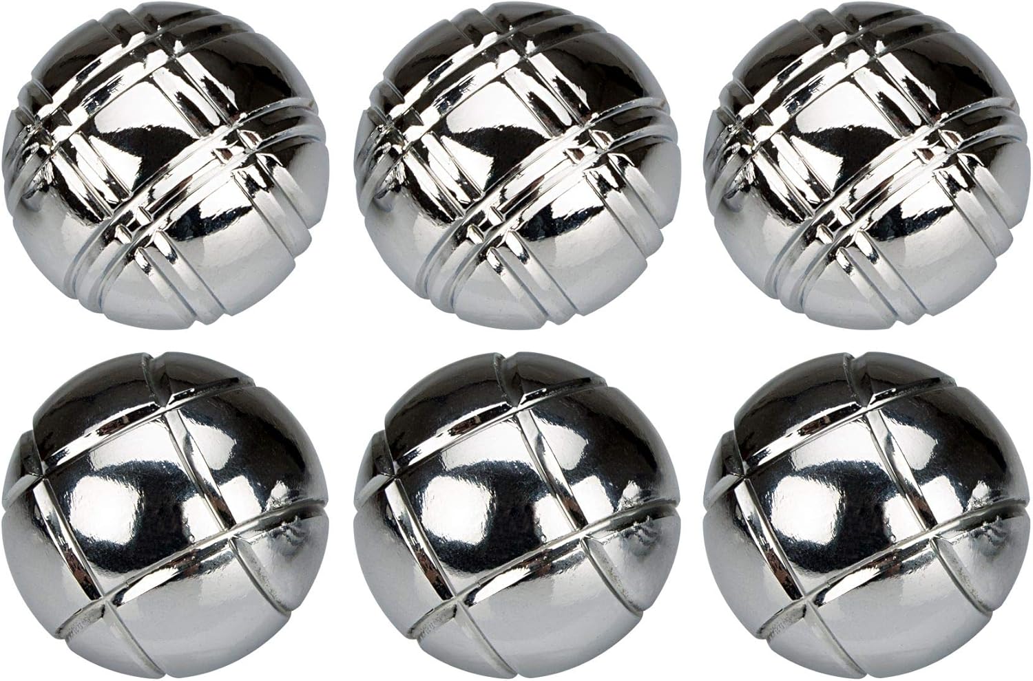 Sfere in acciaio cromato (diametro - 32,8 mm) Ma in legno naturale (diametro - 12,7 mm) Sfera circa" 62 grammi 3 diverse nervature Custodia in poliestere con distributore in plastica