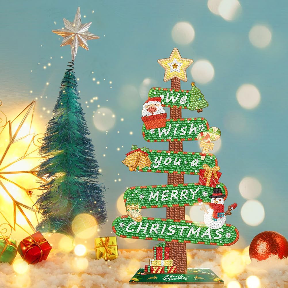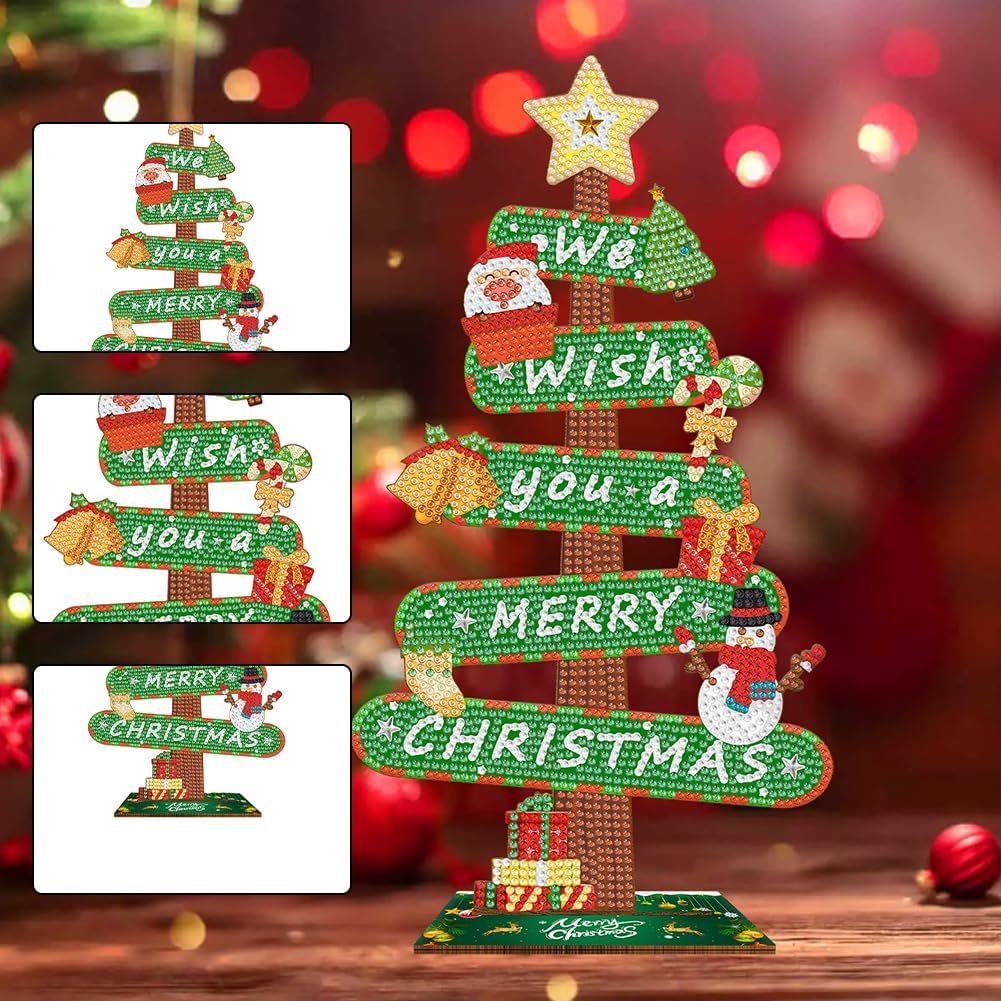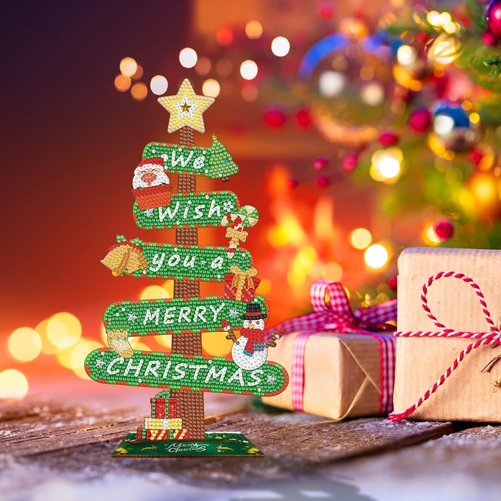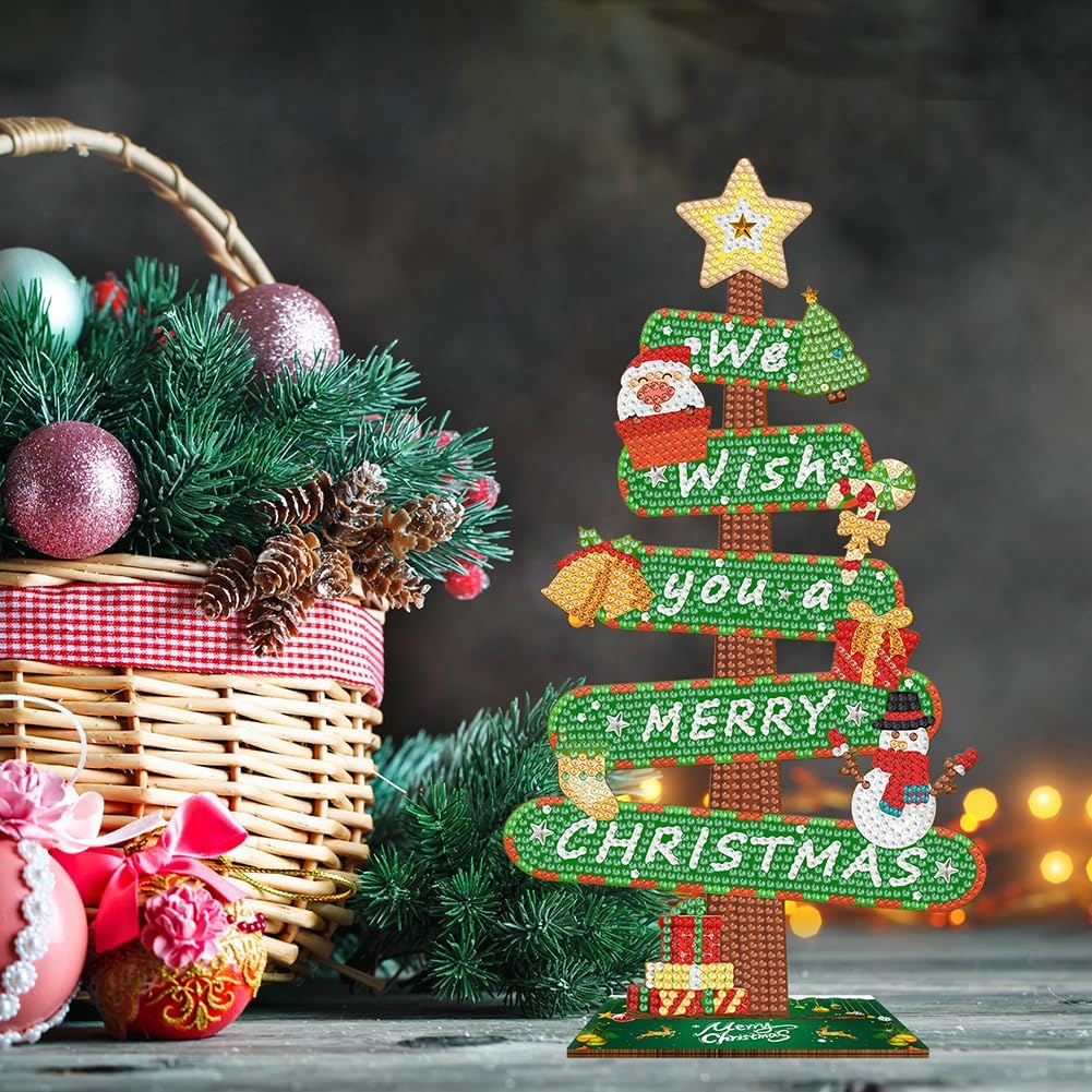 Cartello natalizio in legno a forma speciale, kit di ornamenti for desktop con pittura con diamanti, decorazioni for desktop con pittura con diamanti for ufficio domestico