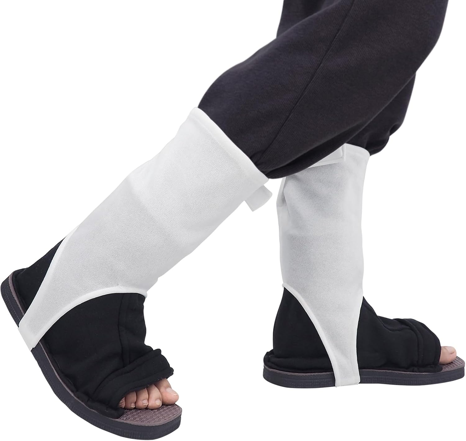 Ghette bianche per costume Cosplay Ninja 100% poliestere Circonferenza polpaccio regolabile tra 30 – 40 cm Lunghezza del bordo: circa 30 cm Vestibilità sicura sulla scarpa grazie all'ampio elastico