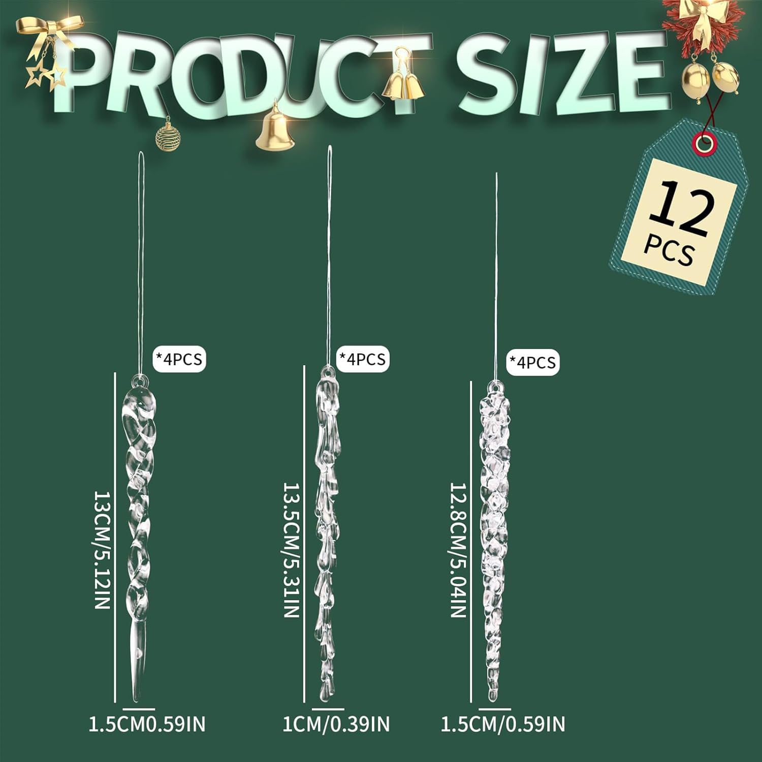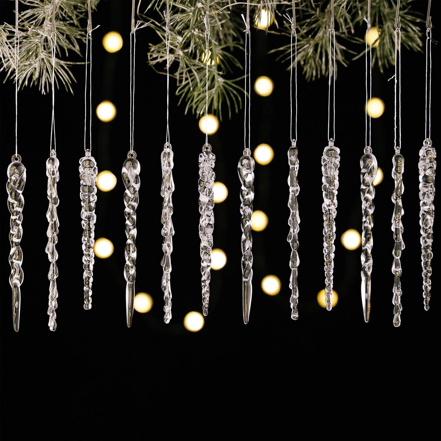 Decorazione durevole dei ghiaccioli: realizzati in materiale acrilico resistente agli urti, questi ornamenti dei ghiaccioli mantengono colori vivaci per molte stagioni e presentano superfici lisce per una maggiore sicurezza e una bellezza duratura. Arricchire l'immagine delle vacanze: con dodici decorazioni di ghiaccioli acrilici, puoi ottenere una copertura densa su grandi alberi, creando un'esperienza estetica ricca e accattivante per qualsiasi esposizione stagionale. Effetti di rifrazione della luce: ideali per la decorazione stagionale: i pendenti a forma di ghiacciolo sfaccettati riflettono i raggi luminosi attraverso la loro struttura superficiale cristallina e creano così un'accattivante illusione invernale. Design adatto ai rami: la sospensione ottimizzata con foro standard facilita il fissaggio alla maggior parte dei rami senza attrezzi e riduce notevolmente i tempi per le decorazioni natalizie. Posizionamento flessibile: grazie alla loro versatilità, questi oggetti decorativi a forma di ghiacciolo si adattano ad ambienti interni ed esterni e sottolineano il tocco artistico della vostra decorazione. Completano perfettamente gli alberi di Natale o migliorano l'attraente esposizione delle vetrine dei bar.
