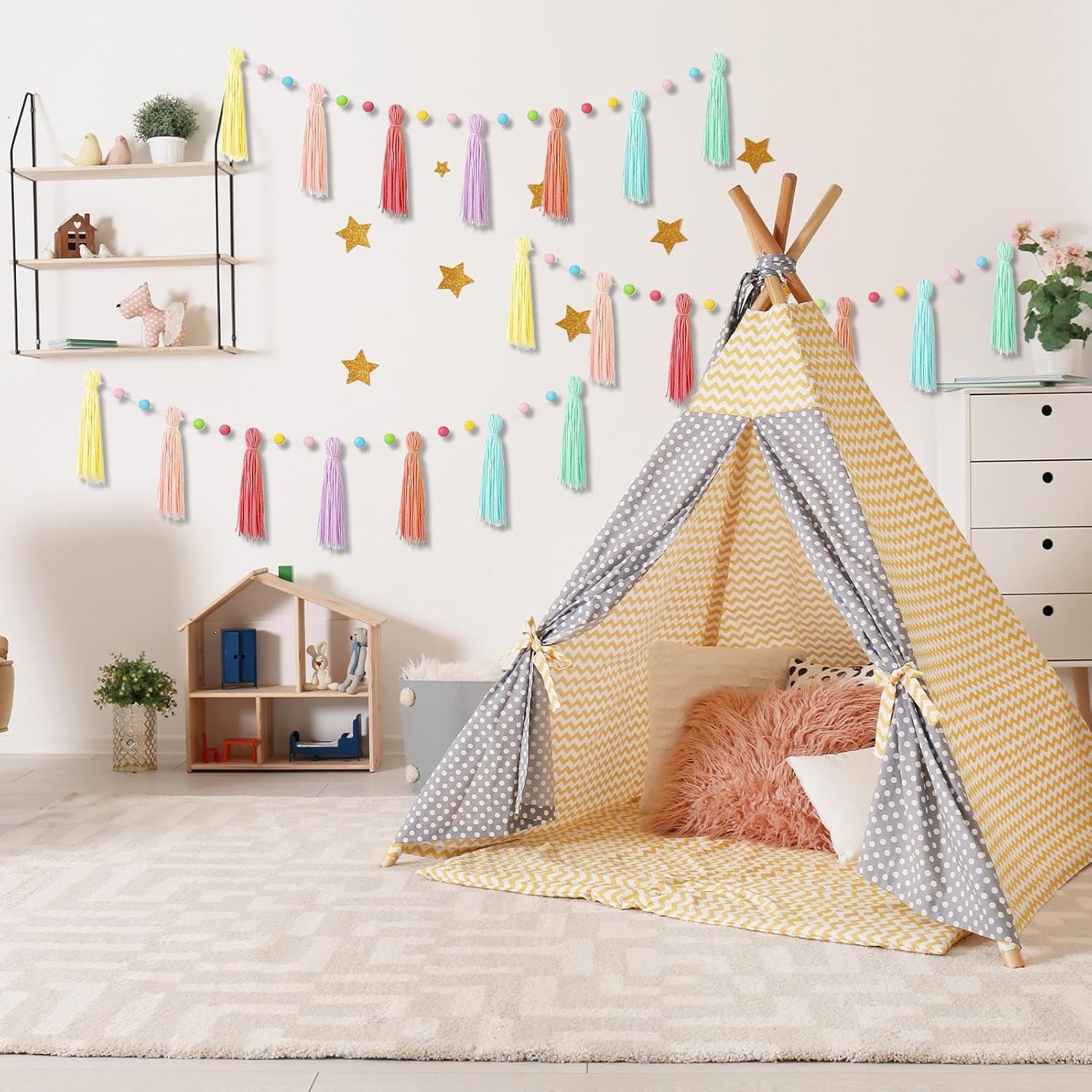 Decorazione Conveniente: Questa ghirlanda di nappe offre un set multiplo per stile coordinato in diversi spazi, soluzione ma elegante per abbellire case, locali o eventi speciali con un design bohémien senza Caratteristiche multifunzionali: La ghirlanda bohémien per aule serve come sfondo festoso e decorazione versatile, crea un'atmosfera allegra ed esalta le opzioni di posizionamento murale con i suoi vivaci colori festivi, perfetta per aule celebrazioni ed eventi stagionali Decorazione Vivace: La ghirlanda bohémien con perline in legno arricchisce qualsiasi ambiente con un tocco vibrante, perfezionando la decorazione domestica e creando un'atmosfera creativa per soggiorni, camere da letto o feste Stile Versatile senza Assemblaggio: Grazie alle multiple forme nel design, questa ghirlanda di nappe offre opzioni di styling versatile, personalizzabile facilmente per diverse occasioni come anniversari, feste prenatalizio o celebrazioni stagionali Ghirlanda di Nappe Sicura: Realizzata in cotone morbido e materiale solido privo di schegge, questa decorazione offre massima sicurezza per i bambini e si adatta con stile a camerette e feste, aggiungendo un tocco bohémien senza rischi durante l'utilizzo grazie alla sua composizione innocua e resistente