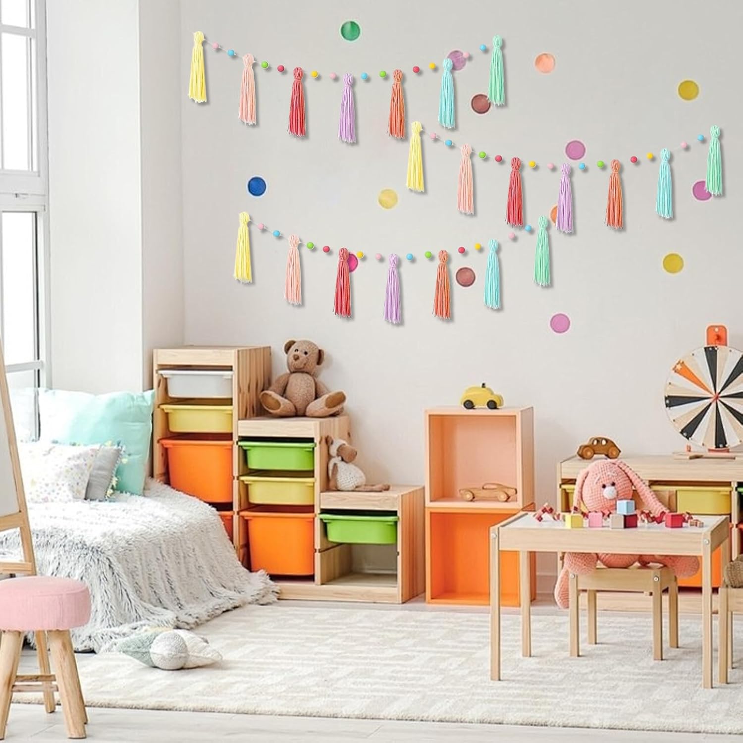 Impatto Estetico Unificato: Crea un'estetica unificata per multiple aree con le ghirlande di nappe, perfette per compleanni, festività e decorazioni stagionali, valorizzando l'appeal visivo in modo economico e raffinato Usi polivalenti: Con i suoi colori festosi, questa ghirlanda bohémien per aule aggiunge charme alle pareti offrendo un'atmosfera allegra e fungendo da sfondo per party o decorazione adattabile per aule feste ed eventi a tema con grande versatilità Upgrade per Spazi Creativi: La ghirlanda unisce perline in legno a colori vivaci per creare un'atmosfera artistica, rendendola un pezzo versatile per decorazioni in celebrazioni, sfondi fotografici o ambienti sereni Setup Rapido Senza Attrezzi: La decorazione di ghirlanda di nappe permette allestimenti vibranti per celebrazioni senza bisogno di strumenti, risparmiando e garantendo un look curato, perfetta per compleanni, matrimoni o festività Nappe Sicure per Bambini: Progettata con materiali morbidi e di schegge, questa ghirlanda boho garantisce maneggevolezza sicura ed è perfetta per celebrazioni e interni domestici, donando calore ed eleganza senza compromettere la sicurezza infantile con la sua costruzione affidabile