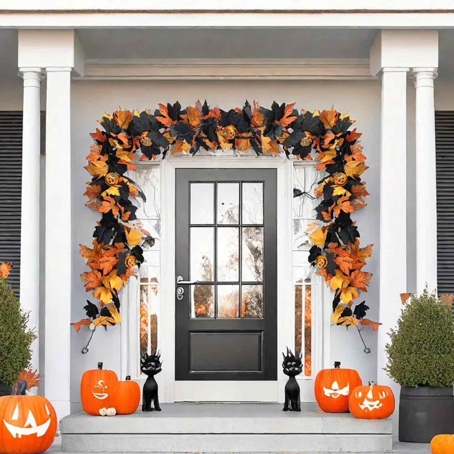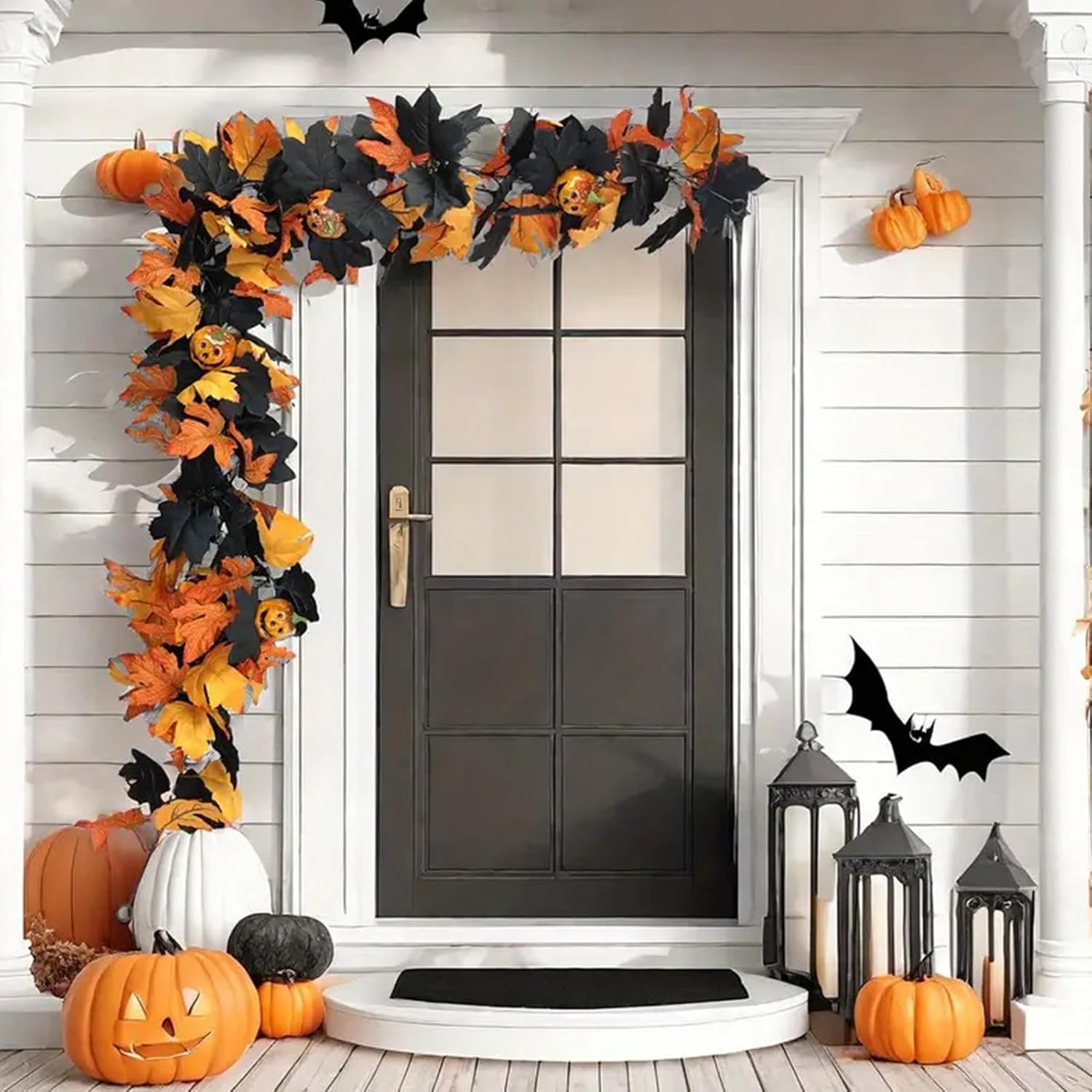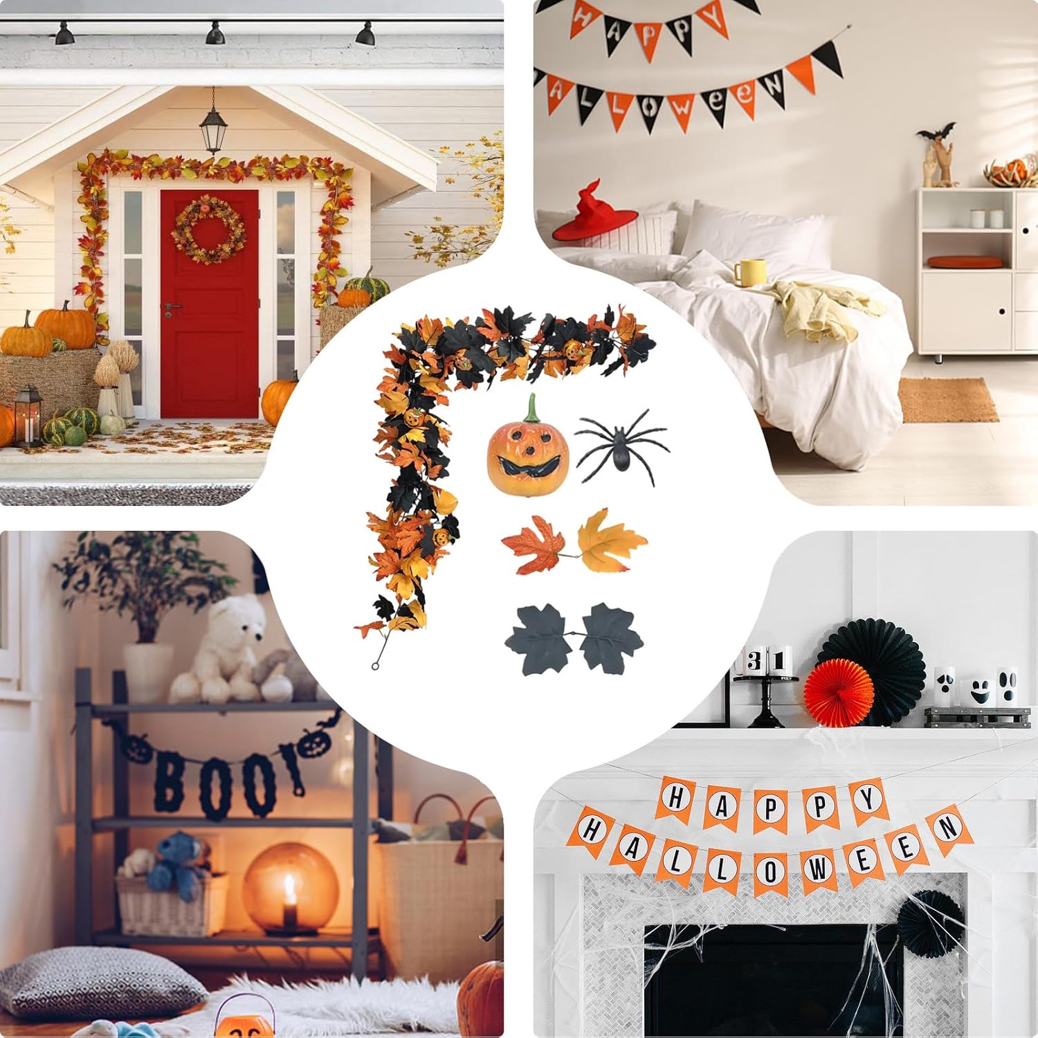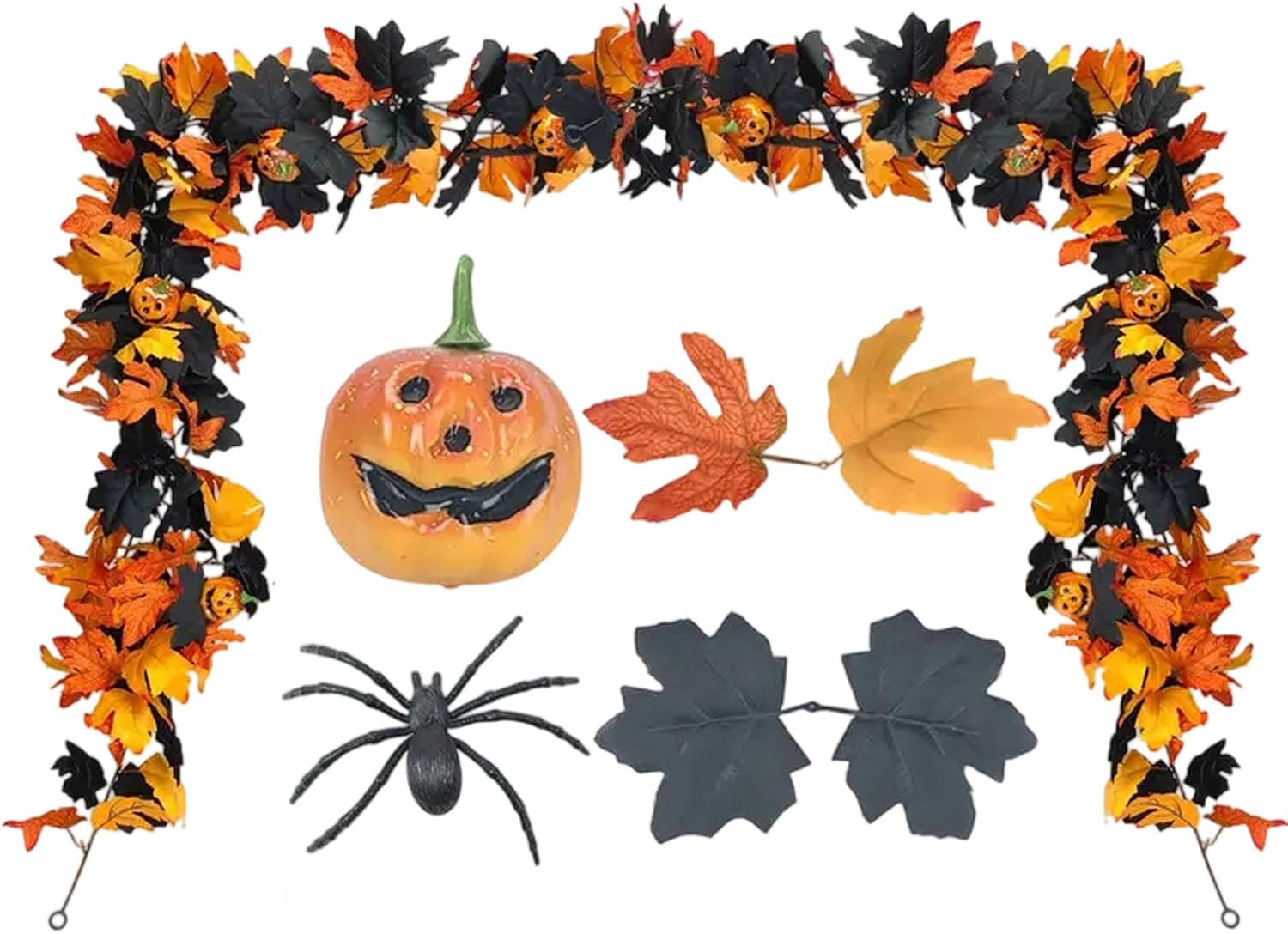 MATERIALE MORBIDO: la ghirlanda anti-sbiadimento e ossidazione mantiene i suoi colori accattivanti anno dopo anno. Usi multipli: con la sua struttura metallica regolabile, questa ghirlanda consente una modellatura 3D creativa e si adatta a varie impostazioni come porte, finestre e giardini per garantire versatili soluzioni di Halloween Processo di decorazione senza problemi: con un design intuitivo, questa ghirlanda di Halloween è facile da installare senza attrezzi, regolabile senza sforzo e si piega in modo compatto quando non viene utilizzata. Spirito di Halloween catturato: ragni, zucche, foglie e rampicanti sono sapientemente combinati per creare un'atmosfera spaventosa ma festosa, ideale per la decorazione natalizia
