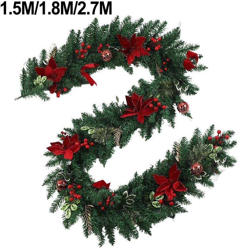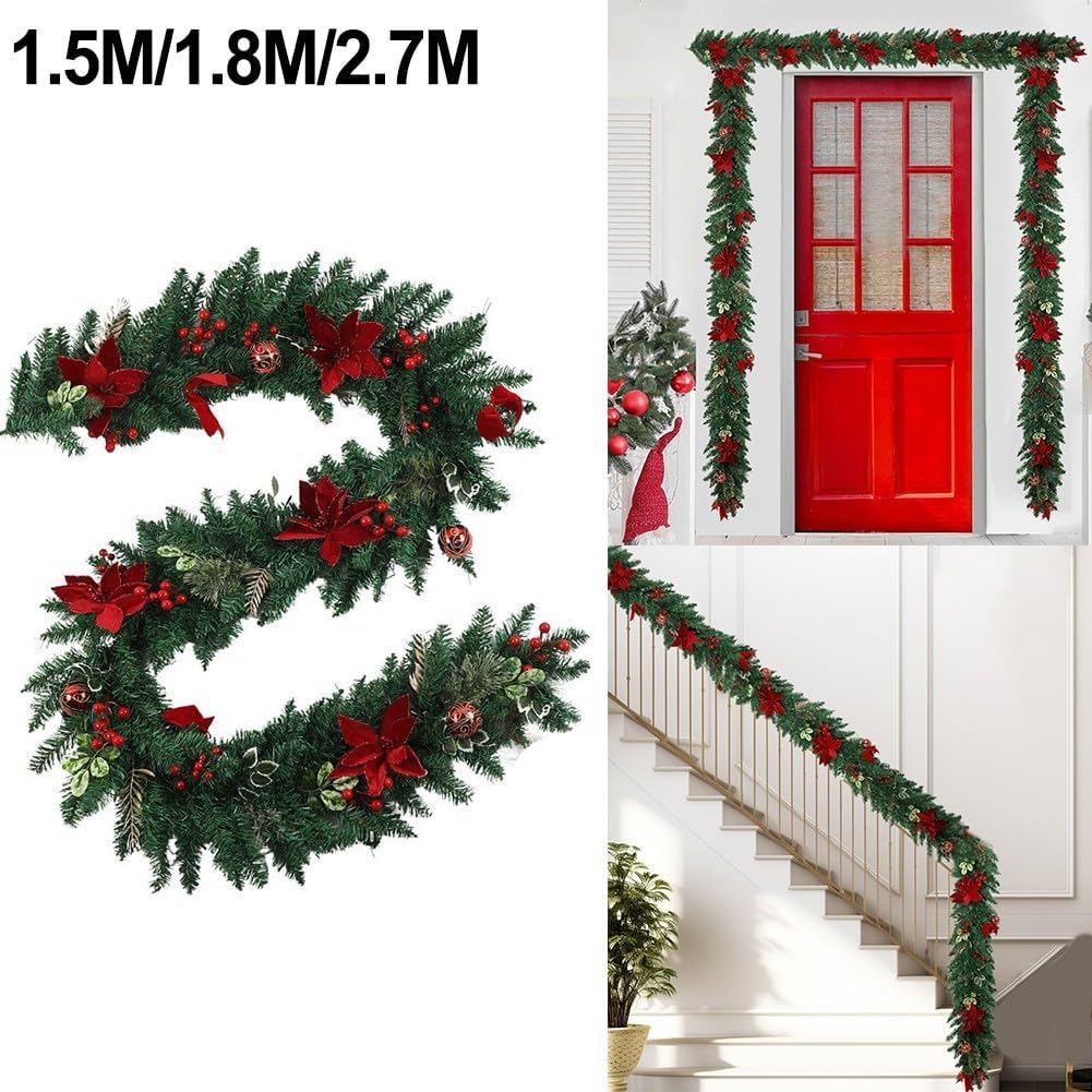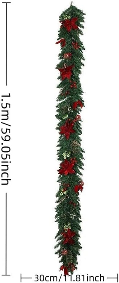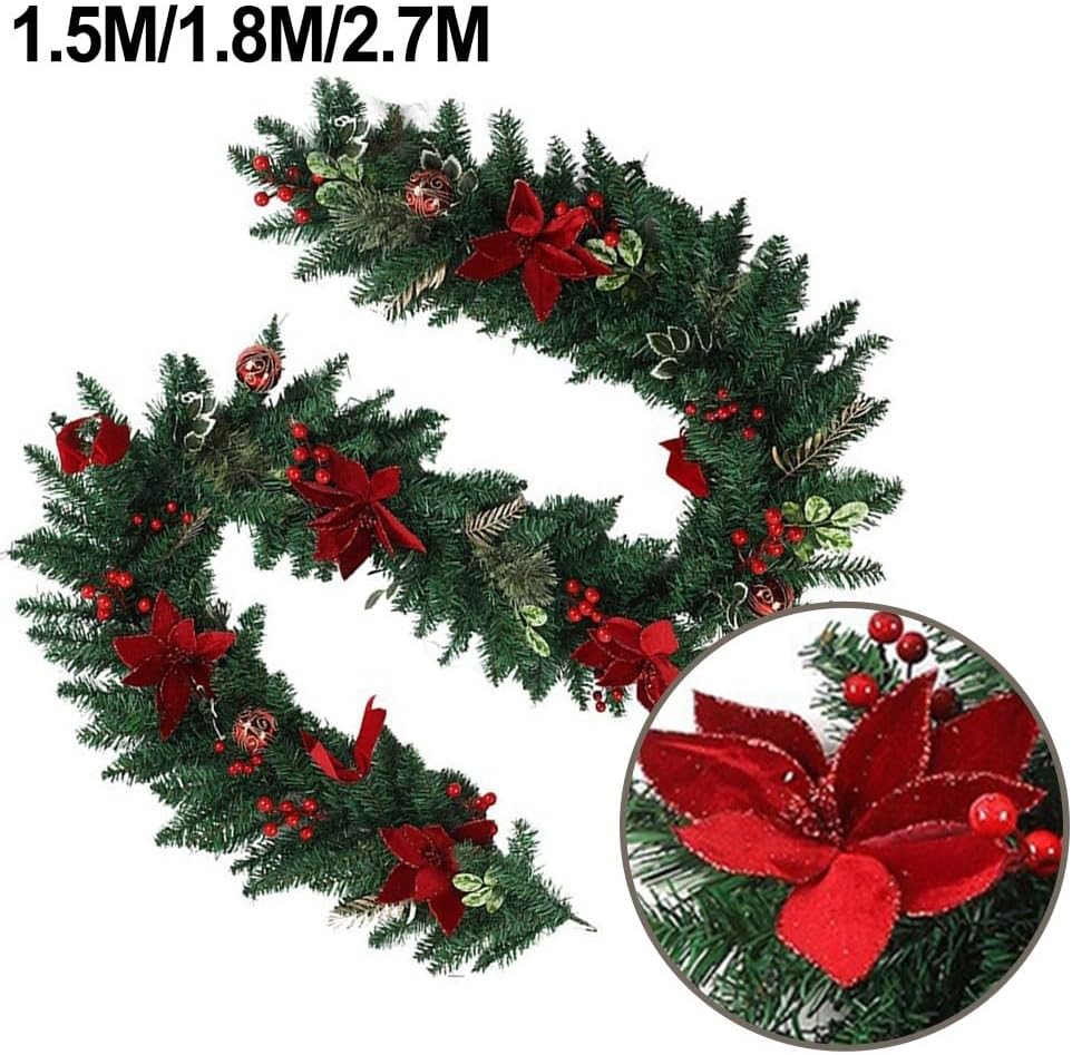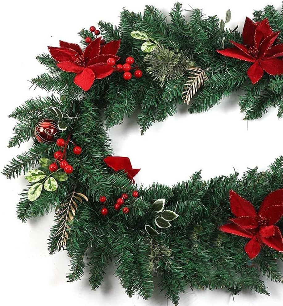 VIBRANTE DECORAZIONE VACANZA: Caratterizzata da stelle di Natale e bacche di colore rosso brillante, questa ghirlanda festosa eleverà istantaneamente le decorazioni della tua casa con il suo fascino vibrante durante le festività natalizie. [Flessibilità decorativa] Perfetto per vari luoghi come porte, pareti, finestre e caminetti; questa ghirlanda aggiungerà un tocco di calore a qualsiasi incontro invernale. [Adatto per interni ed esterni] Anche se ce n'è abbastanza per entrambi gli ambienti, è meglio tenerlo protetto all'aperto per mantenere la sua bellezza dalle condizioni atmosferiche. [Installazione rapida] La natura leggera di questa ghirlanda semplifica il processo di sospensione, consentendoti di concentrarti sui festeggiamenti.