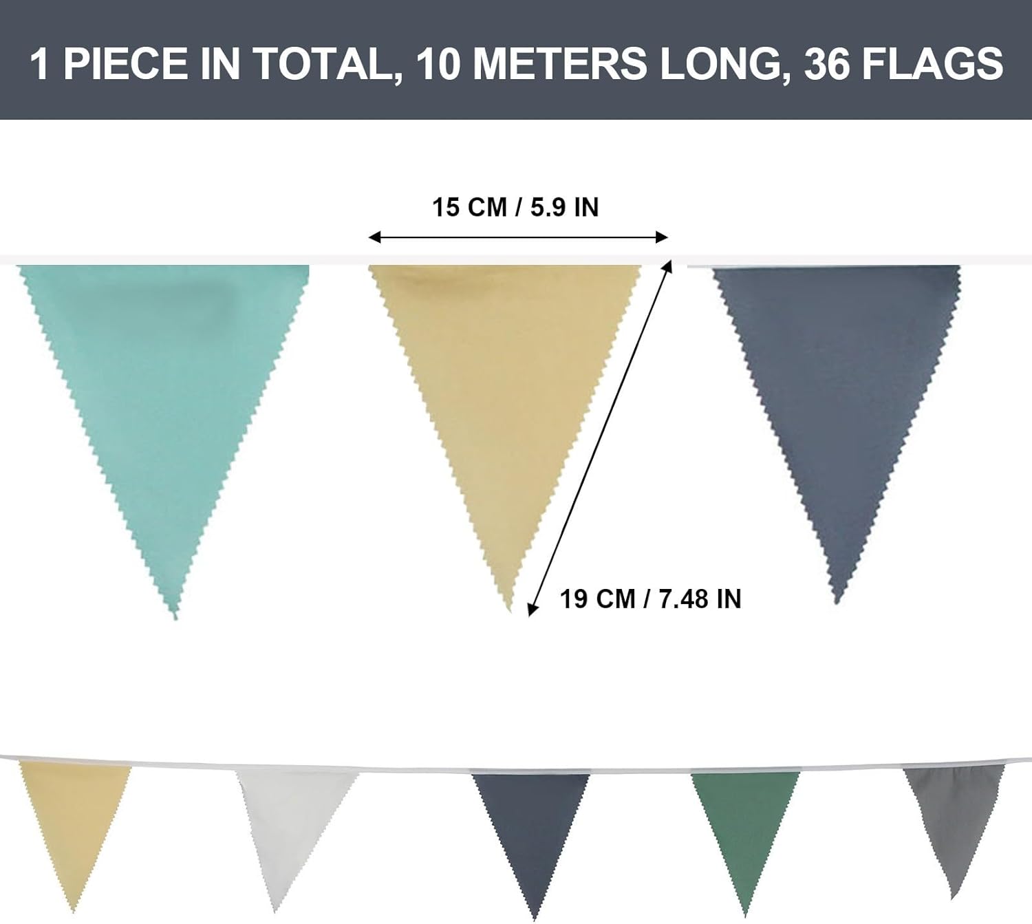 Bandierine multicolori da 10 m per matrimoni, compleanni e baby shower Robusto e riutilizzabile: realizzato in materiale di cotone delicato e resistente, questo bandierine in tessuto può essere lavato e utilizzato più volte, consentendo un uso duraturo. Decorazione versatile Con 36 bandiere e una lunghezza totale di 10 metri, questo striscione si adatta a varie celebrazioni come matrimoni, compleanni, baby shower, feste in giardino e altro ancora. Può essere facilmente appeso a porte, pareti o utilizzato come sfondo fotografico. AMBIENTE ACCOGLIENTE: il design della bandiera triangolare e la varietà di colori e stili creano un'atmosfera dolce e accogliente per il tuo evento. Facile da appendere e decorare: ogni gagliardetto misura 19 x 15 cm, offrendo una dimensione comoda per appenderlo facilmente. Le cinghie incluse su entrambi i lati garantiscono comfort. OTTIMA OPZIONE: questa bandierina in tessuto funziona bene per parenti, amici e vicini, aiutandoli ad aggiungere un tocco bello e festoso ai loro cortili o alle loro case.